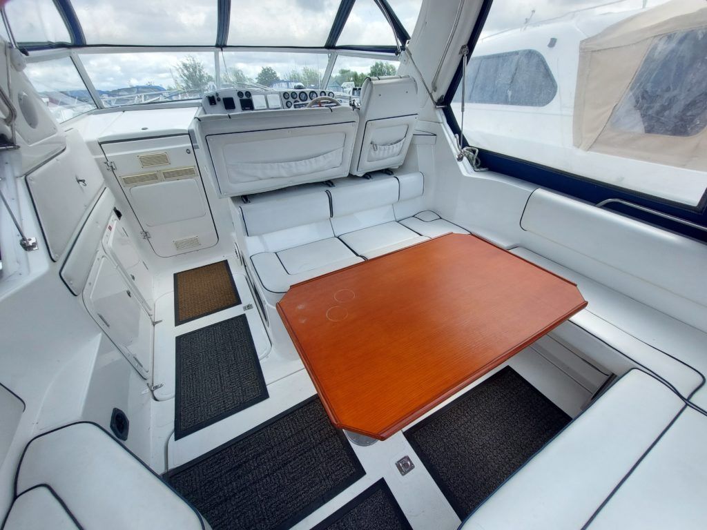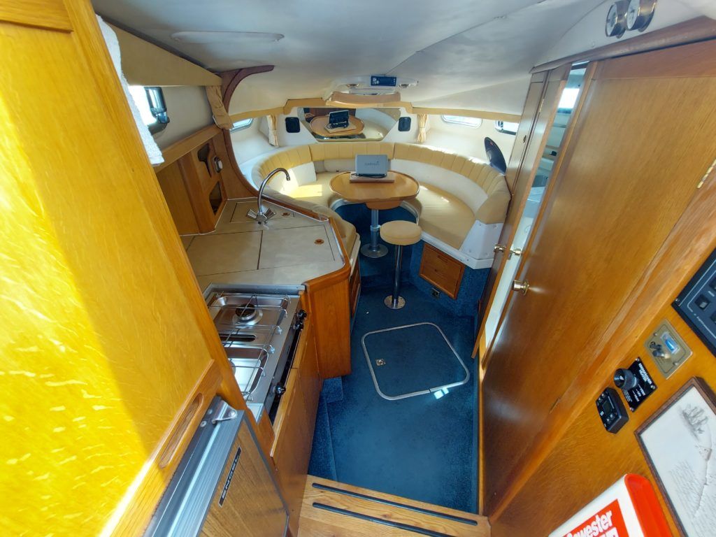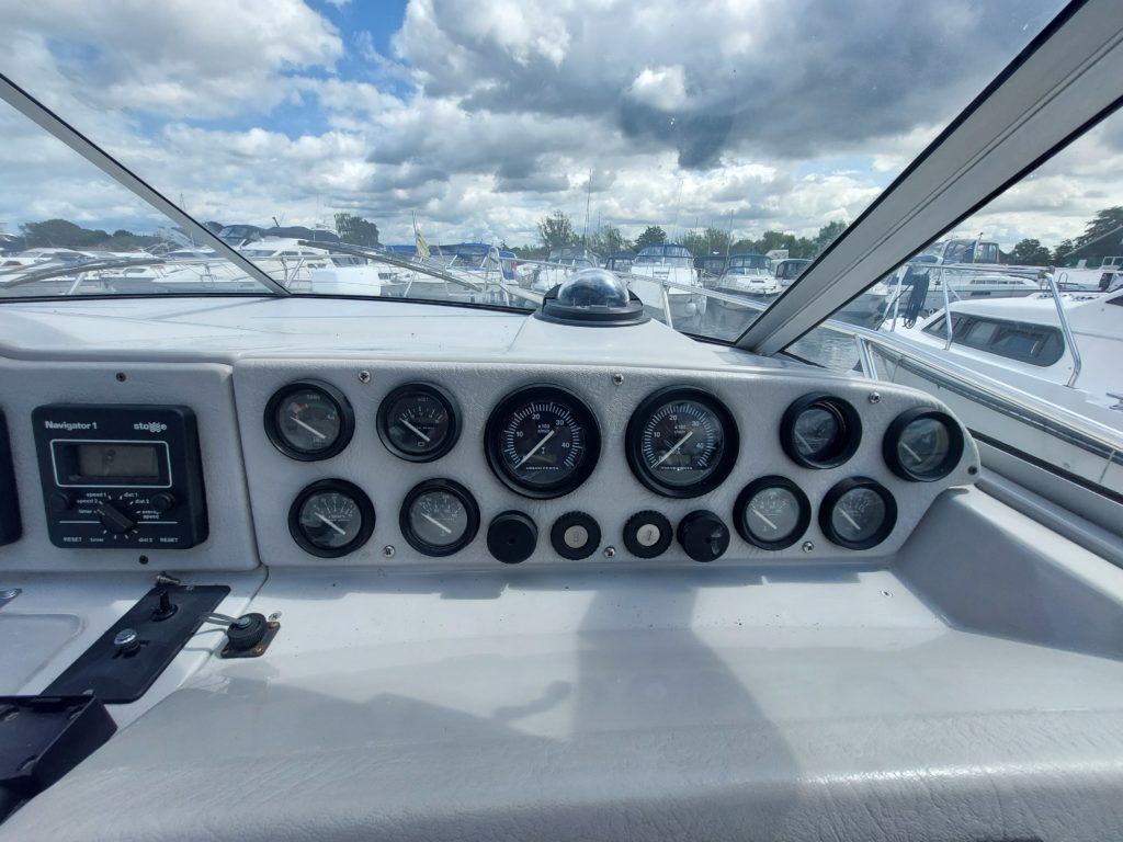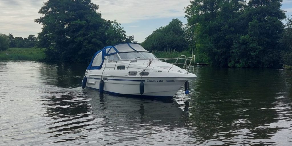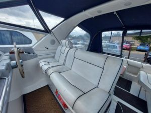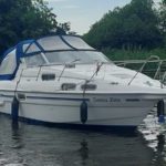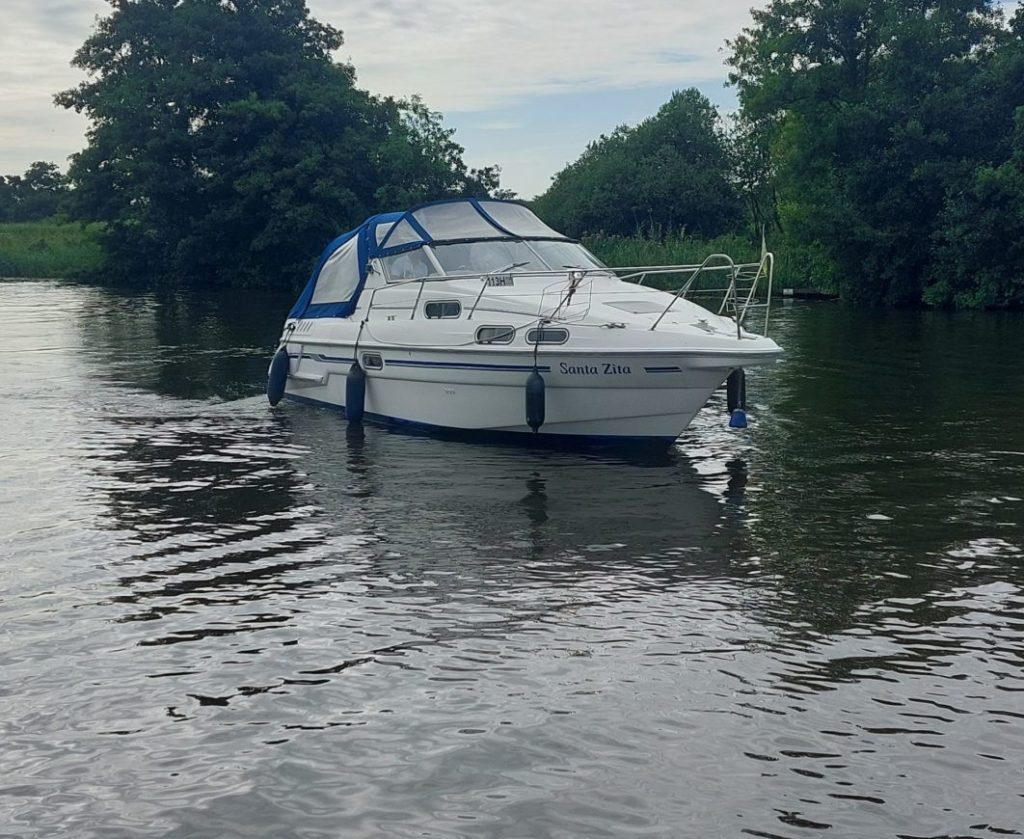 Sealine 290 Ambassador – 1990 – Twin Volvo Penta AD31DP 130hp diesel engines through sterndrives. 4 berth accommodation in two cabins. Specification to include; shore power, Eberspacher heating, folding radar arch, Garmin GPS, holding tank. Santa Zita has lots of socialising space and would make an ideal boat for inland or coastal cruising. BSC 11/05/2027