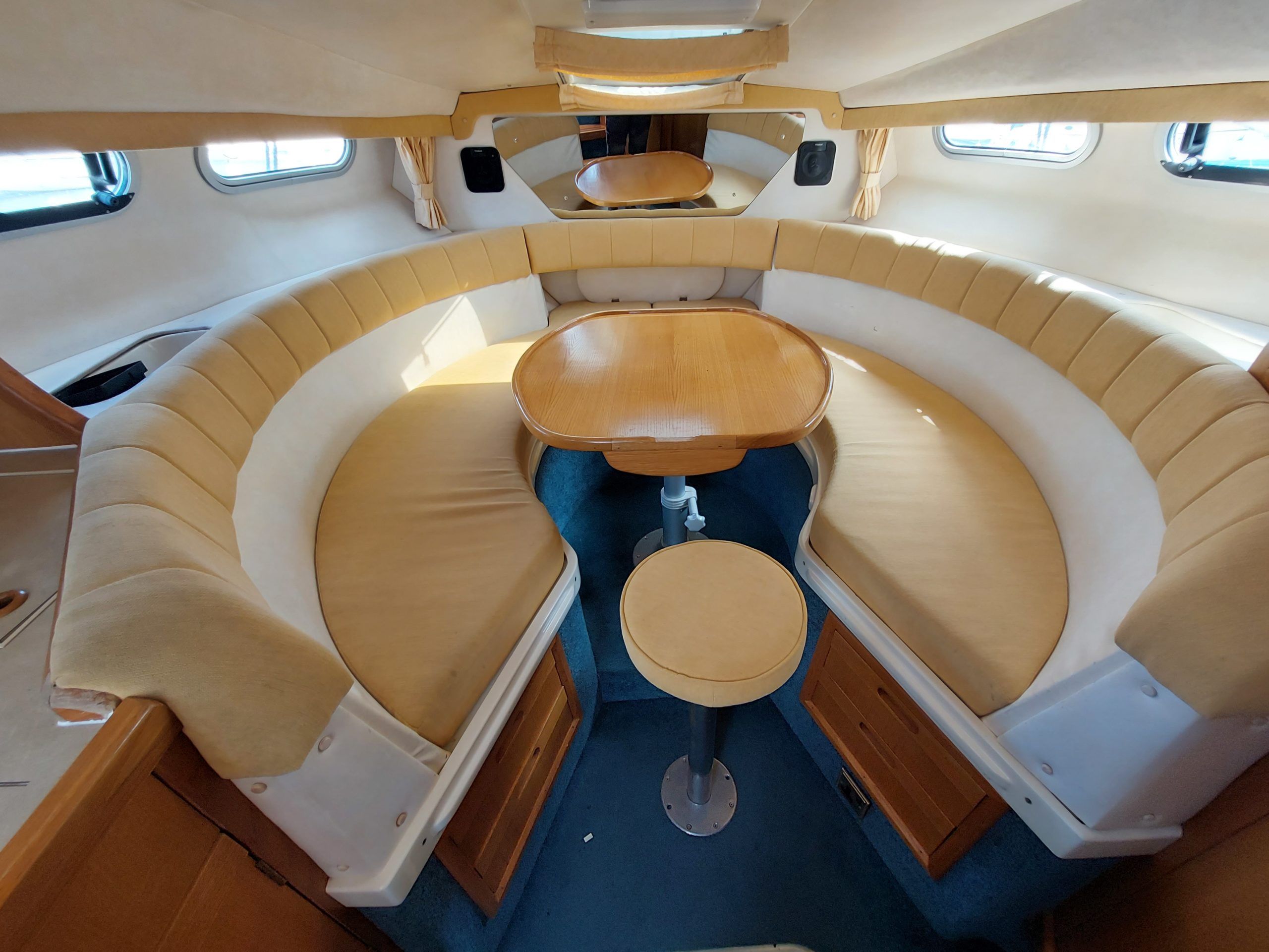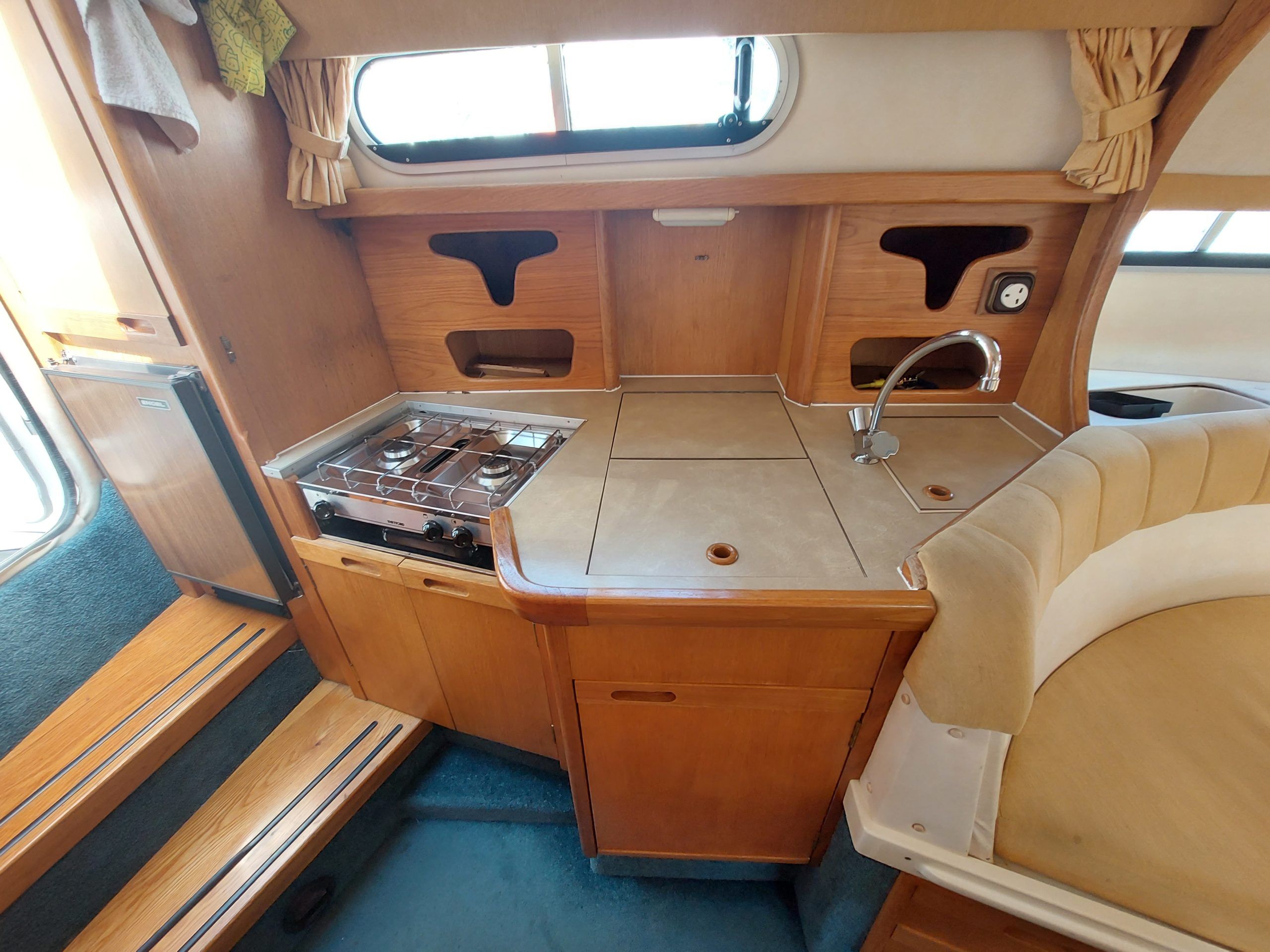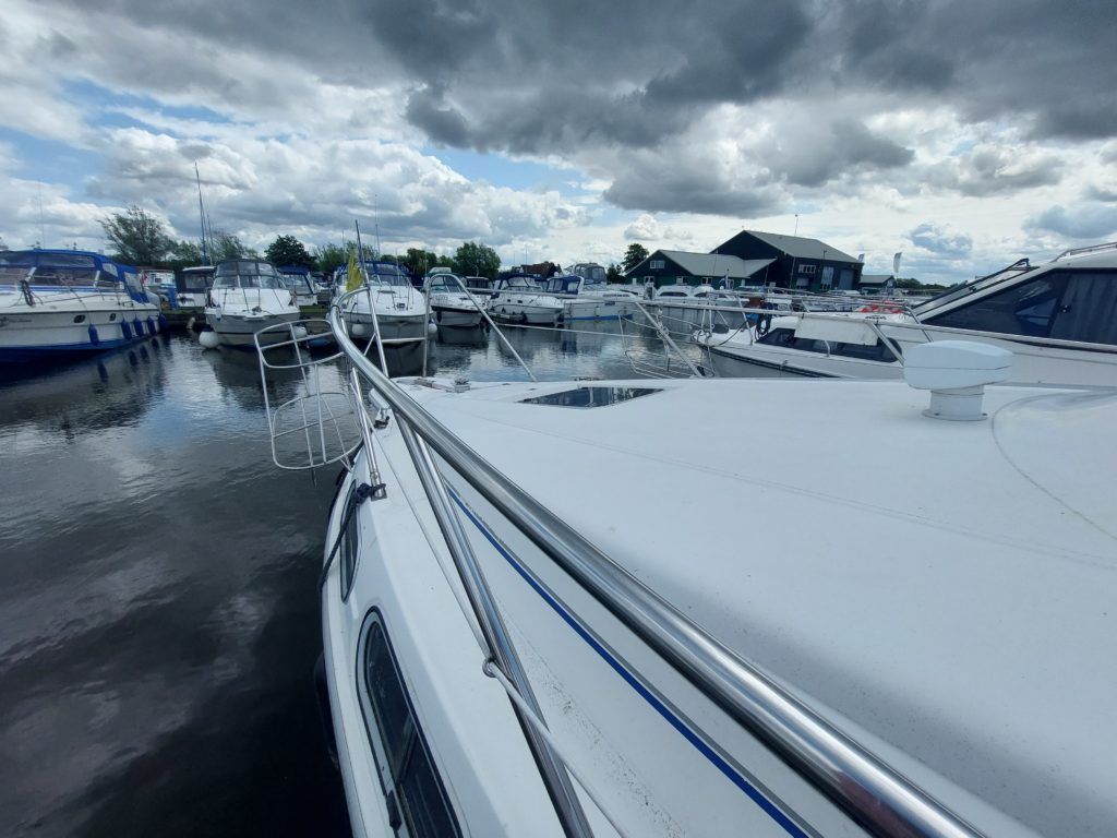 Sealine 290 Ambassador – 1990 – Twin Volvo Penta AD31DP 130hp diesel engines through sterndrives. 4 berth accommodation in two cabins. Specification to include; shore power, Eberspacher heating, folding radar arch, Garmin GPS, holding tank. Santa Zita has lots of socialising space and would make an ideal boat for inland or coastal cruising. BSC 11/05/2027