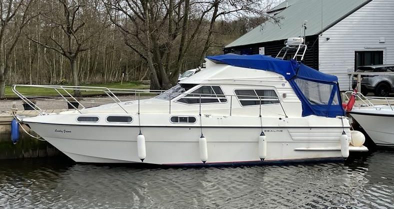 SEALINE 305 STATESMAN – 1989 – Powered by twin Volvo TAMD31 130hp diesels through sterndrives – 4 berth accommodation with toilet and shower – Specification to include; Bowthruster, warm air heating, shore power supply with charger and 240v sockets, trim tabs, hot and cold water supply, VHF. A well specified, desirable diesel Sealine 305 presented in good order!