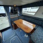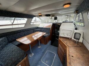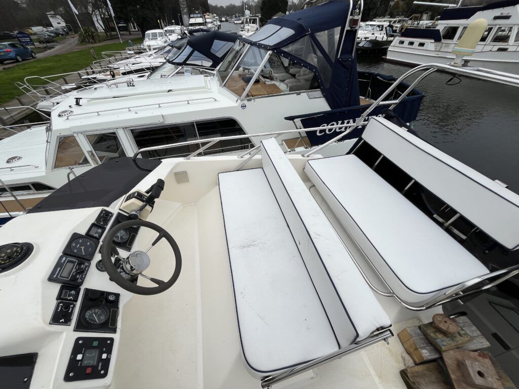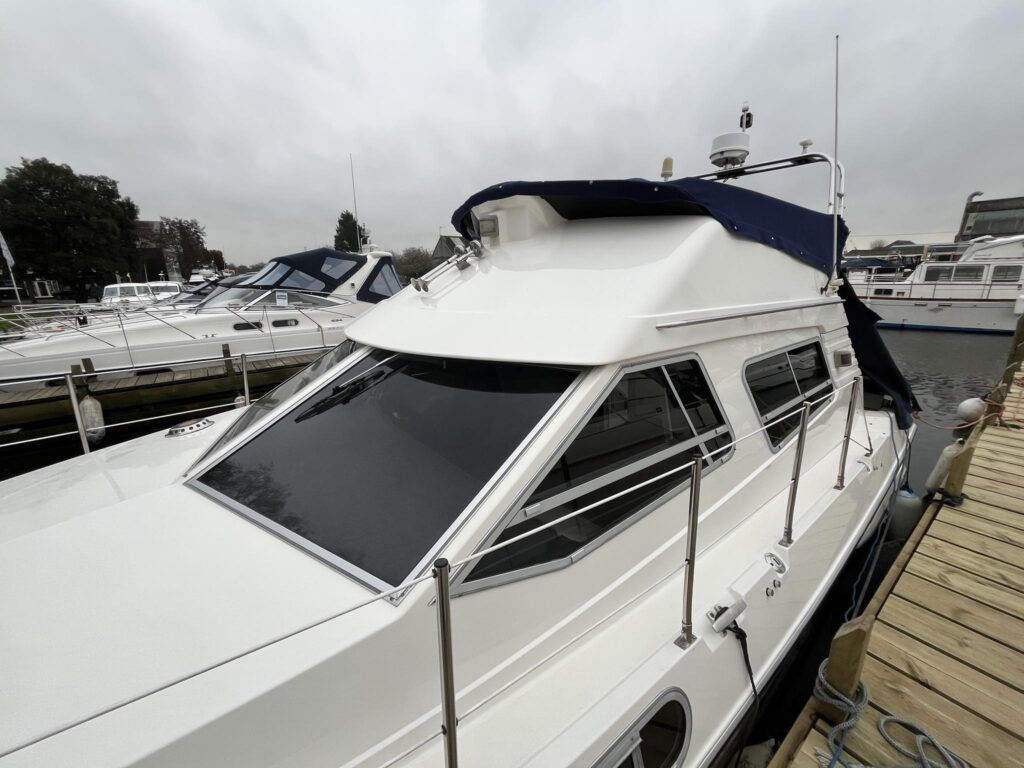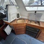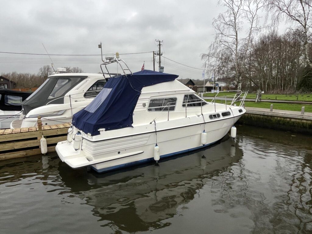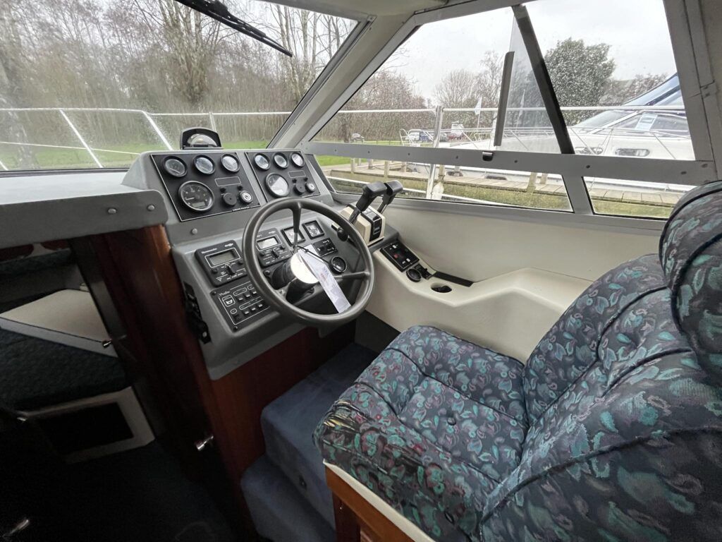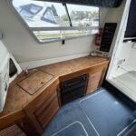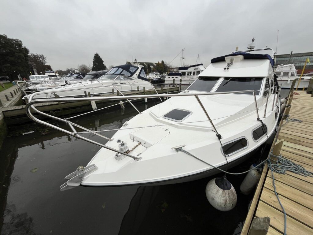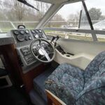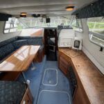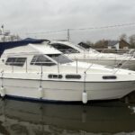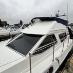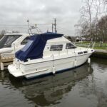 Sealine 305 Statesman – 1989 – Powered by 2 x Volvo AQAD31 140hp diesel engines through sterndrives. Up to 6 berth accommodation over two cabins and saloon with 1 x toilet and shower. Specification including Warm air heating, electric windlass, trim tabs, shore power, battery charger, galley with sink, oven, hob, grill and refrigerator. Generous accommodation in an entry size flybridge with diesel economy. An ideal introduction in to offshore boating. NYA Stock – Sold with 3 month engine & gearbox warranty.