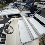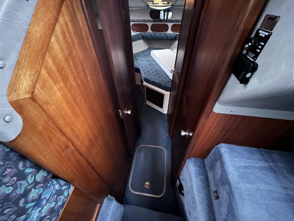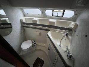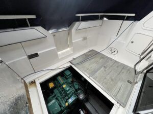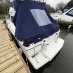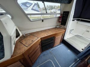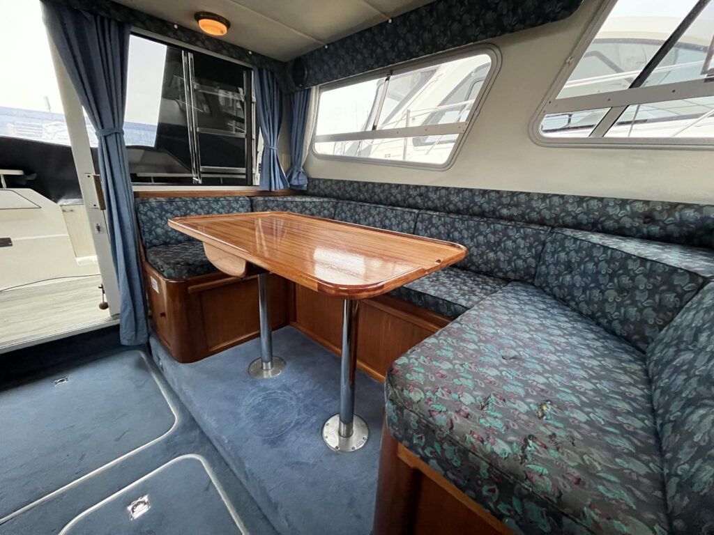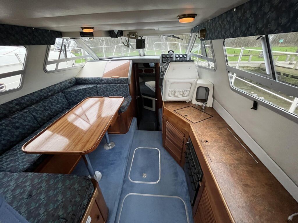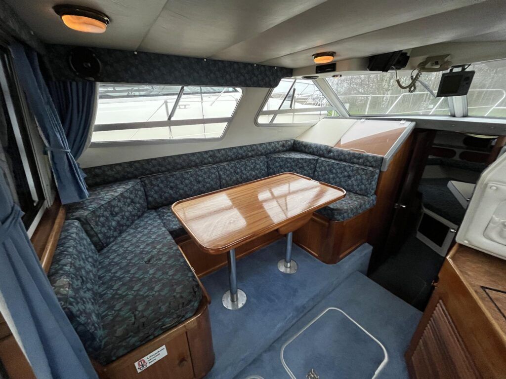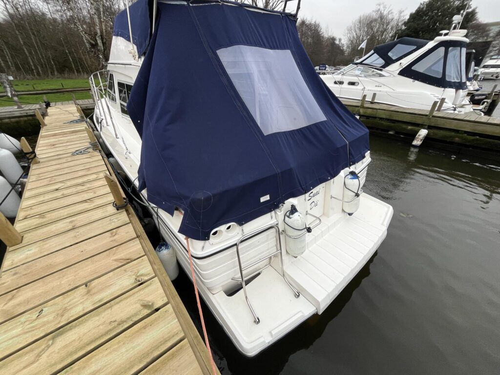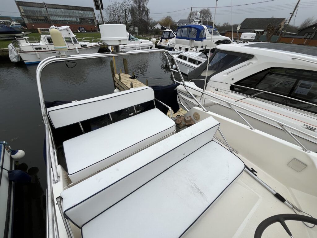 Sealine 305 Statesman – 1989 – Powered by 2 x Volvo AQAD31 140hp diesel engines through sterndrives. Up to 6 berth accommodation over two cabins and saloon with 1 x toilet and shower. Specification including Warm air heating, electric windlass, trim tabs, shore power, battery charger, galley with sink, oven, hob, grill and refrigerator. Generous accommodation in an entry size flybridge with diesel economy. An ideal introduction in to offshore boating. NYA Stock – Sold with 3 month engine & gearbox warranty.