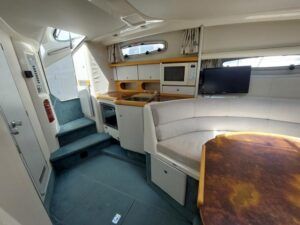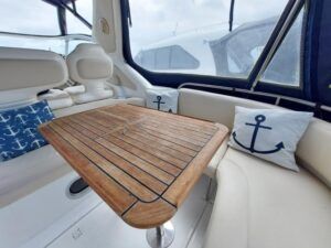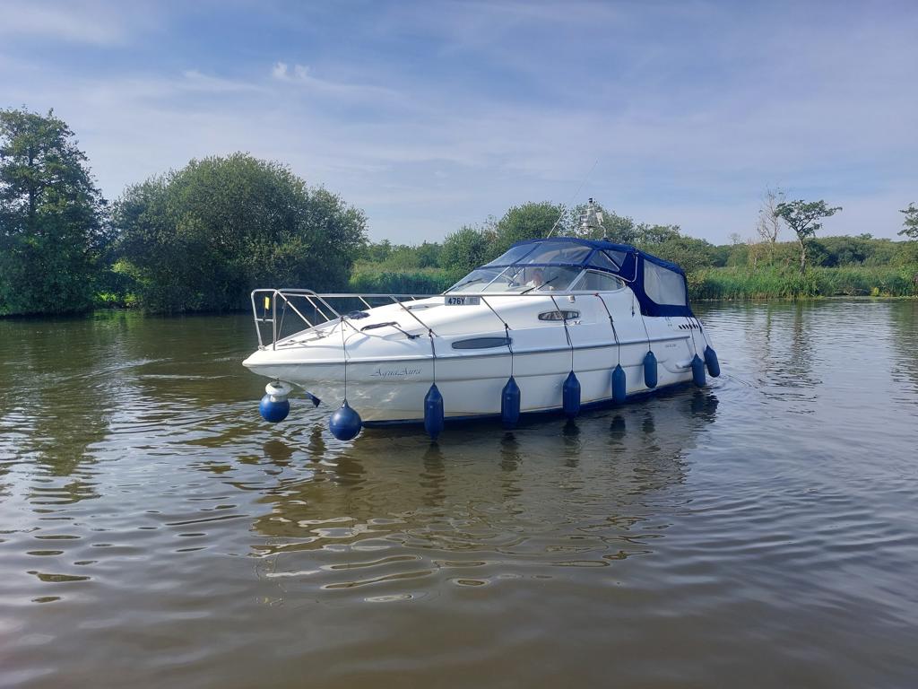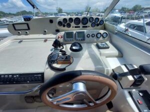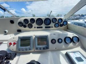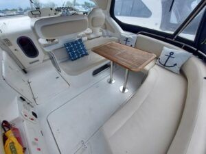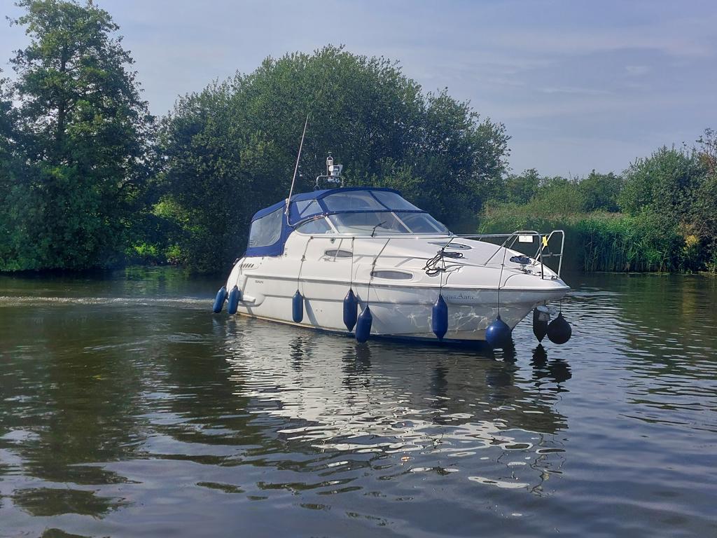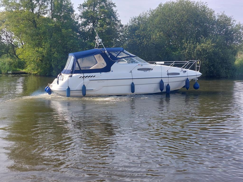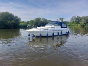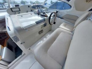 Sealine 310 Ambassador – 1994 – Twin Volvo AD41 200hp diesel engines through sterndrives. 4 berth accommodation with a single toilet & shower compartment. Engines & Outdrives serviced May 25, new AGM batteries, BSC 16/09/27. 2025 survey available with all recommendations attended to. Cosmetically tidy, with recently renewed cockpit and saloon upholstery, this Sealine 310 Ambassador is a well maintained, well priced vessel in ready to use condition. Call us for more info.