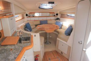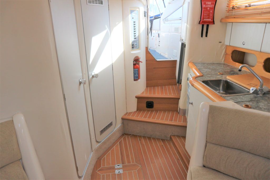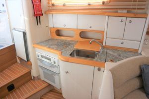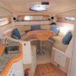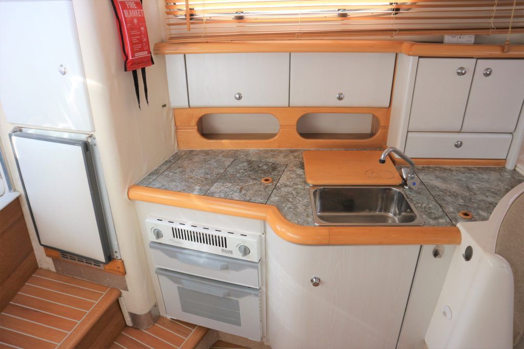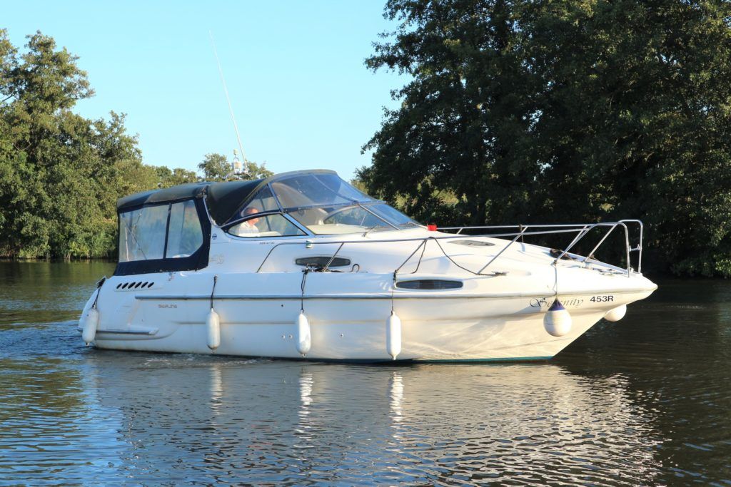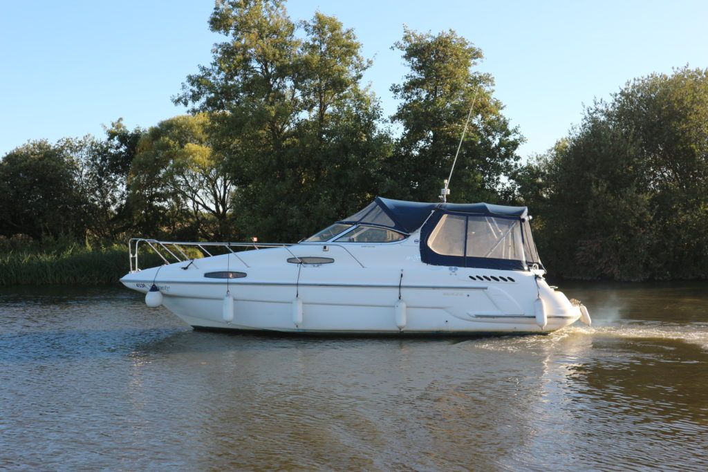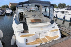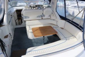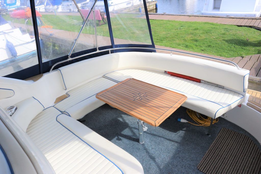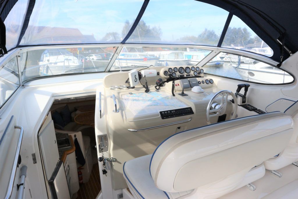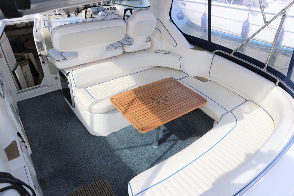 SEALINE 310 AMBASSADOR – 1994 – Powered by 2 x AD41P-A 200hp diesel engines. 4 berth accommodation with occasional 2 in cockpit & 1 x toilet to holding tank/shower compartment. Galley with 2 burner hob, oven, grill & fridge. Specification including bow thruster (fitted 2016), electric windlass, shore power, battery charger, immersion heater, propex warm air heating, speed & depth log, VHF, Chart plotter, BSC10/23. A well presented sports cruiser with a large sociable cockpit and comfortable family accommodation.
