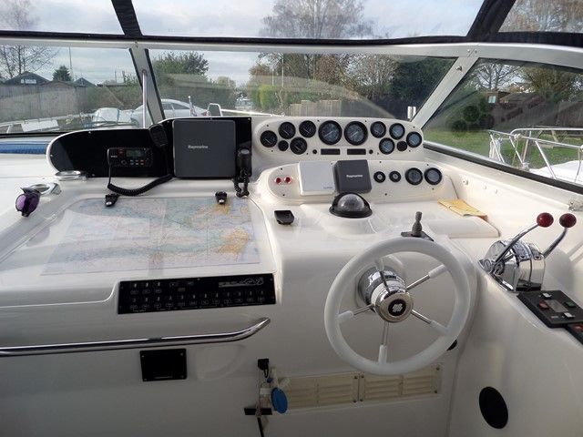 SEALINE 310 AMBASSADOR – 1993 – Twin Volvo 150hp Diesel engines. 6 berths and 1 toilet and shower compartment. Holding tank, Bow thruster, Warm air heating system, Trim tabs, Raymarine radar. An exceptionally well looked after cruiser, offering versatility, great internal space and a very social cockpit area.