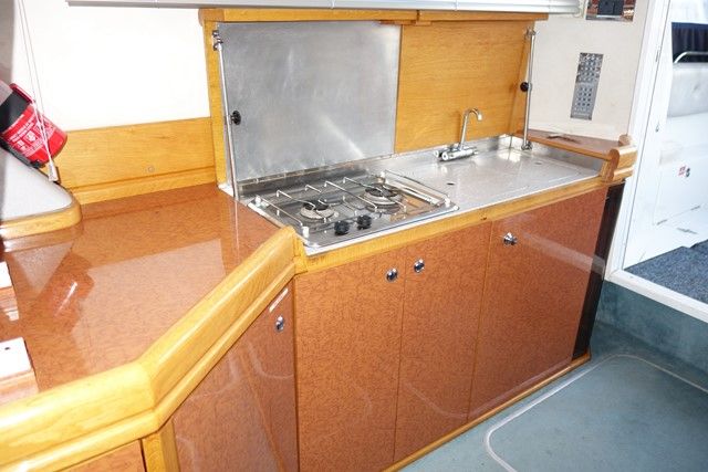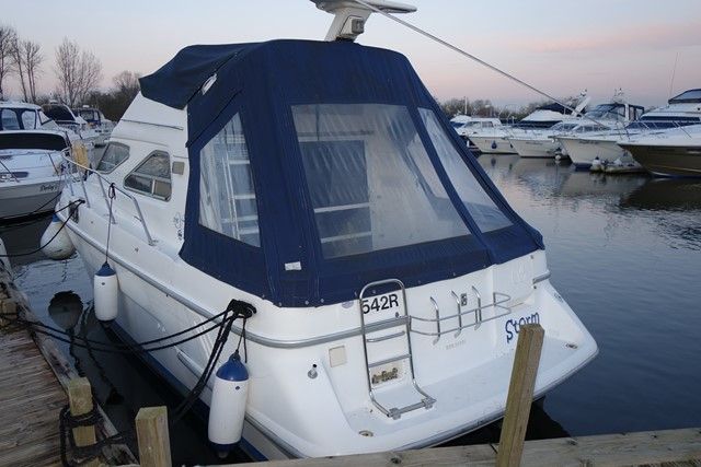 SEALINE 310 STATESMAN – 1990 with twin Volvo Penta 146HP petrols, 6 berths in two cabins + saloon. Two burner, oven, grill, fridge, hot water supply, shore power. Trim tabs, bow thruster, Nav sounder speed and depth, Garmin GPS. 2 x new batteries. Great accommodation space and in good order.