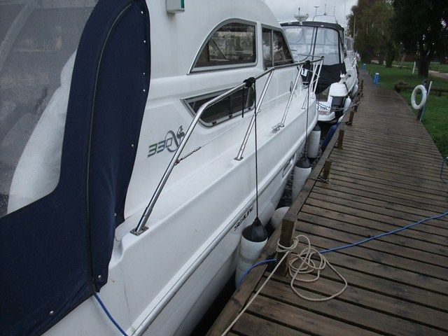 SEALINE 330 – Built 1995, powered by 2 x Volvo AD41/DP, 6 berths, GPS with repeater on flybridge, heating, bow thruster, new carpets & curtains throughout, new transom shower, new oven. Engines fully serviced in 2011, Boat Safety Until 2014. A stunning example of these popular flybridge cruisers.