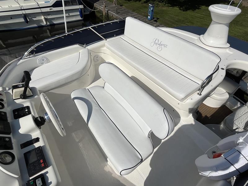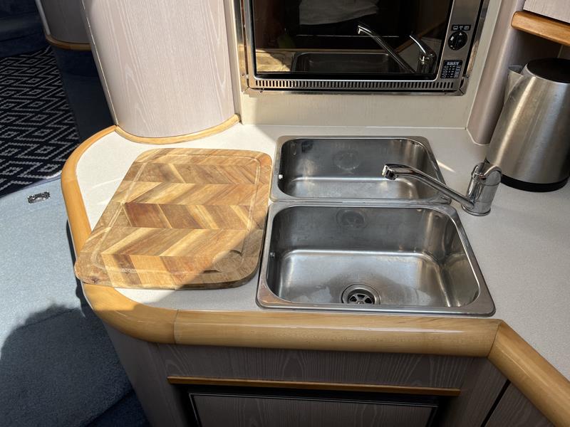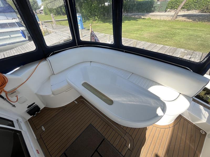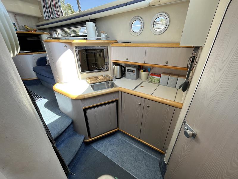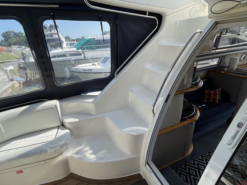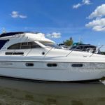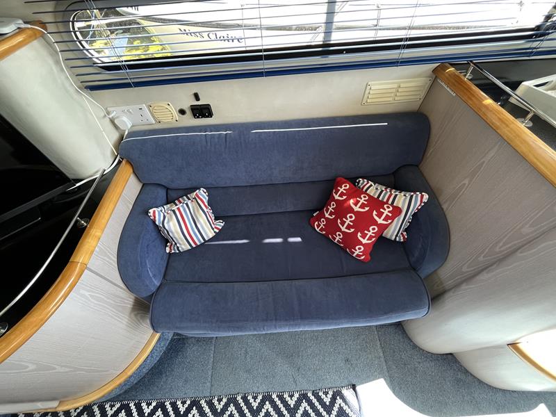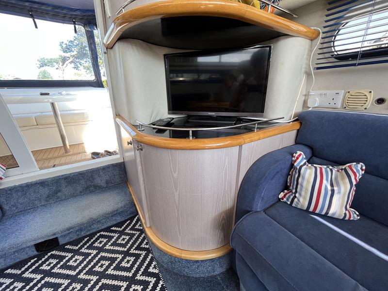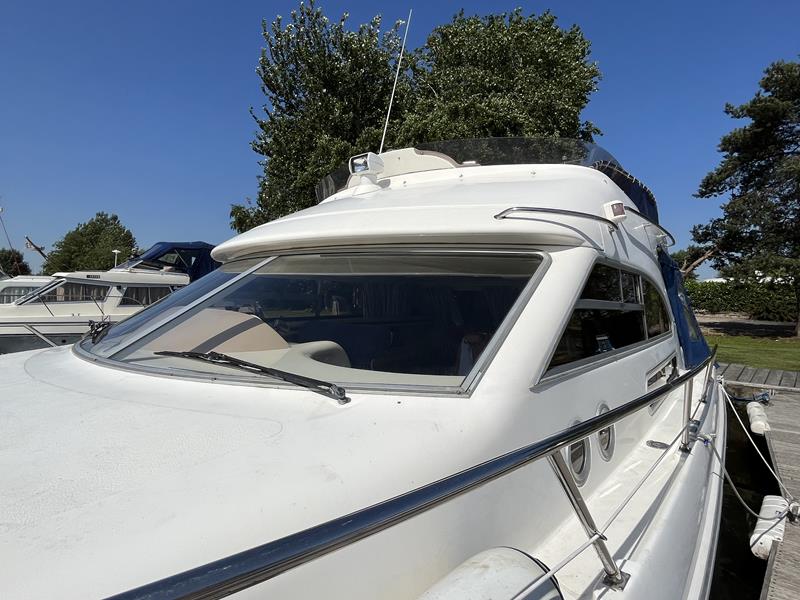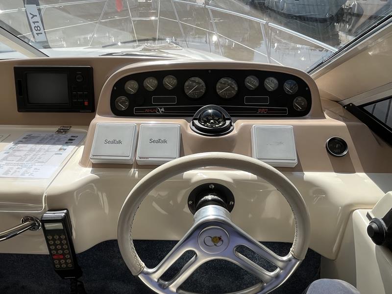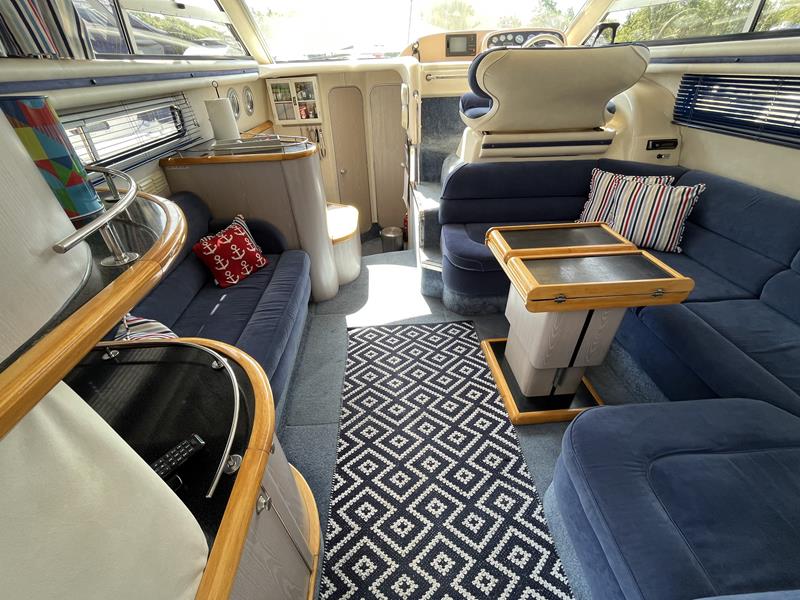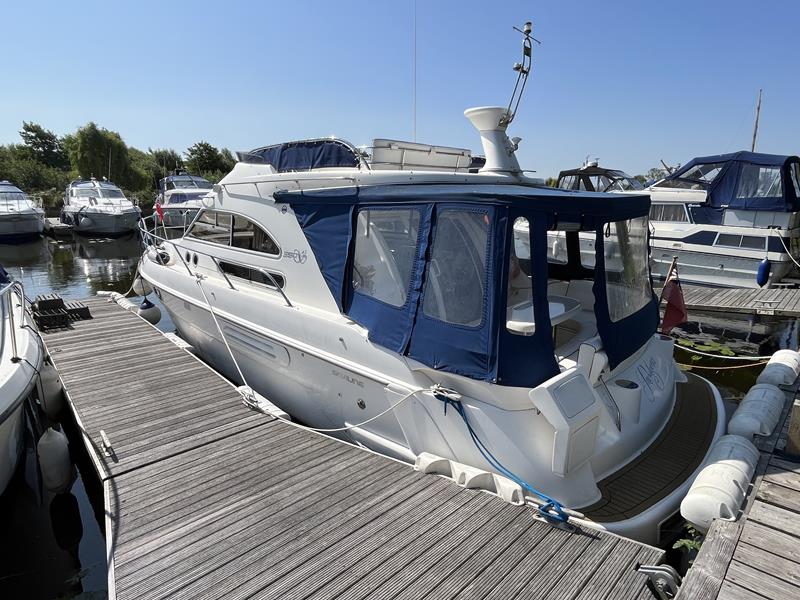 SEALINE 350 STATESMAN – 1991 – Powered by twin Volvo KAMD42 230hp diesel engines through shafts – 6 berth accommodation with 1 x toilet and shower compartment – Specification to include; bowthruster, Eberspacher D3 warm air heating, shore power supply with 240v sockets, immersion and battery charger,holding tank, trim tabs, autopilot, BSC 10/26. Synthetic teak laid cockpit and bathing platform. Recent antifoul in 2022. A very well-presented Sealine 350 Statesman, offering spacious accommodation and excellent seakeeping capabilities – An ideal choice for those keen to enjoy offshore boating.