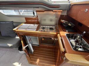 In May, the boat underwent antifouling, a full hull polish, complete leg service, and both engines were professionally serviced. A new turbo was fitted to the starboard engine, along with a new alternator, all using genuine Volvo Penta parts, with the total cost amounting to £10,000.