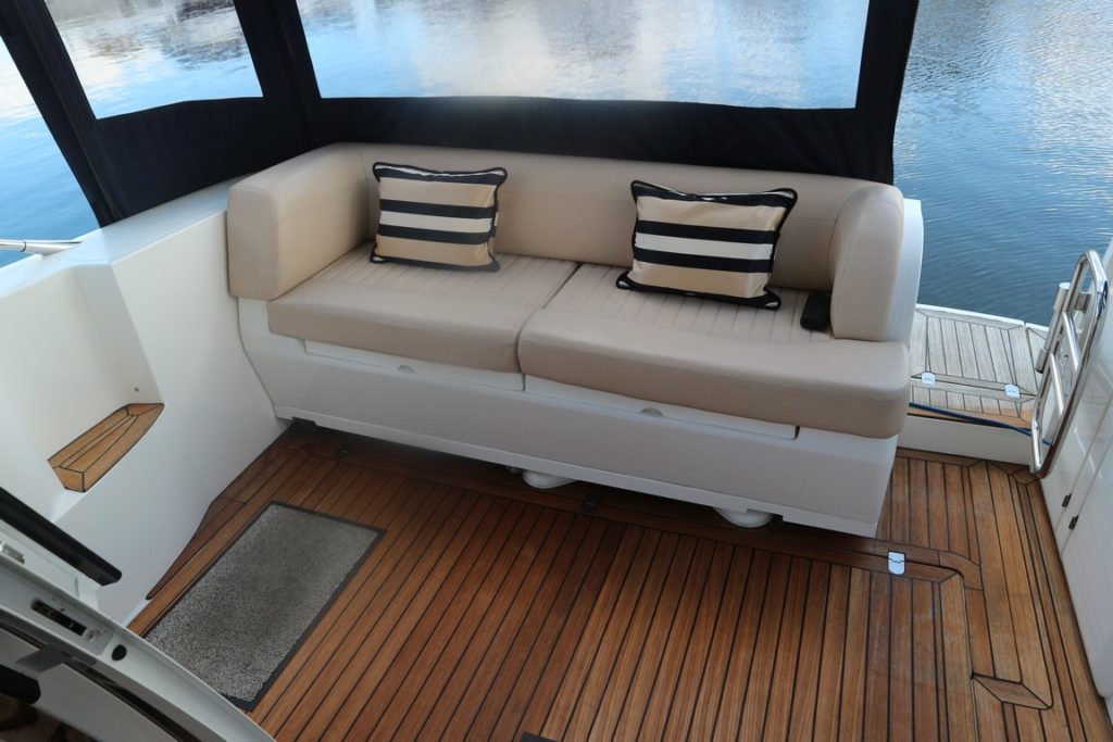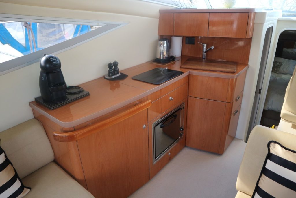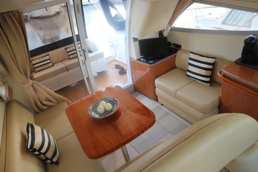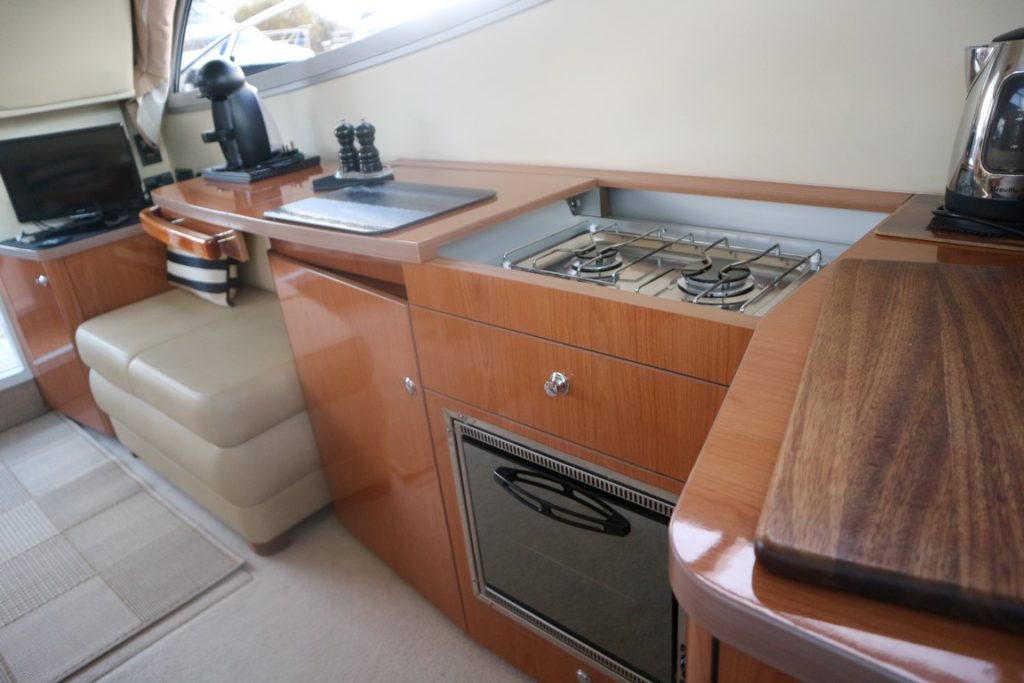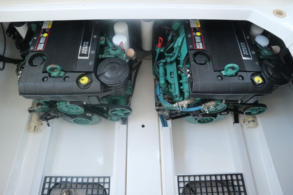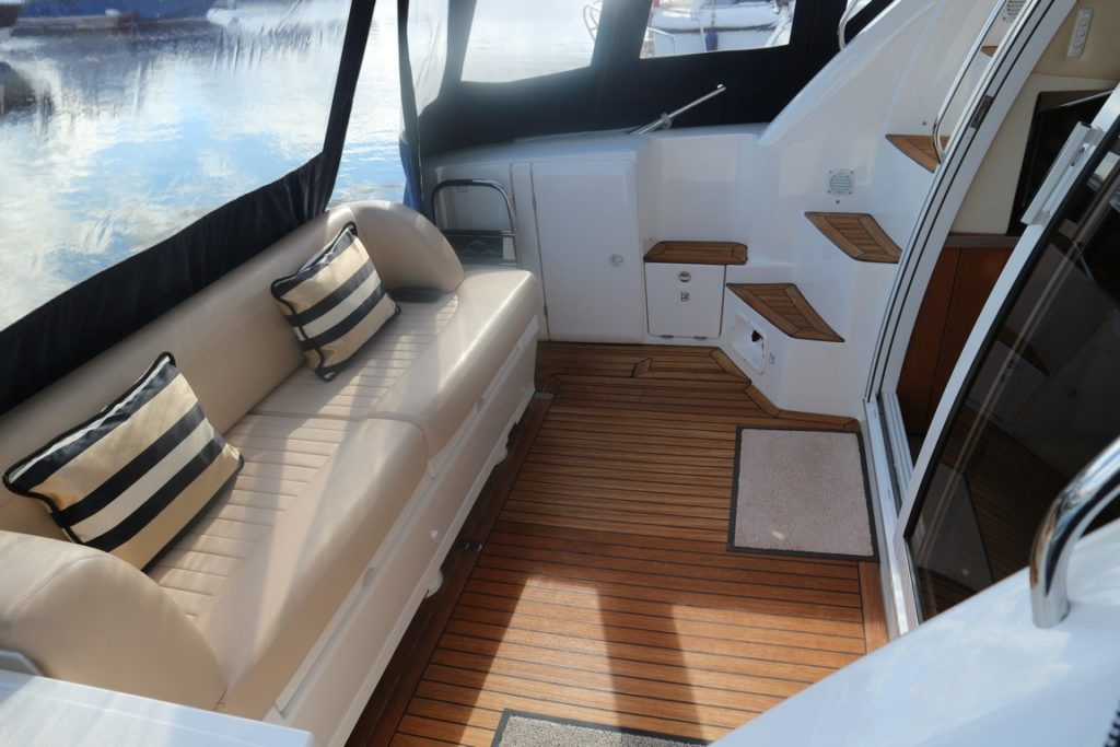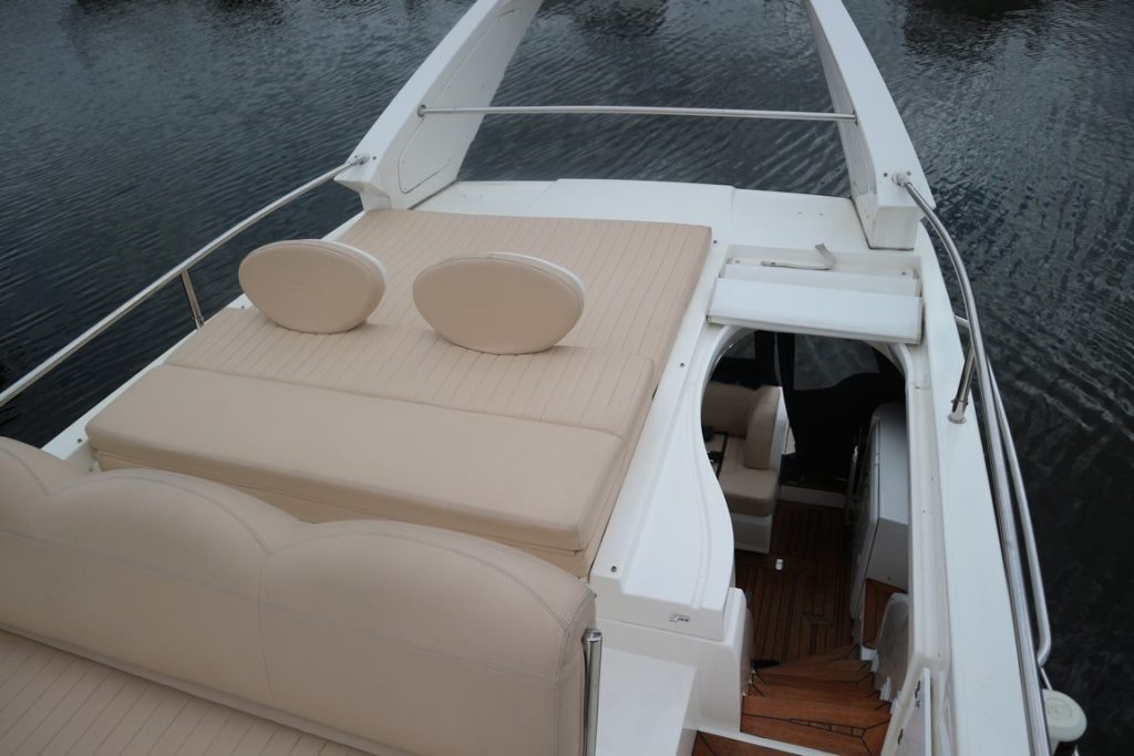 SEALINE F34 – 2008 – Powered by twin Volvo D4 225hp diesels. 6 berth accommodation with one toilet and one shower. Specification to include; bowthruster, warm air heating, holding tank, electric windlass, trim tabs and much more. Clever Sealine features including extending cockpit and galley. Folding radar arch for improved inland access, teak laid bathing platform and cockpit! BSC 06/21. Sterndrive service 2018. A simply stunning example, clearly well-kept and loved by her very diligent owners! Viewing highly recommended!