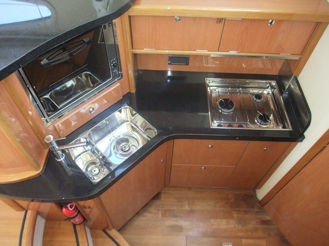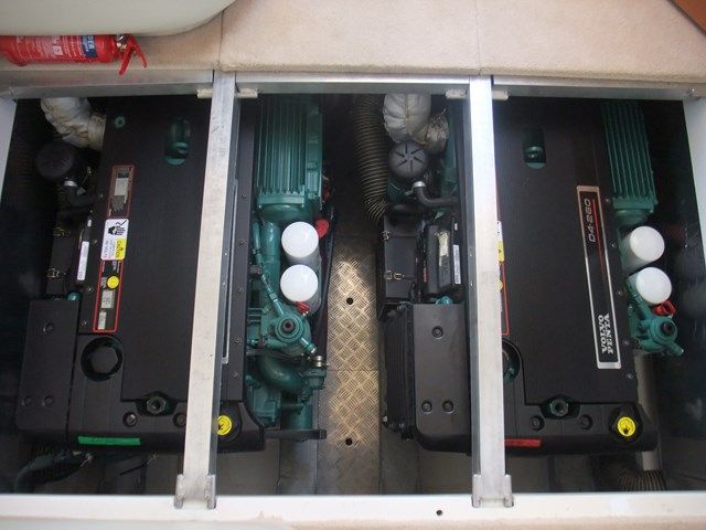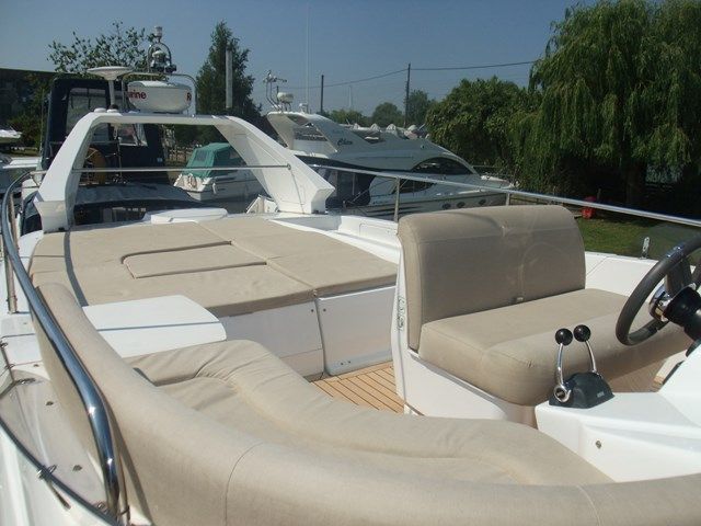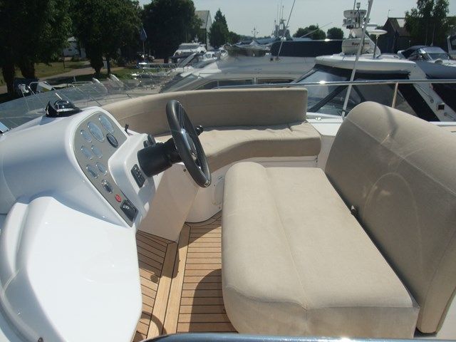 SEALINE F37 – 2009 – 2 x Volvo D4 260HP diesel engines. 6 berths in 2 cabins, 1 toilet and shower. Bow thruster, battery charger, fantastic social space on the teak laid flybridge and cockpit, heating, holding tank, chart plotter, VHF. Stunning condition throughout. NYA Stock, fully prepared by our Service Centre.