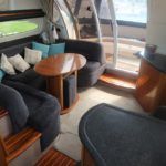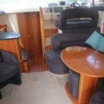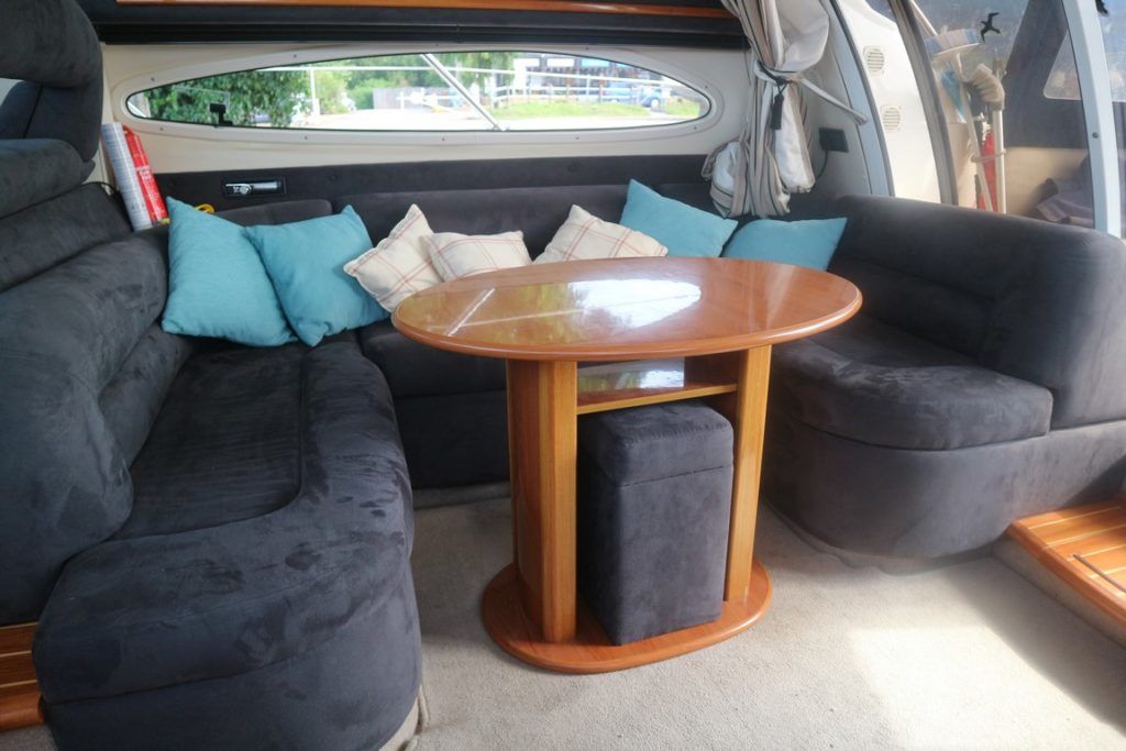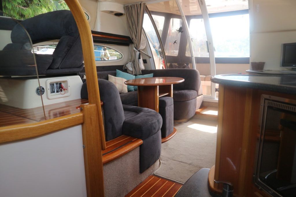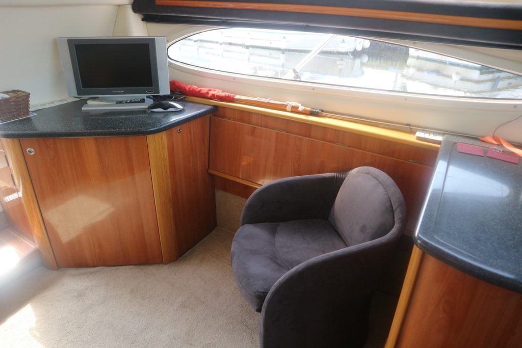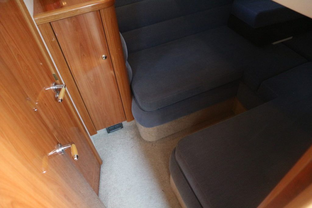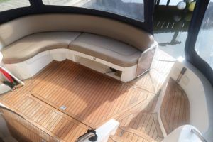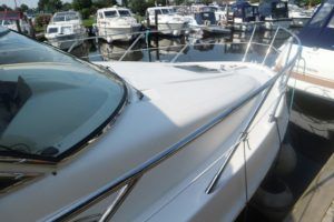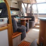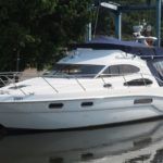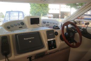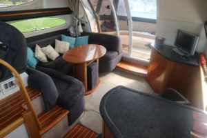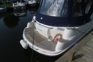 SEALINE F37 – 2002 (commisioned 2003) – Powered by twin Volvo KAMD300 285hp diesels with EDC controls on shafts. 6 berth accommodation with one toilet and one shower. Specification to include; Bowthruster, warm air heating, electric windlass (deck and helm controls), a range of Raymarine navigation equipment, trim tabs and shore power with battery charger. Teak laid flybridge cockpit and bathing platform. BSC 03/23 and full engine service June 2018. Used to cruise the Broads and East Coast since 2015. The F37 offers plenty of style and comfort, a very capable cruiser ideal for offshore boating with the family!