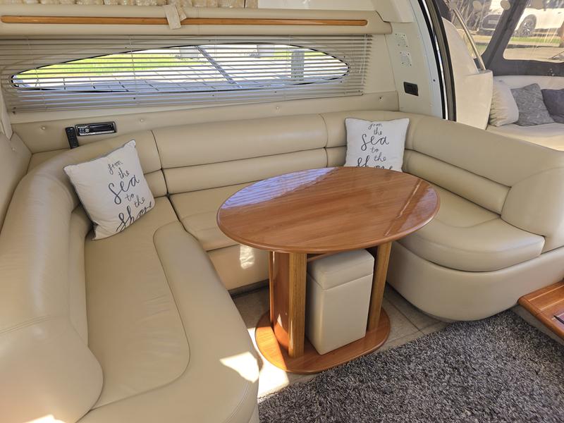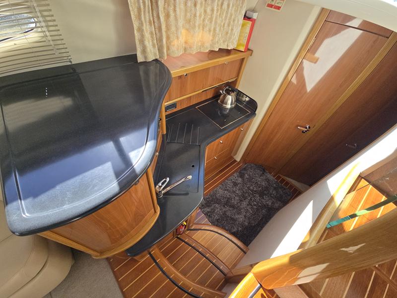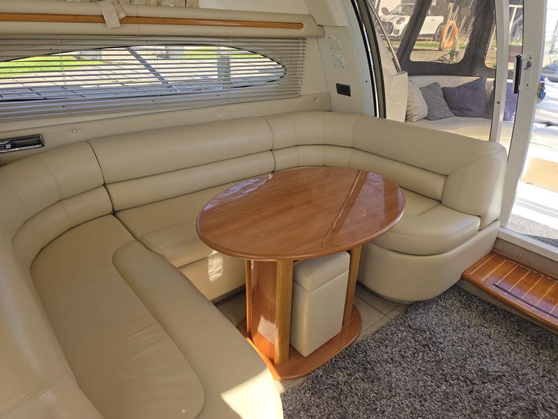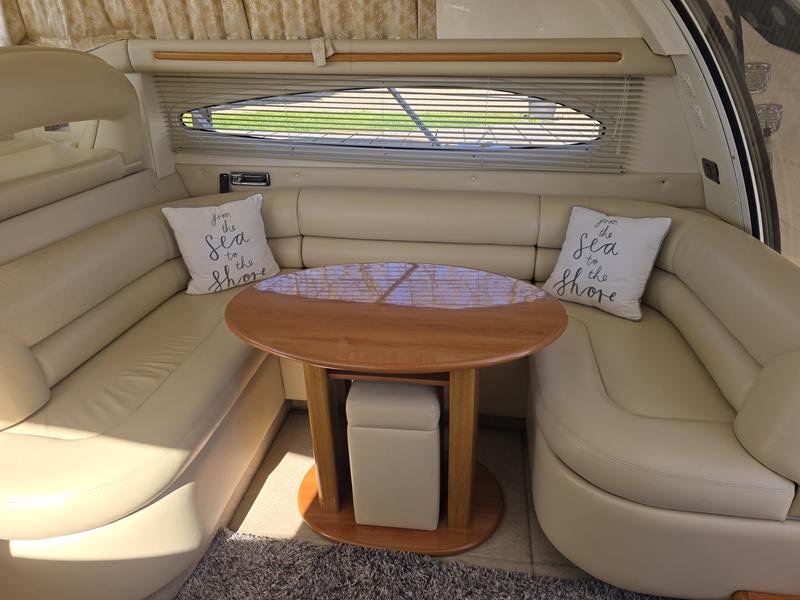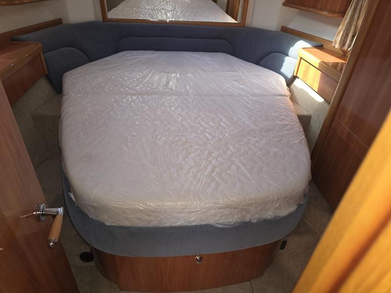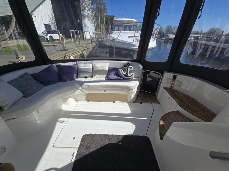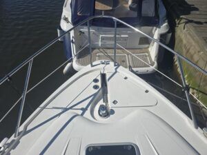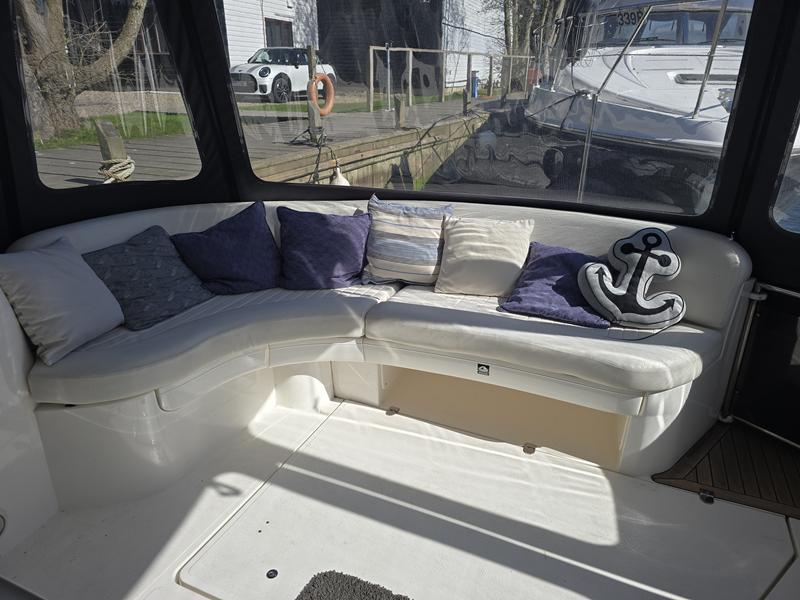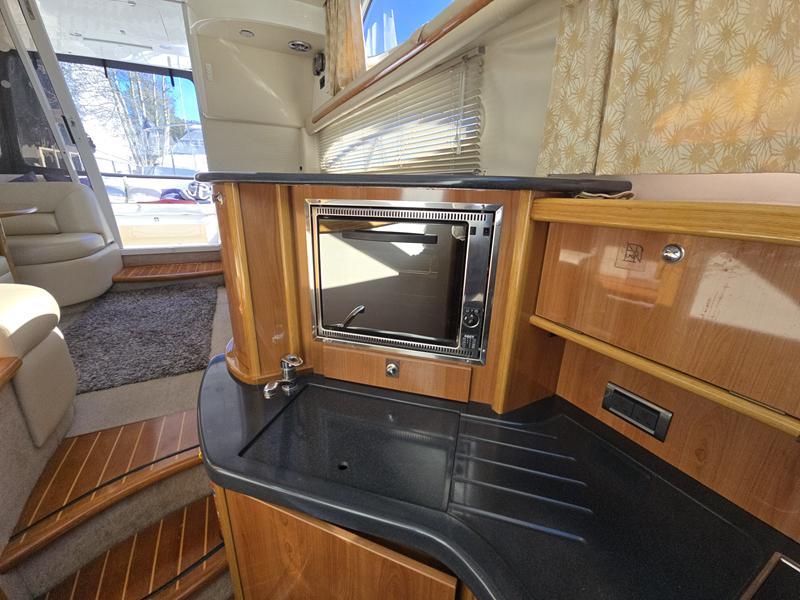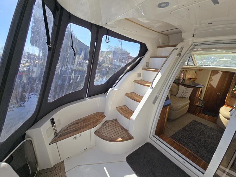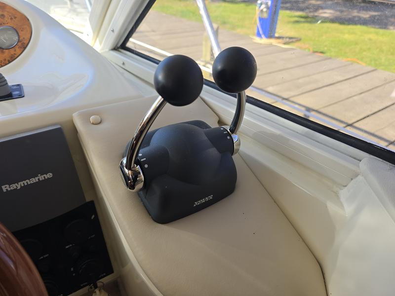 Sealine F37 – 2003 – 2x Volvo KAMD300/P EDC shaft driven diesel engines. 6 berth accommodation including a spacious forward master cabin with a double berth and en-suite. Specification to include: Warm air heating, Bow thruster, shore power, battery charger, trim tabs, teak deck, Raymarine nav package including chart plotter, radar VHF and more. A popular mid-sized flybridge cruiser, offering a comfortable layout for family cruising, fantastic social space, and the benefit of twin diesels on shafts.