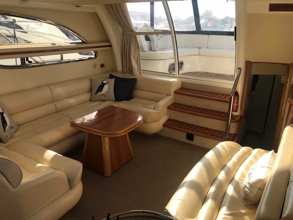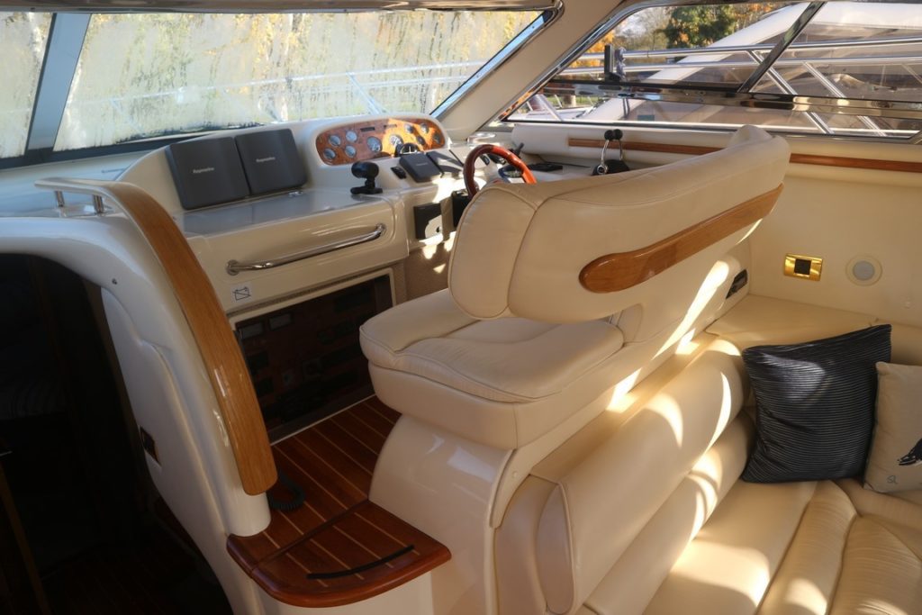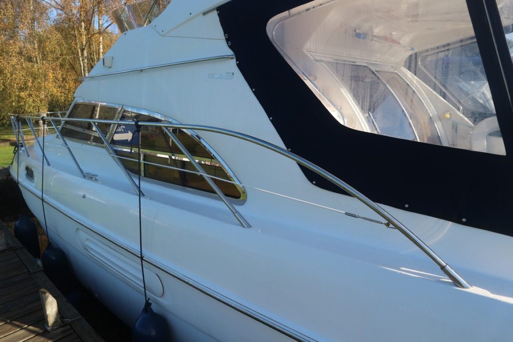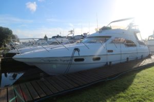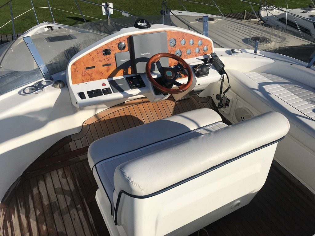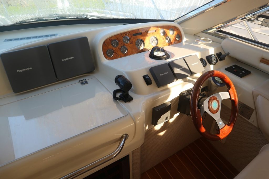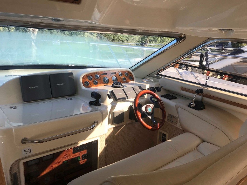 SEALINE F43 – 2003 – Powered by twin Volvo TAMD75p 480hp diesels. 6 berth accommodation with two toilets and two showers. Specification to include; Generator, bowthruster, warm air heating, electric windlass and a full range of Raymarine navigation equipment. Teak laid cockpit and bathing platform. A very well-kept example benefiting from investment by her current owner including new battery charger and inverter plus engine service, antifoul and generator service in 2018!