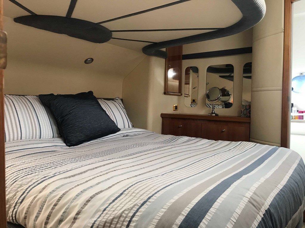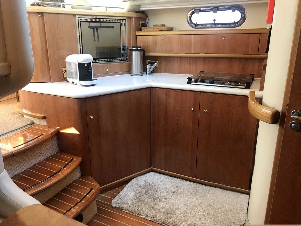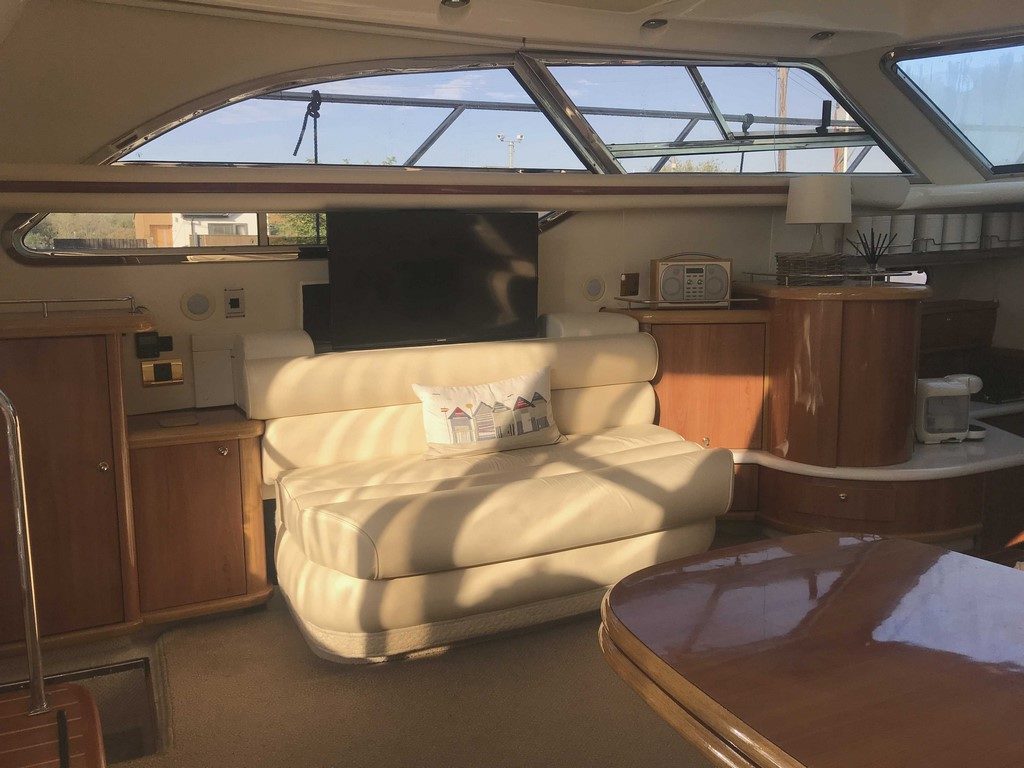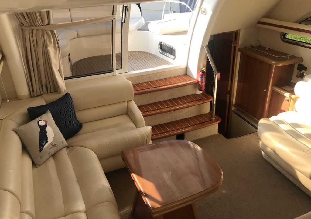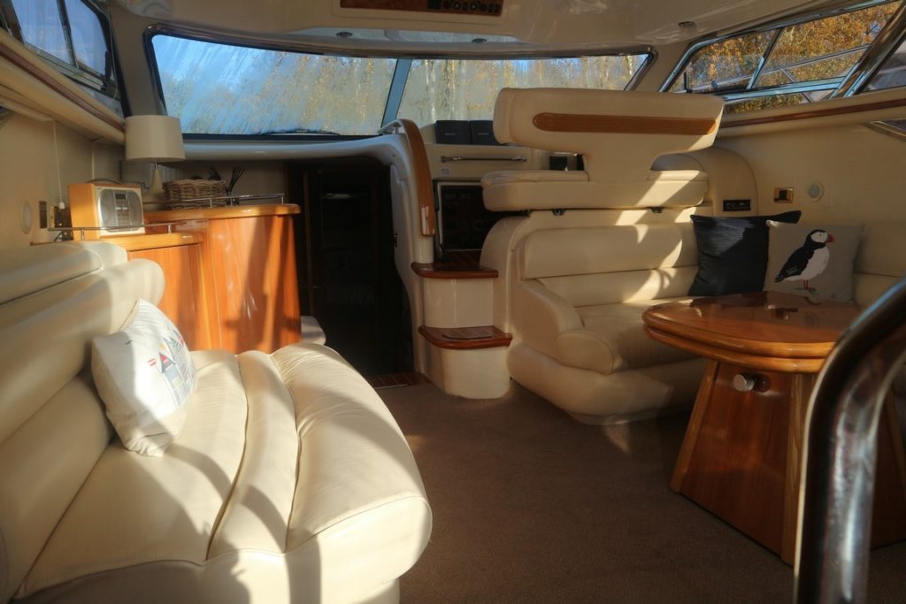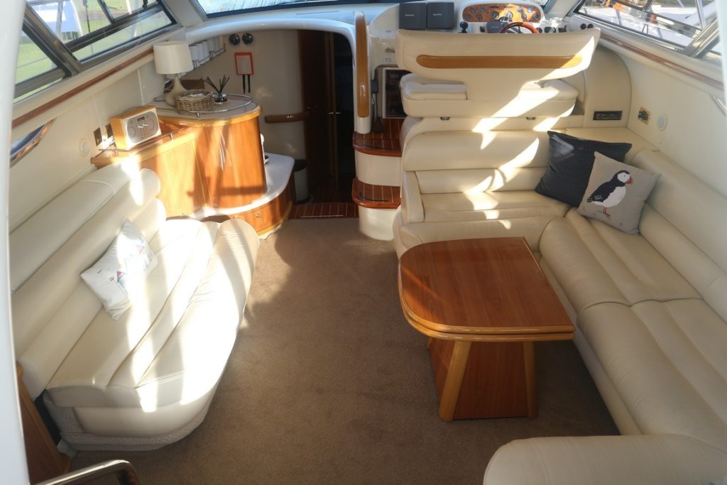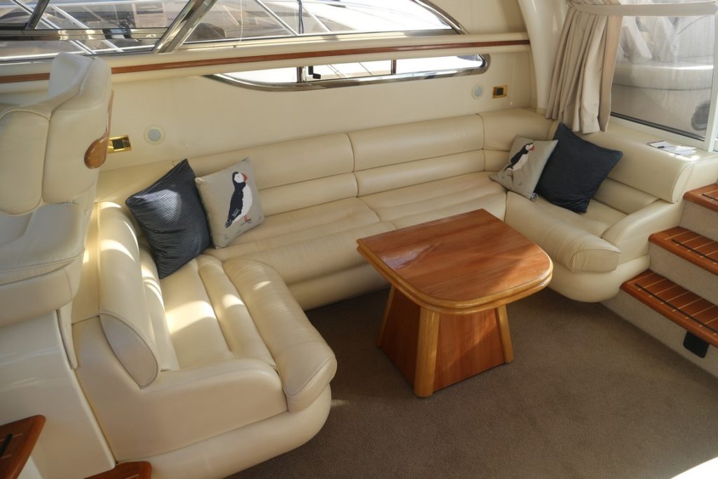 SEALINE F43 – 2003 – Powered by twin Volvo TAMD75p 480hp diesels. 6 berth accommodation with two toilets and two showers. Specification to include; Generator, bowthruster, warm air heating, electric windlass and a full range of Raymarine navigation equipment. Teak laid cockpit and bathing platform. A very well-kept example benefiting from investment by her current owner including new battery charger and inverter plus engine service, antifoul and generator service in 2018!