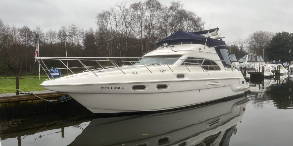 SEALINE F43 – 2003 – 2x Volvo TAMD75P 480hp diesels through shafts – 6 berth accommodation with two toilets and two showers – Well specified to include; Bow and stern thrusters, generator, air conditioning, passerelle, warm air heating, trim tabs, shore power, holding tank, electric windlass, autopilot, leather upholstery, radar, plotter. BSC 2026. A well-maintained F43 with only two owners from new, featuring numerous improvements and upgrades. Must be seen to be appreciated!