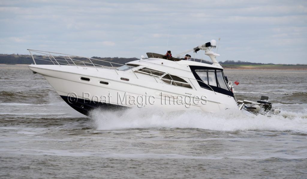 SEALINE F43 – 1999 – Twin Volvo TAMD 63P 370HP Diesel Engines. 6 berths with 2 sea toilets and 2 showers. Bowthruster, Warm air heating system, Full Raymarine navigation equipment, Tracvision, Teak flooring to cockpit and bathing platform, shore power supply with battery charger and immersion. Well known to NYA having moored with us here in Brundall and has also been an avid participant on our cruising club events during her current ownership.