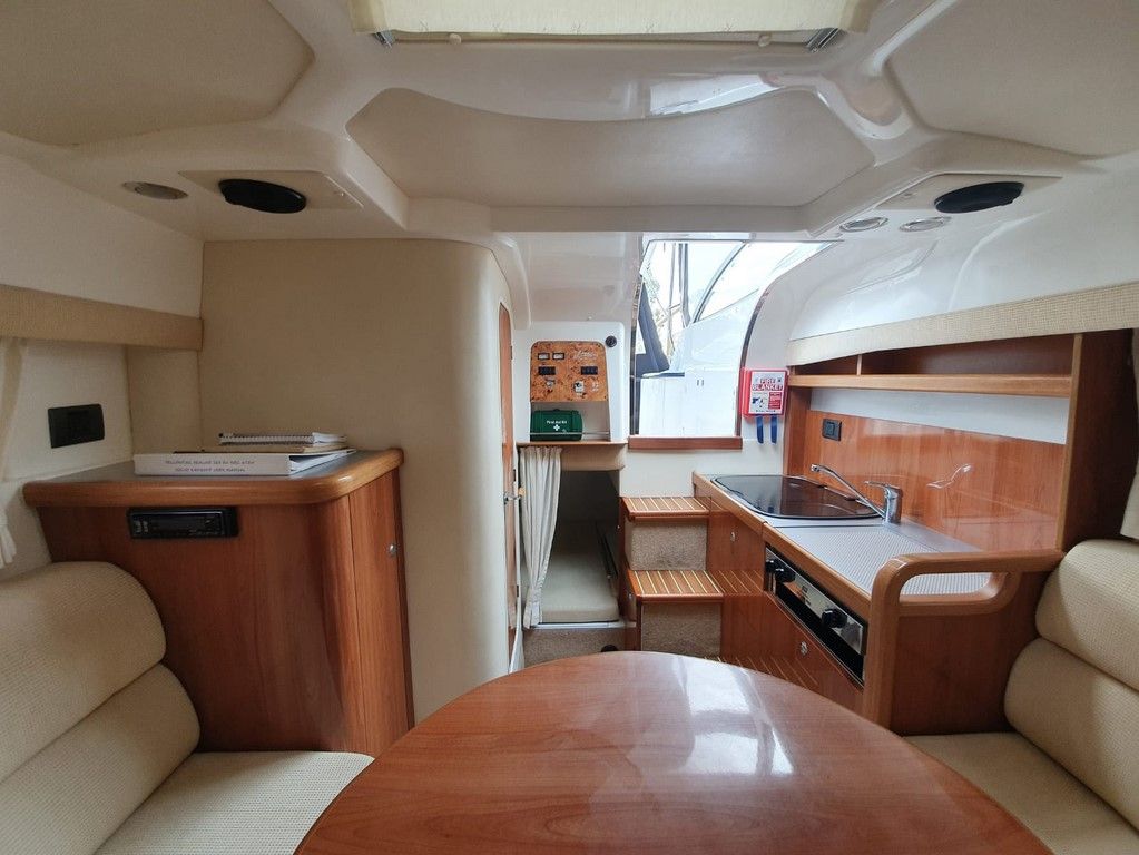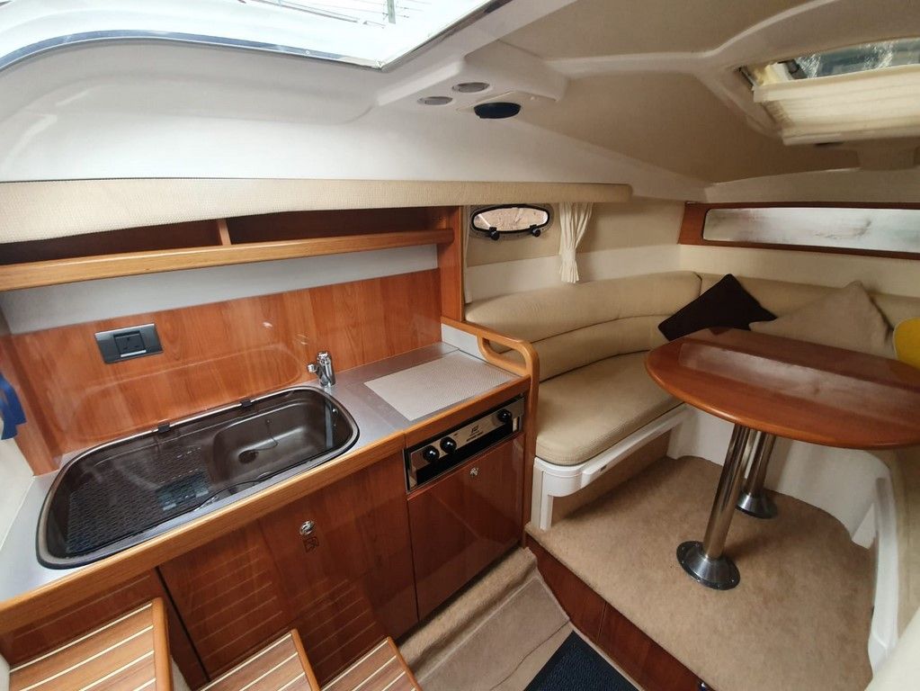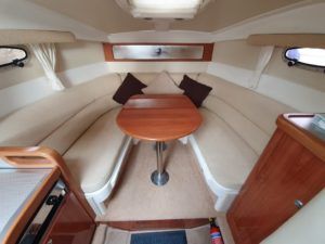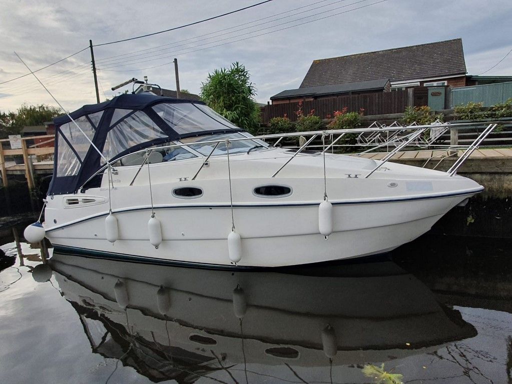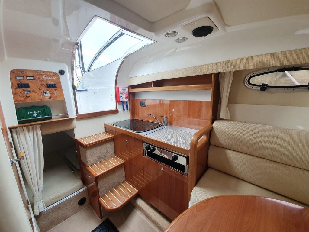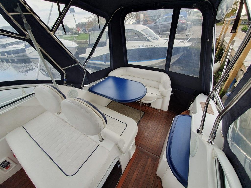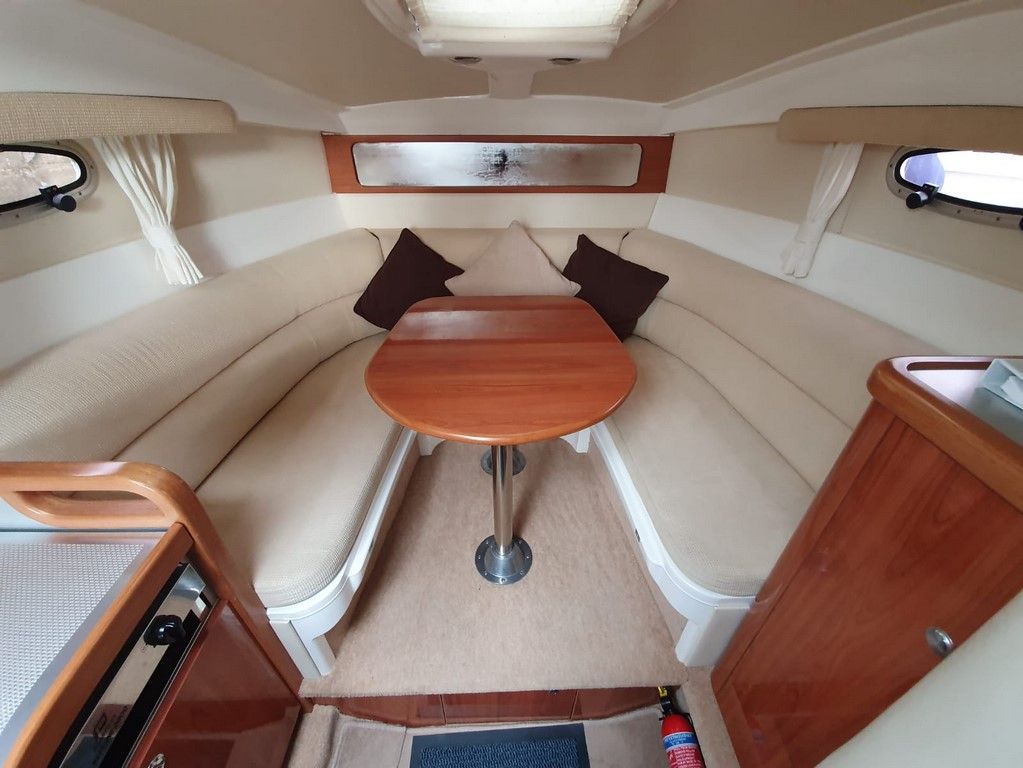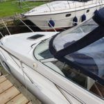 SEALINE S23 – 2004 – Powered by a single Volvo KAD32 170hp diesel. 4 berth accommodation with toilet and shower. Specification to include; Webasto warm air heating, trim tabs, electric windlass, a range of navigation equipment including Raymarine VHF and plotter and shore power supply with battery charger. Teak laid cockpit and bathing platform. Folding radar arch for increased inland access. Engine and drive service 2019. Antifouled and polished 2019. A lovely example, clearly very well kept by her current owner and presented in very good order!