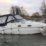 SEALINE S23 – 2004 – 1 x Volvo KAD32P/DP (170hp) diesel engine. 4 berth accommodation with 1 x toilet (to holding tank) & shower. Specification including shore power, battery charger, immersion heater, warm air heating to cabin and cockpit, electric windlass, teak laid cockpit, trim tabs, folding canopy arch, Navman GPS, VHF, Raymarine tri- date log. A very popular & modern Sealine model with a great sociable cockpit and low air draft, perfect for offshore and inland cruising.