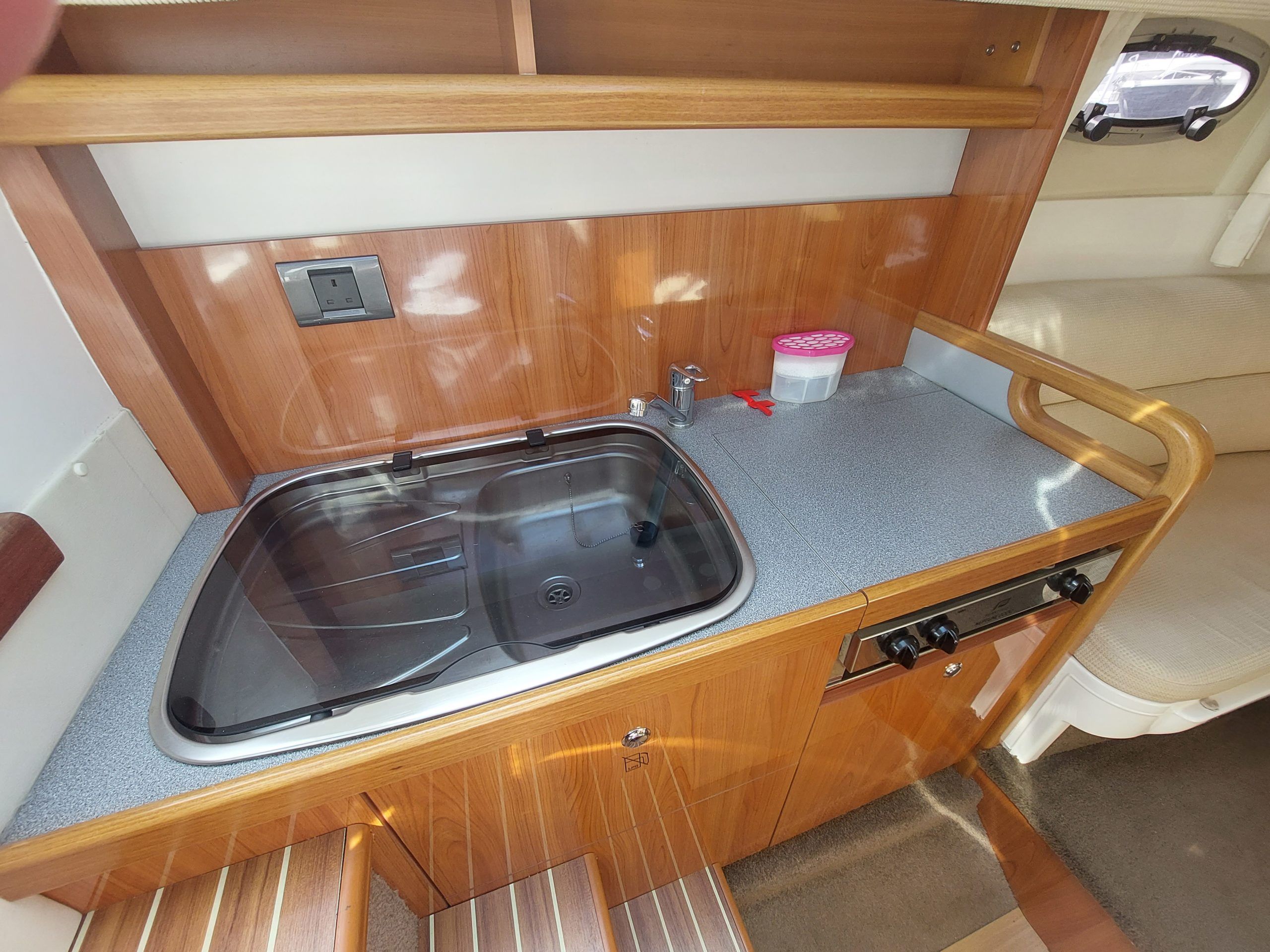 Sealine S23 – 2004 – Single Volvo Penta KAD32DP 170hp diesel engine. Clever 4 berth accommodation, lots of spec including bow-thruster and Garmin 3010 colour plotter. “Serenity” is a clean and tidy example of these popular sports cruisers with a good maintenance history and clean recent survey. One of the better S23’s available!