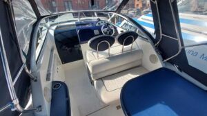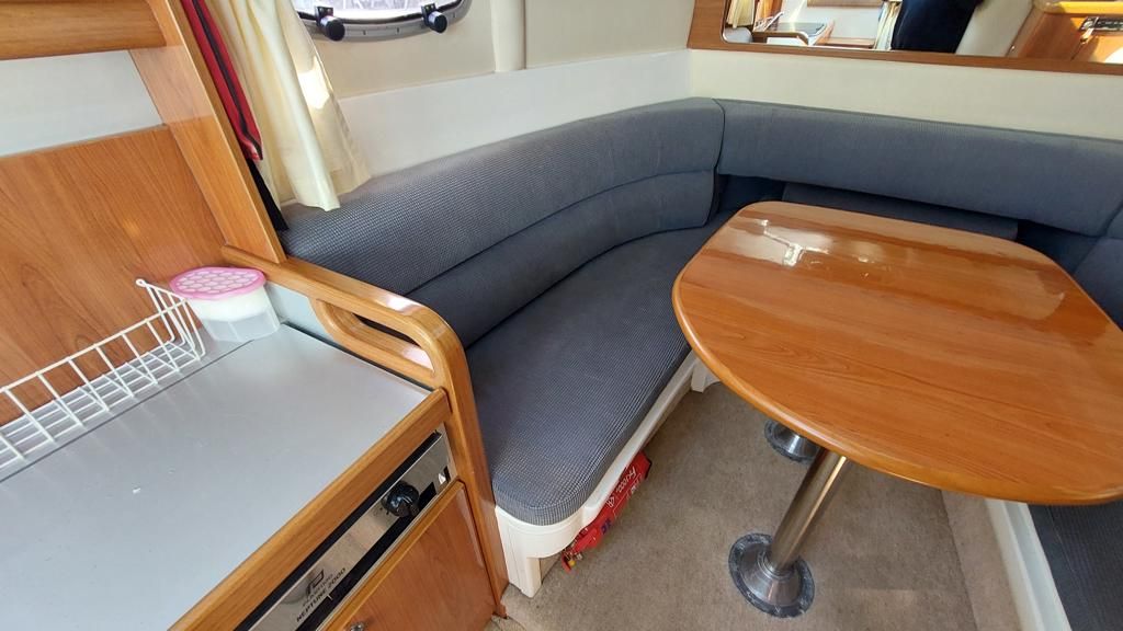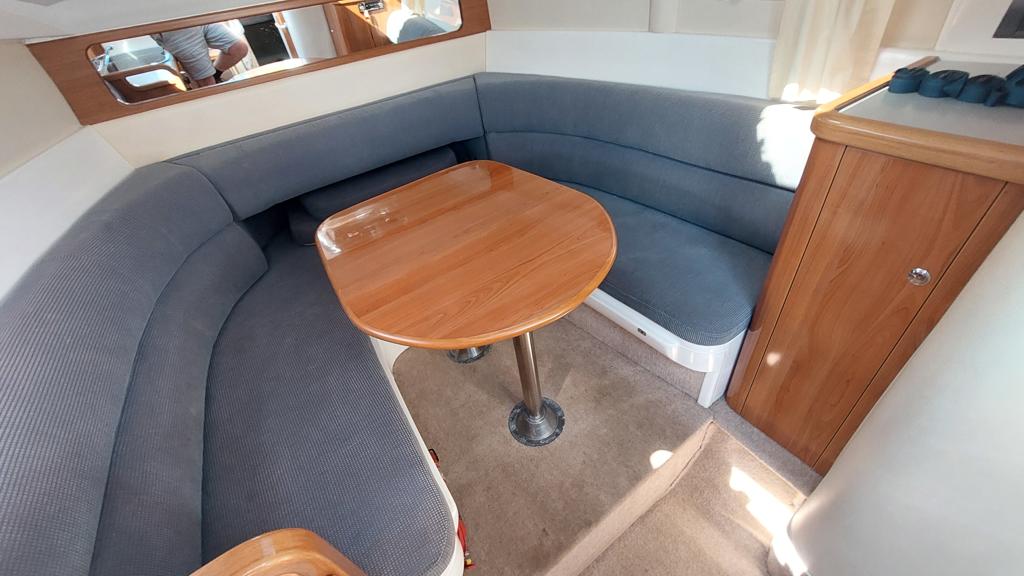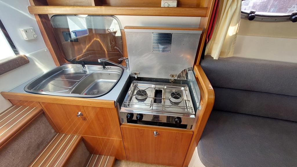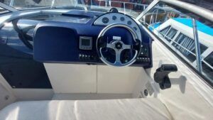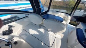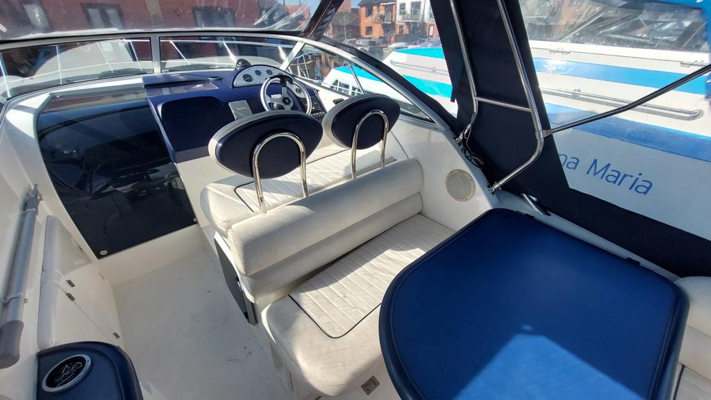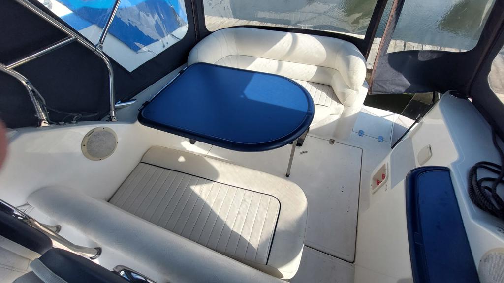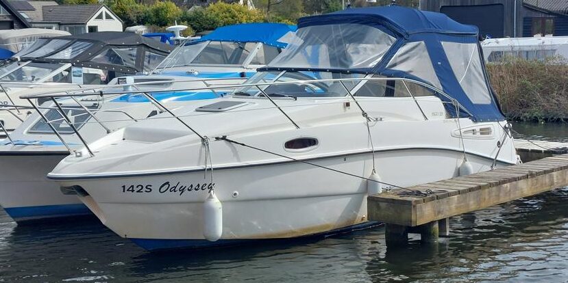 Sealine S23 – 2003 – Single Volvo Penta KAD32DP 170hp diesel engine through a sterndrive. 4 berth accommodation with a single toilet and shower compartment. Specification to include; warm air heating, electric windlass, tonneau cover, holding tank, speed and depth logs. “Odyssea” is a nice example of these popular sports cruisers and offers a very sociable cockpit area together with comfortable cabin. A low air-draft gives her access under most Broads bridges. More pictures to follow. BSC 08/2028.