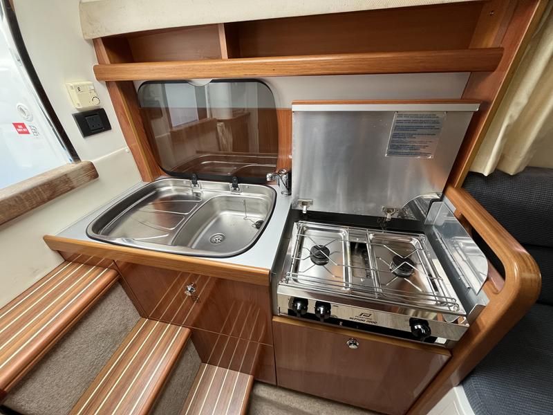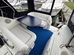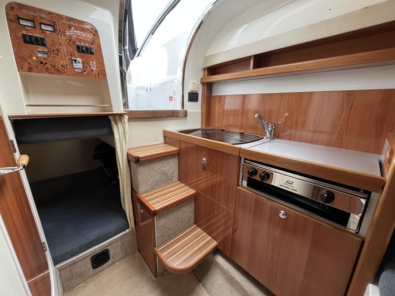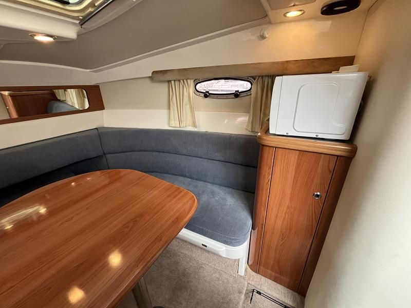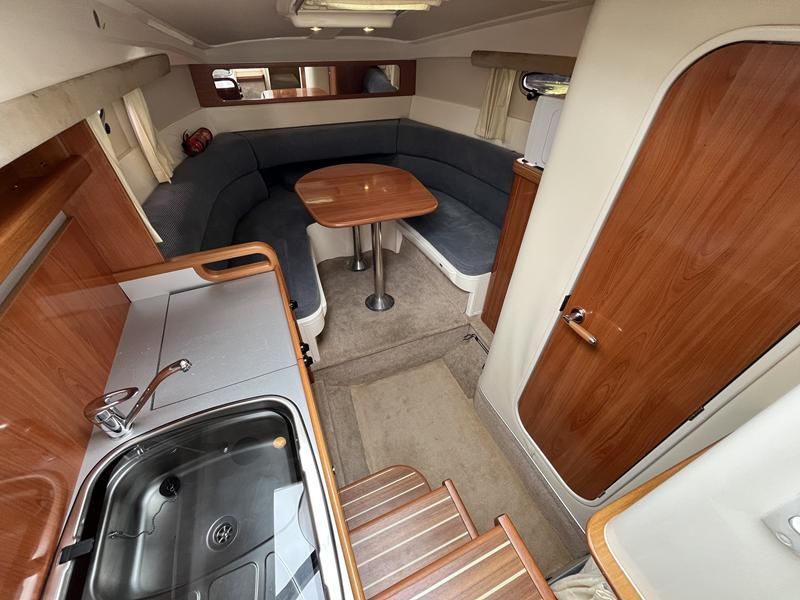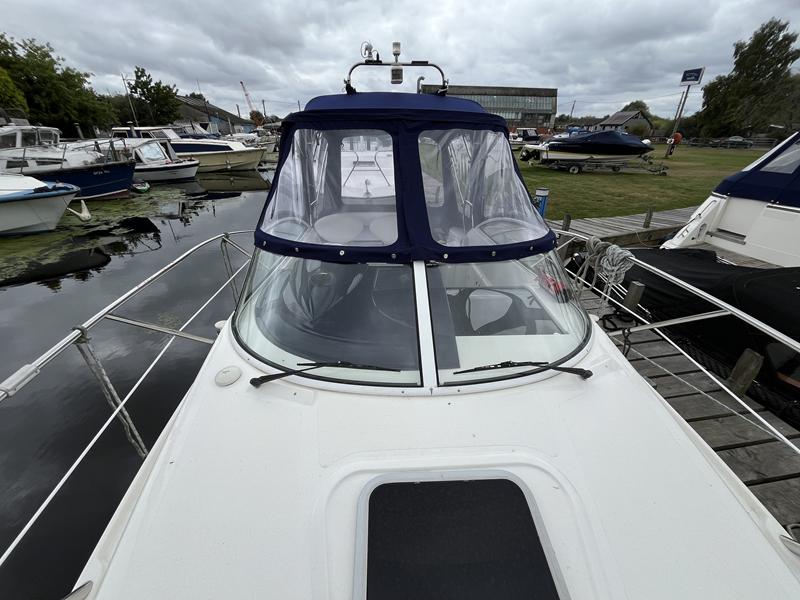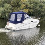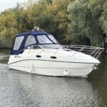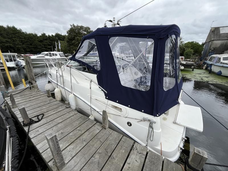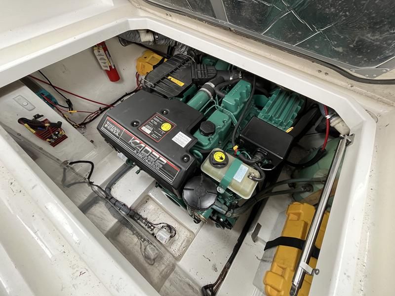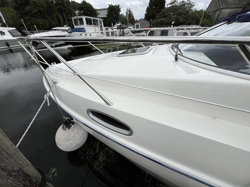 Sealine S23 – 2002 – Powered by a Volvo KAD32 diesel engine (only 364 hours run). 4 berth accommodation with 1 x toilet/shower compartment. Specification including Electric windlass, warm air heating, shore power, battery charger, immersion heater, holding tank, trim tabs, Raymarine Tridata & GPS, Engine & outdrive serviced 07/25, new canopy 08/25, Polished and antifouled 08/25. An excellent introduction in to offshore boating or a sporty cruiser for inland pursuits. NYA Stock – Sold with 3 month engine and gearbox warranty.