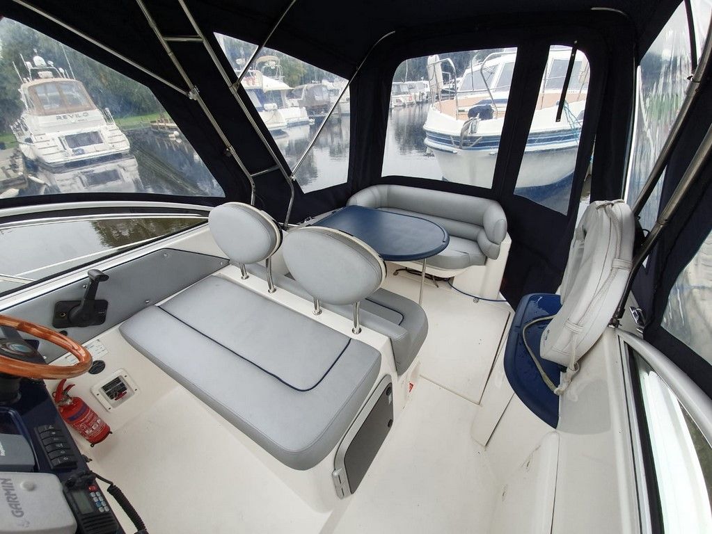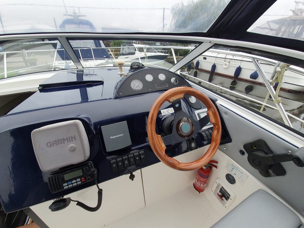 SEALINE S23 – 2002 – Powered by a single Volvo Kad32 170hp diesel. 4 berth accommodation with toilet and shower. Specification to include; electric windlass, trim tabs, shore power with battery charger, 240v sockets and immersion, a range of navigation to include, VHF, GPS and ST60 Tridata. Recent engine and sterndrive service, antifoul and full machine polish. A turn key boat, NYA Stock fully prepared by our Service Centre and presented in good order throughout.
