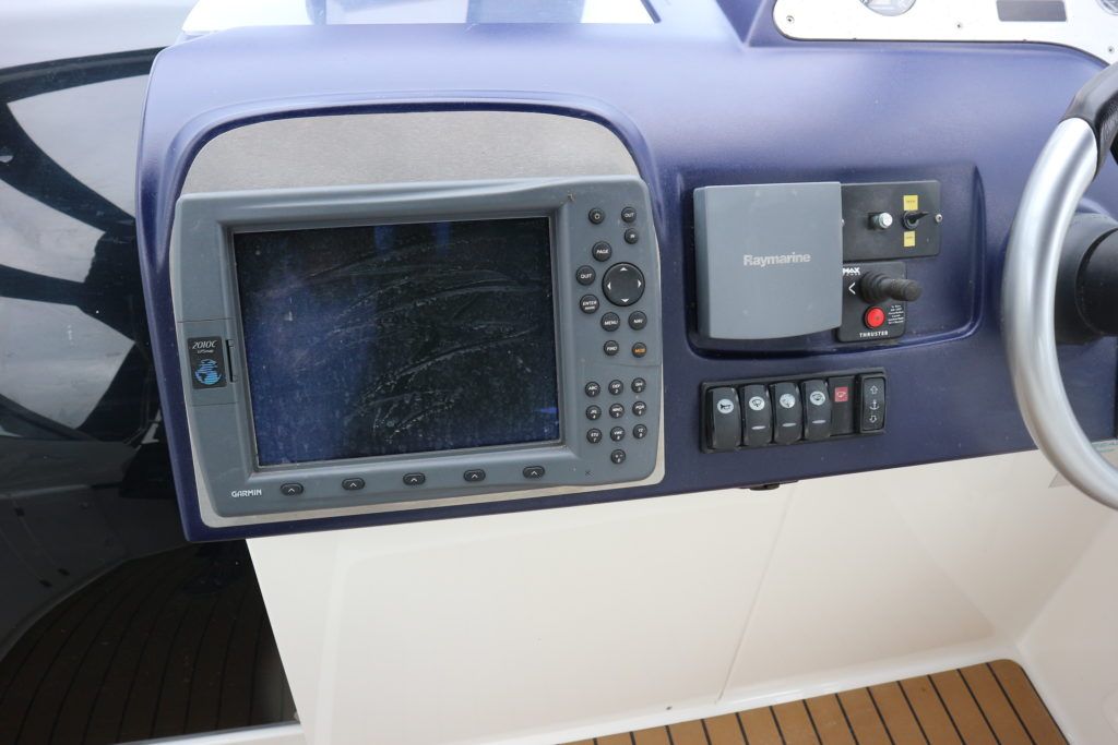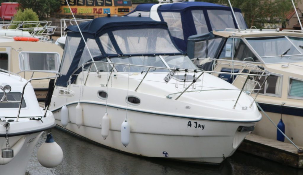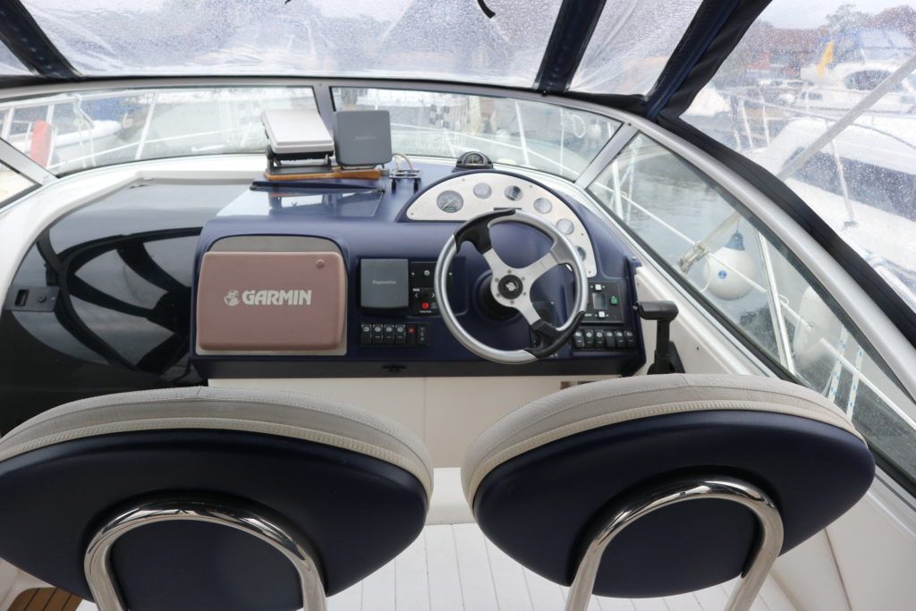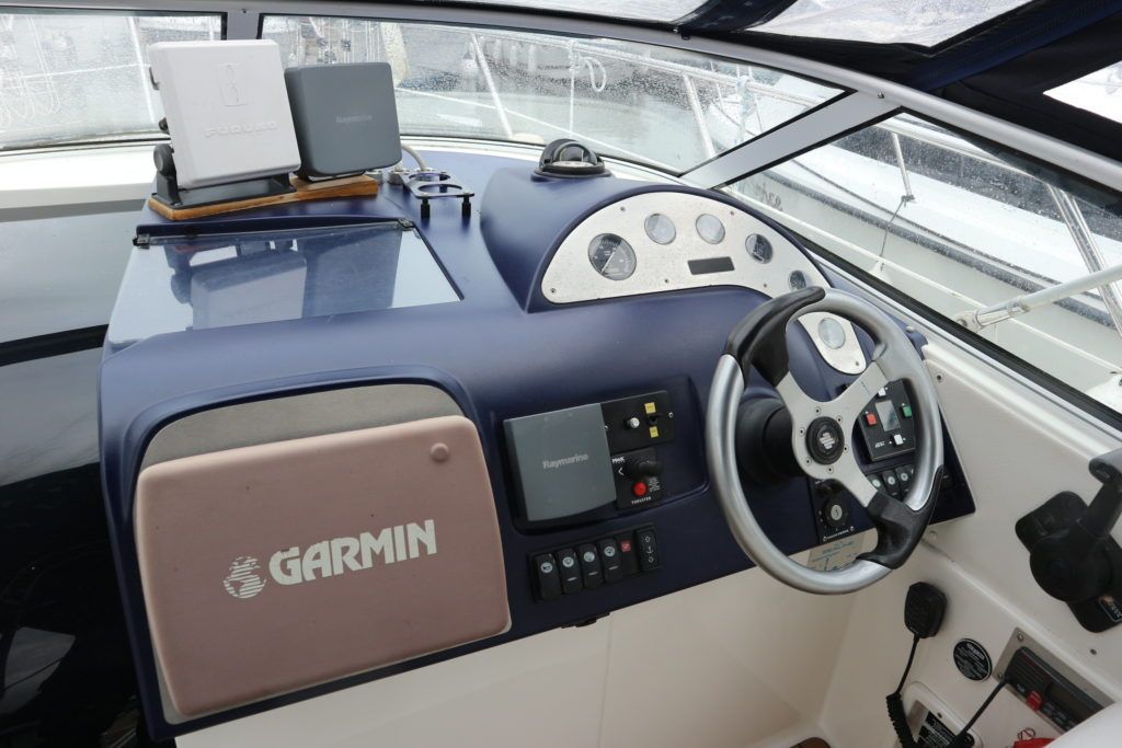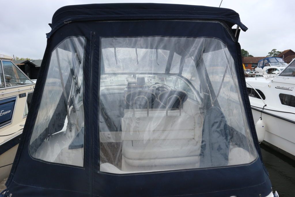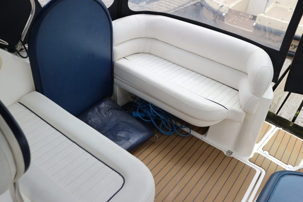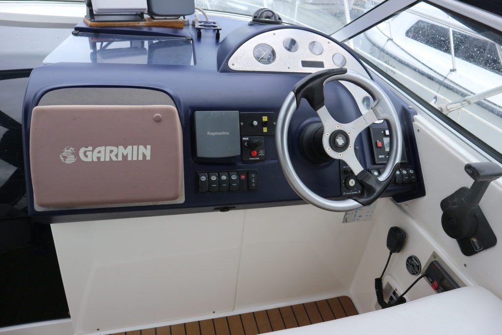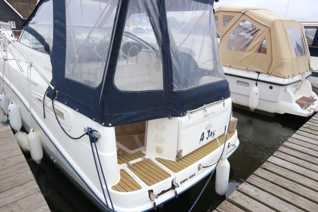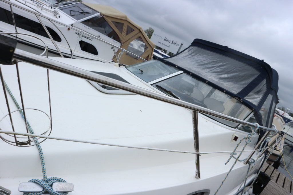 Sealine S25 – 2004 – Powered by a single Volvo KAD32 170hp diesel engine. 4 berth accommodation with one toilet and one shower. Galley with 2 burner hob, grill, sink & fridge. Specification including bow thruster, warm air heating, a host of navigation equipment, shore power, battery charger, immersion heater, synthetic teak decking. A lightly used sports cruiser presented in good overall condition. Folding arch to allow for a low air draft and great access on the inland waterways.