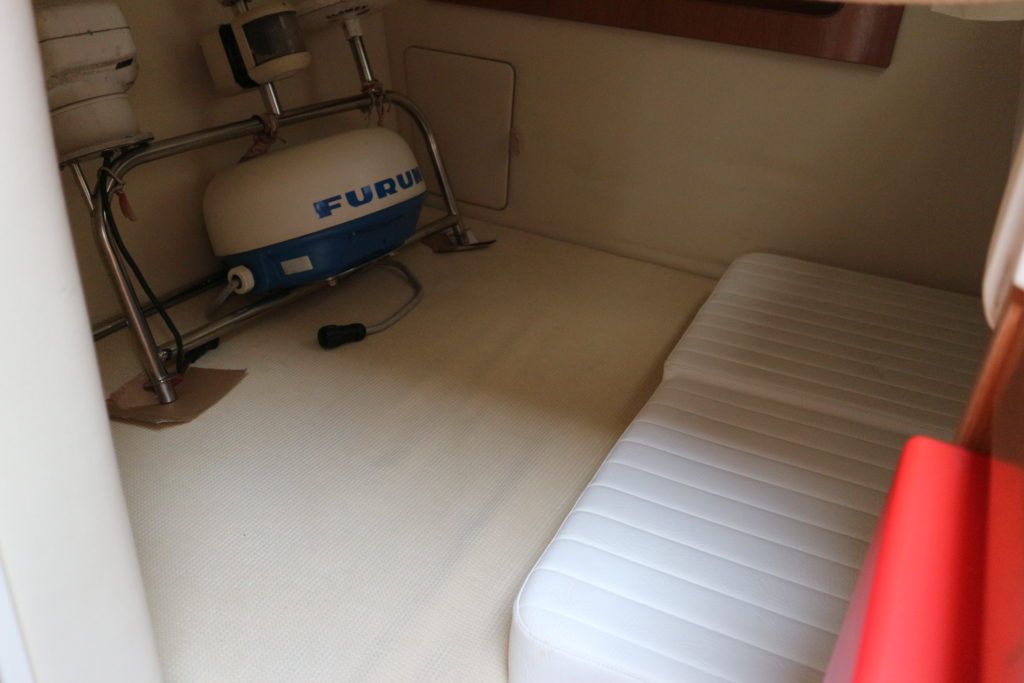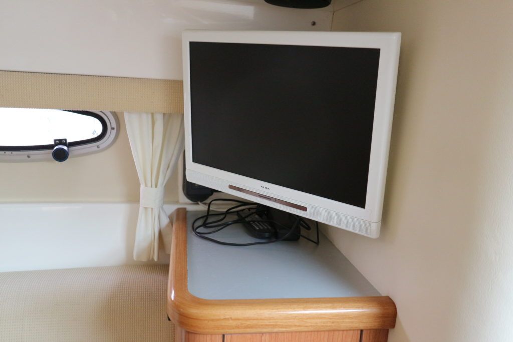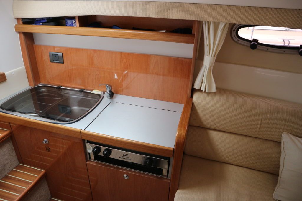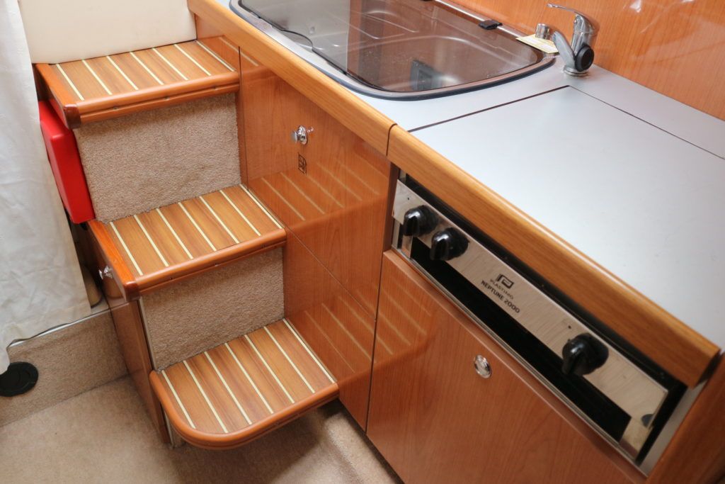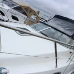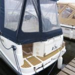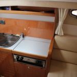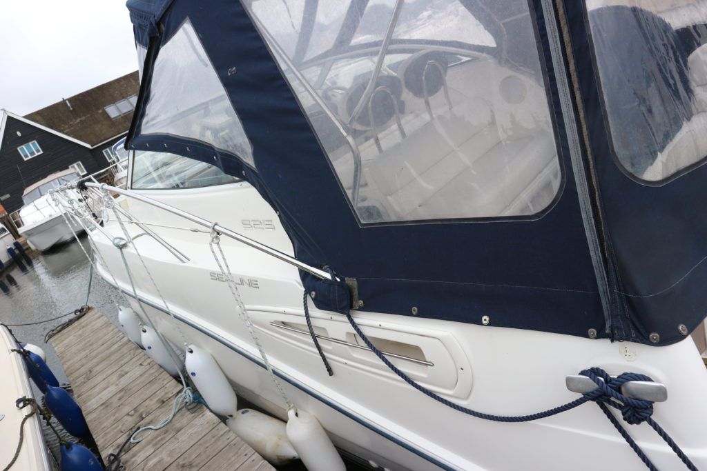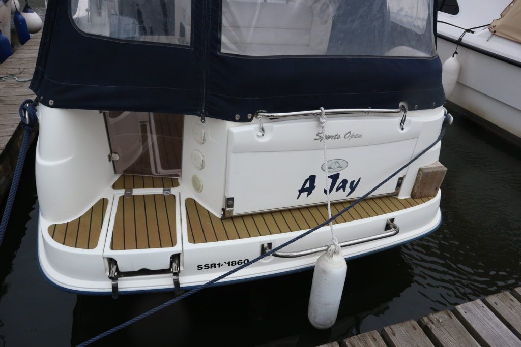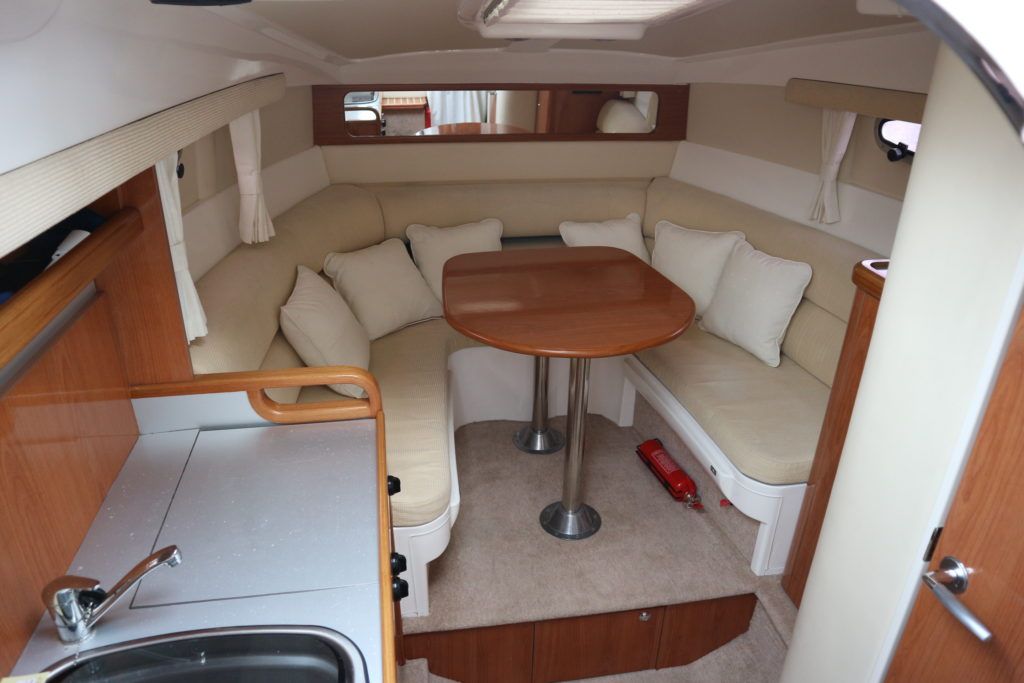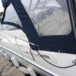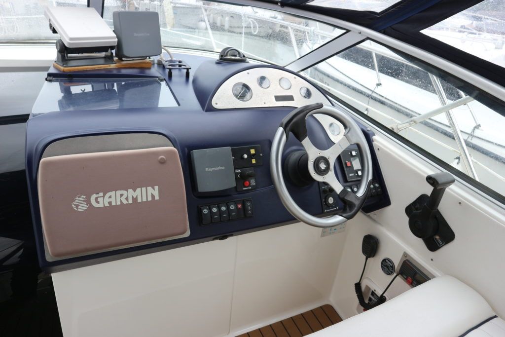 Sealine S25 – 2004 – Powered by a single Volvo KAD32 170hp diesel engine. 4 berth accommodation with one toilet and one shower. Galley with 2 burner hob, grill, sink & fridge. Specification including bow thruster, warm air heating, a host of navigation equipment, shore power, battery charger, immersion heater, synthetic teak decking. A lightly used sports cruiser presented in good overall condition. Folding arch to allow for a low air draft and great access on the inland waterways.