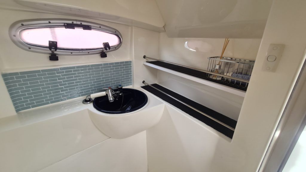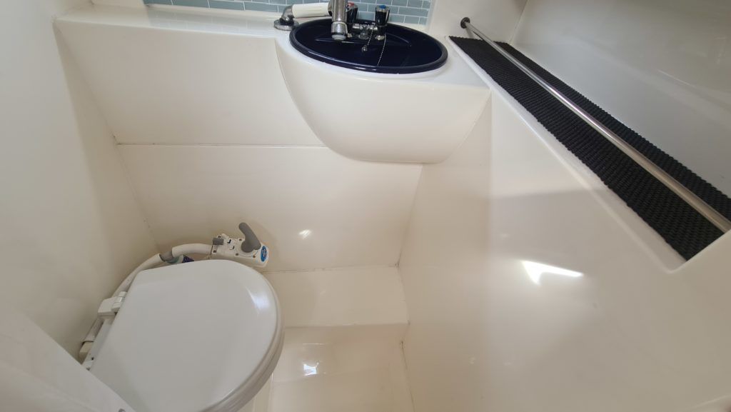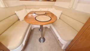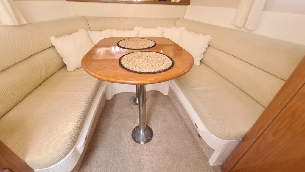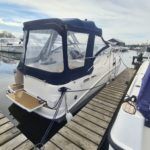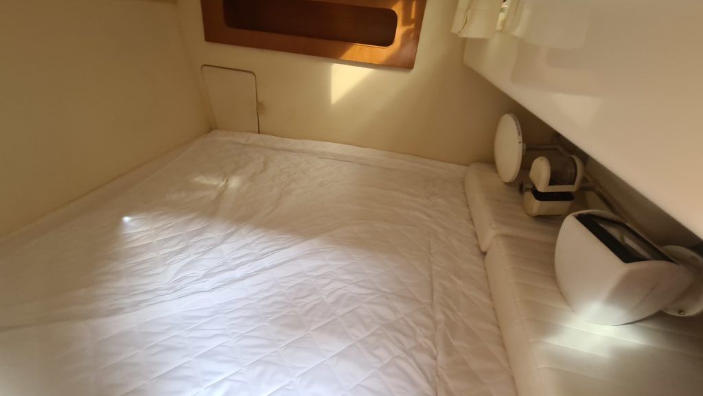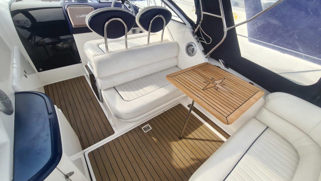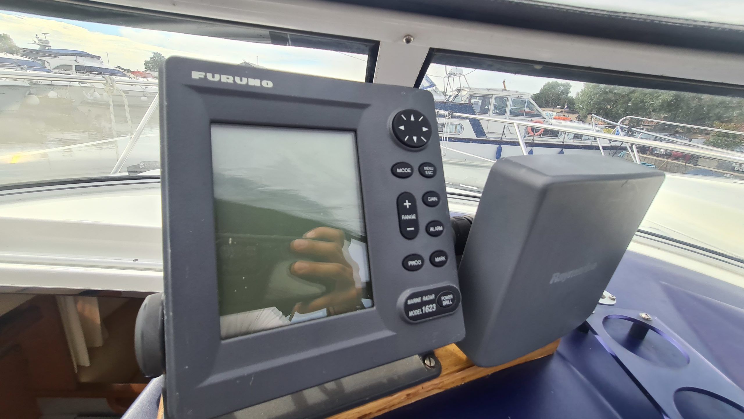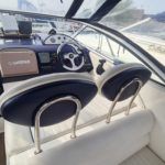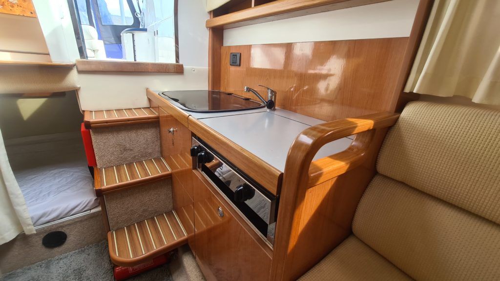 Sealine S25 – 2004 – Powered by a single Volvo KAD32 170hp diesel engine. 4 berth accommodation with one toilet and one shower. Galley with 2 burner hob, grill, sink & fridge. Specification including bow thruster, warm air heating, a host of navigation equipment including radar, shore power, battery charger, immersion heater, synthetic teak decking sea toilet . A lightly used sports cruiser presented in good overall condition. Folding arch to allow for a low air draft and great access on the inland waterways.