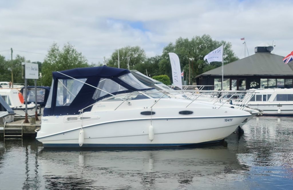 Sealine S23 – 2004 – powered by a Volvo Penta KAD32 170hp diesel engine through a sterndrive. 4 berth accommodation with 1 sea toilet/shower. Specification to include; Max Power bowthruster, shore power, folding radar arch, a range of navigation equipment, folding bathing platform, A very tidy example of these popular sports cruisers. BSC 16/04/2024