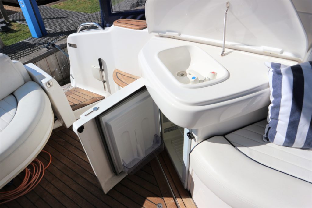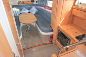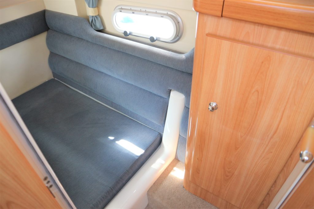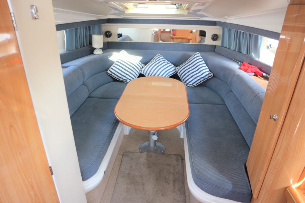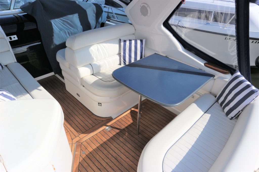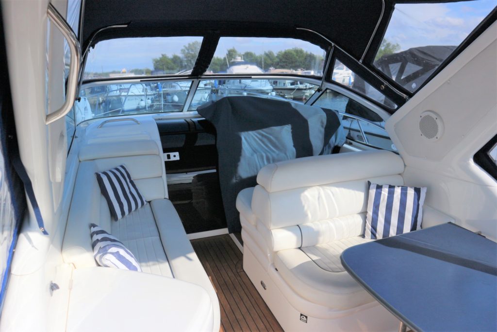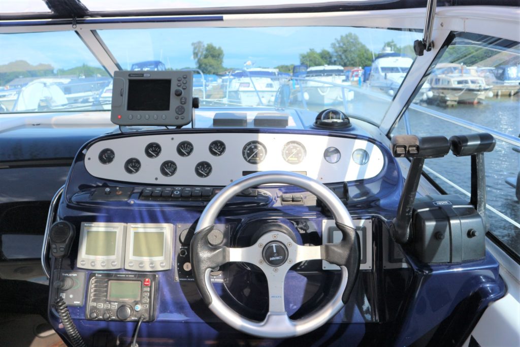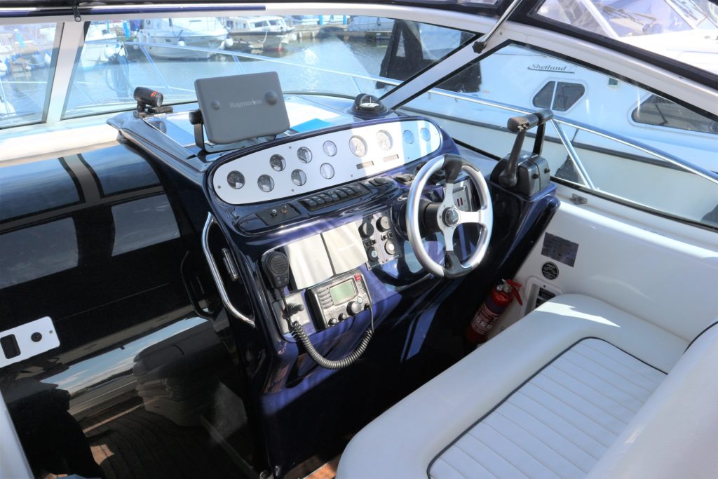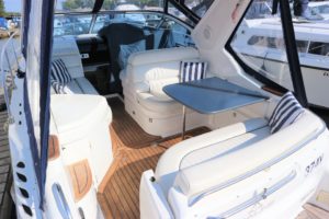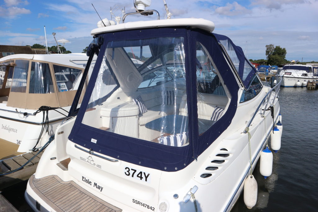 SEALINE S28 – 2002 – 2 x Volvo AQAD31/DP 150hp Diesel Engines. 4 berth accommodation in Cabin & Saloon with 1 x toilet to holding tank/shower compartment. Specification to include bow thruster, electric windlass, shore power, battery charger, immersion heater, 1000w inverter, warm air heating, speed & depth log, VHF, Raymarine GPS/Plotter, teak laid cockpit & bathing platform, new canopy 2018, BSC 07/19. A smart example of these popular sports cruisers. The S28 offers a great introduction to sea cruising combining performance with comfort.