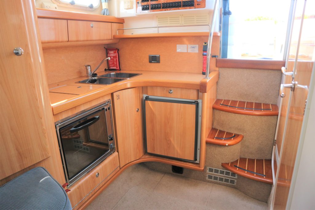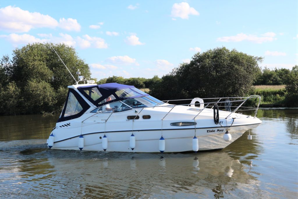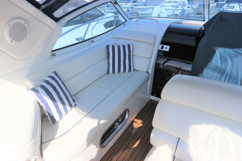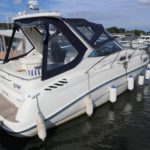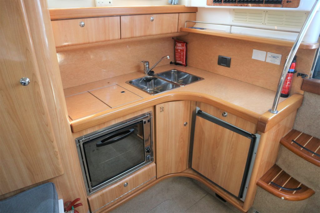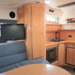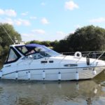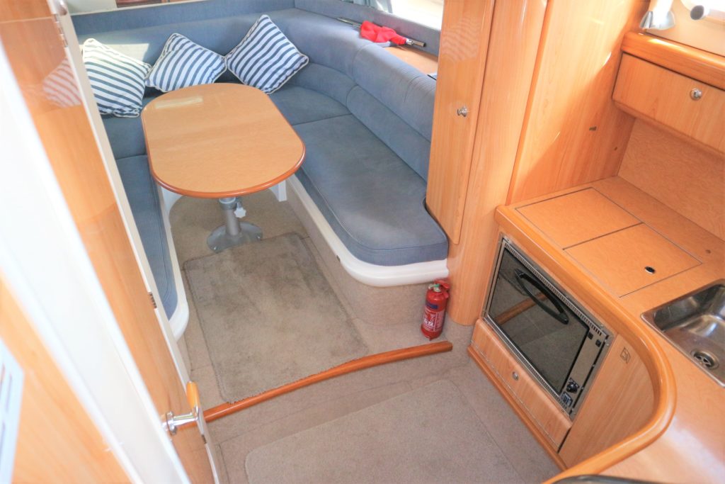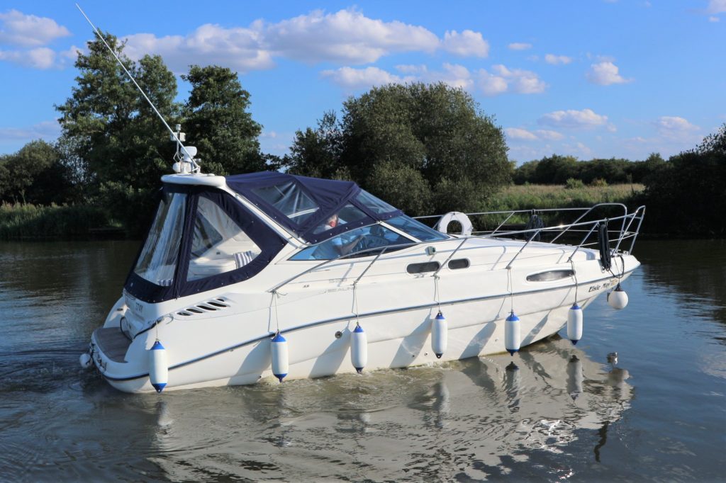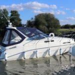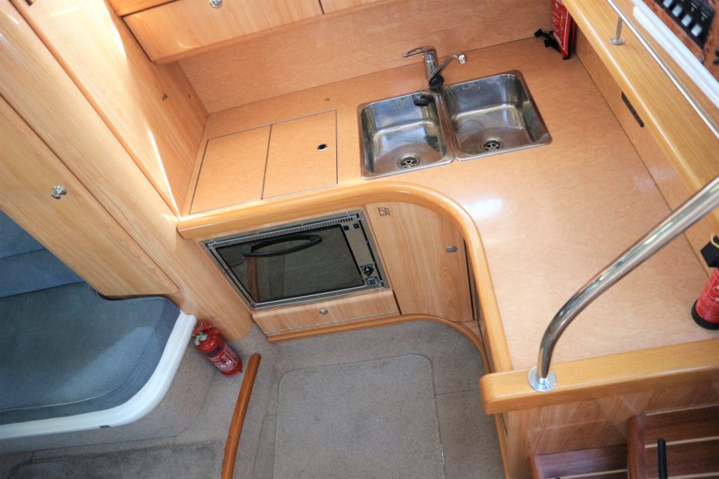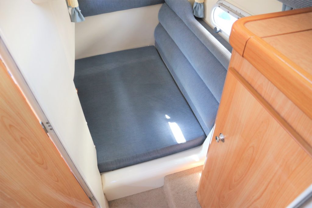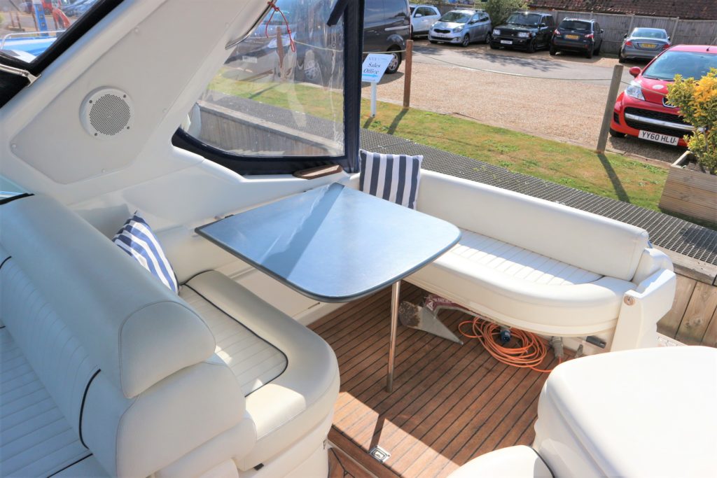 SEALINE S28 – 2002 – 2 x Volvo AQAD31/DP 150hp Diesel Engines. 4 berth accommodation in Cabin & Saloon with 1 x toilet to holding tank/shower compartment. Specification to include bow thruster, electric windlass, shore power, battery charger, immersion heater, 1000w inverter, warm air heating, speed & depth log, VHF, Raymarine GPS/Plotter, teak laid cockpit & bathing platform, new canopy 2018, BSC 07/19. A smart example of these popular sports cruisers. The S28 offers a great introduction to sea cruising combining performance with comfort.