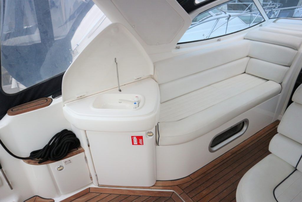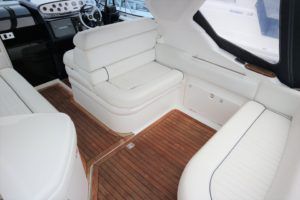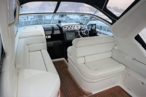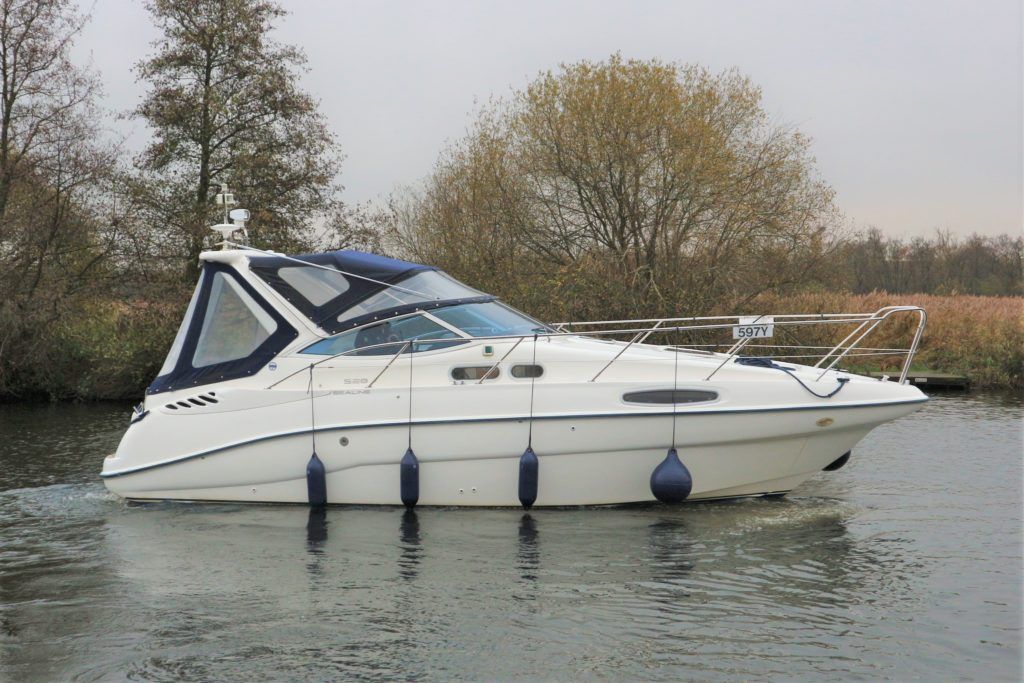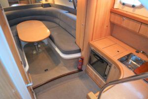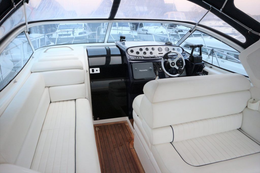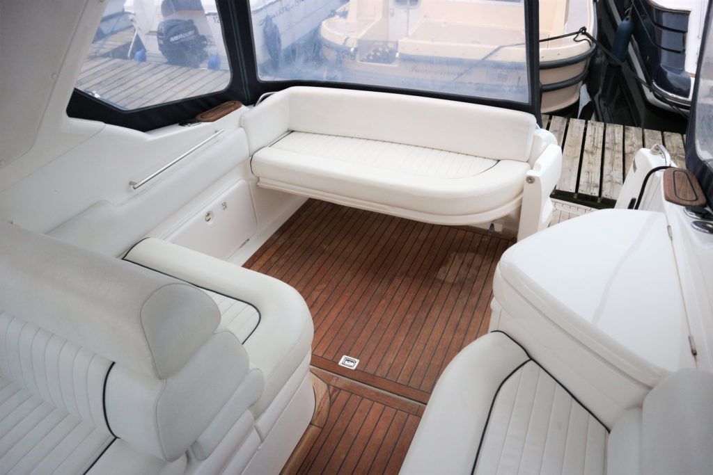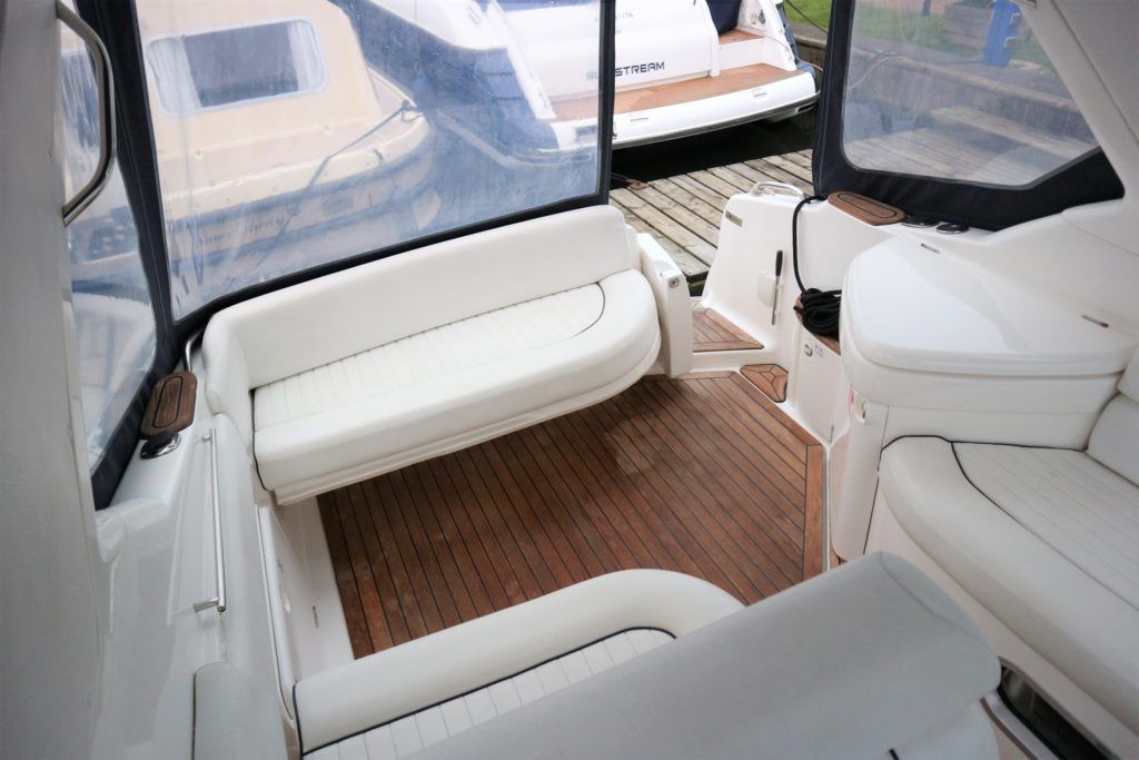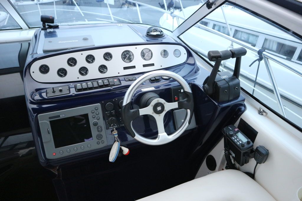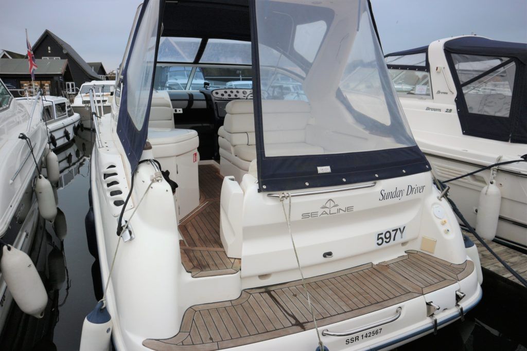 SEALINE S28 – 2002 – Powered by 2 x Volvo AD31DP 150hp diesel engines. 4 berth accommodation with 1 toilet/shower compartment. Specification including warm air heating system, electric windlass, shore power, battery charger, immersion heater, Raymarine chart plotter, Speed & depth log, engines & outdrives serviced 12/18. BSC 2024. A good example of these popular sports cruisers. The S28 offers a great introduction to sea cruising combining performance with family comfort.