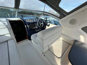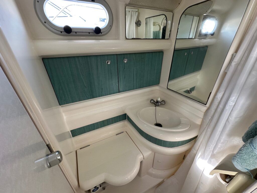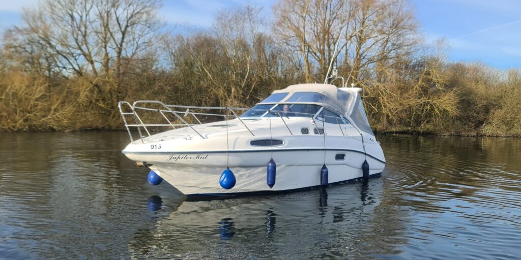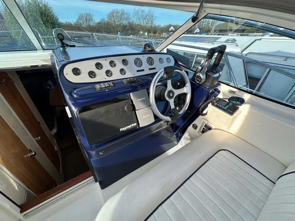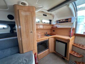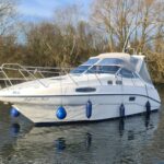 Sealine S28 – 2002 – Twin Volvo Penta AD31DP 150hp diesel engines through sterndrives. 4 berth accommodation with a single toilet and shower compartment. Specification to include; immersion heater, battery charger, warm air heating, GPS chart plotter, VHF radio, holding tank. “Jupiter Mist” is a nice example of these ever popular sports cruisers offering comfortable cruising and great performance. A craft capable of river and off shore cruising.
