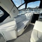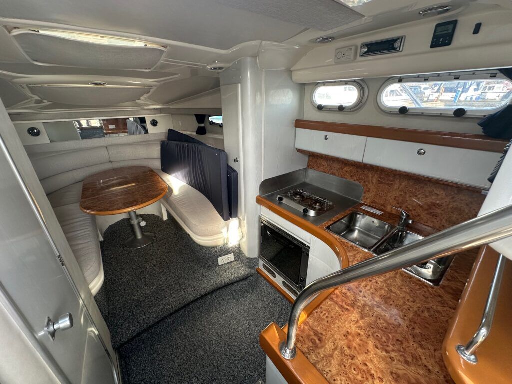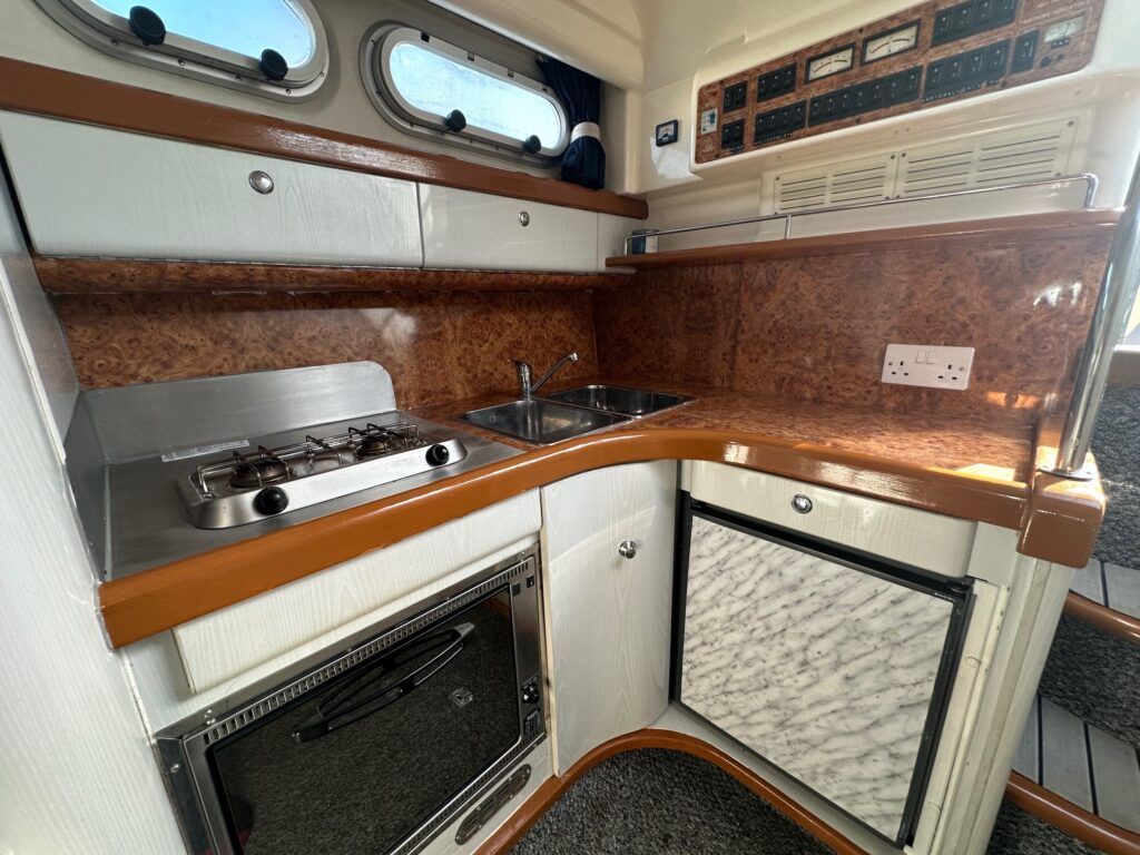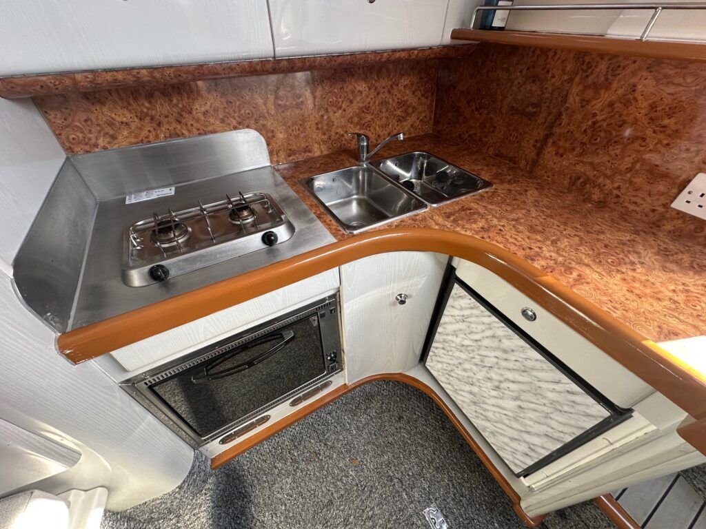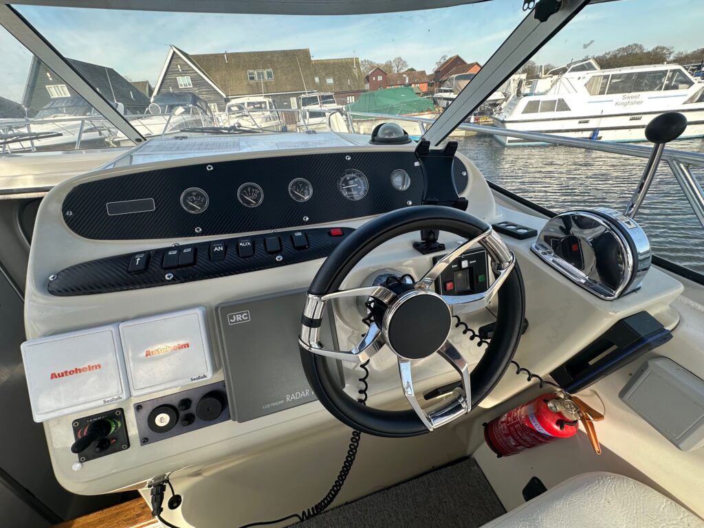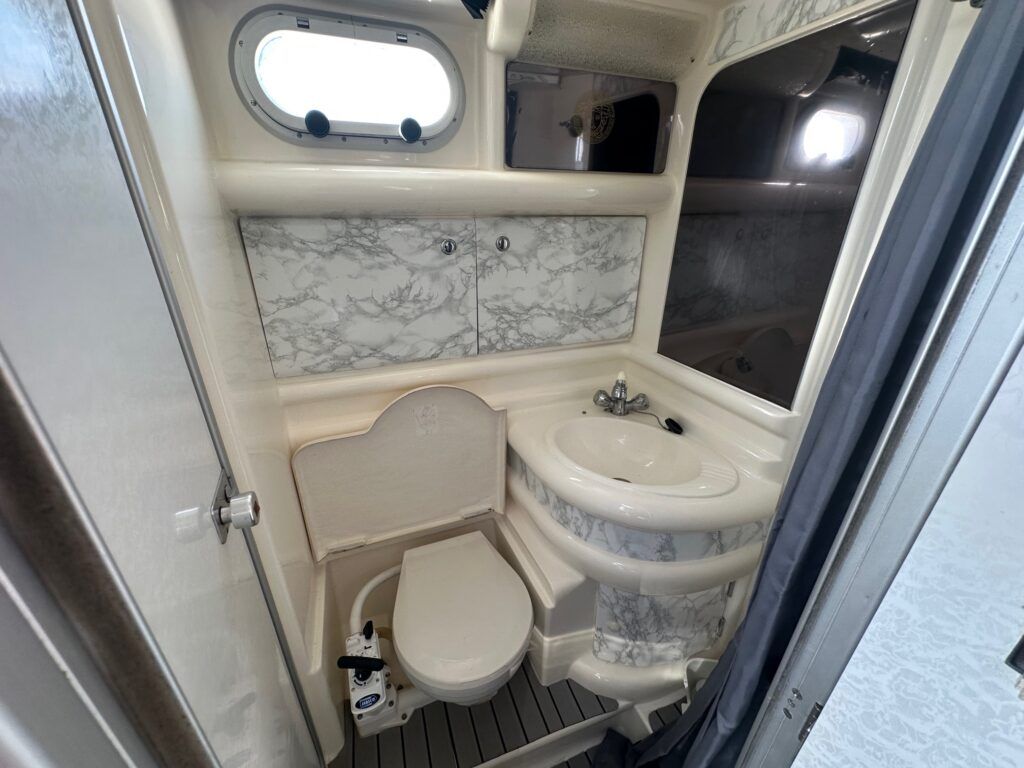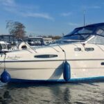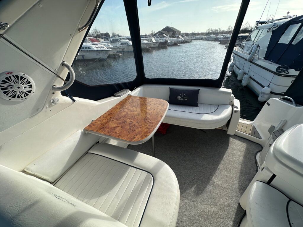 Sealine S28 – 1996 – Single Volvo KAD42 230hp diesel engine through a sterndrive. 4 berth accommodation with a single toilet/shower compartment. Specification to include; bow-thruster, warm air heating, folding radar arch, battery charger, radar, speed and depth logs, fore-deck sun-cushions. “Josie’s Buoy” is a tidy example of these ever popular sports cruisers, and comes with a folding radar arch providing a low air-draft. More pictures to follow.