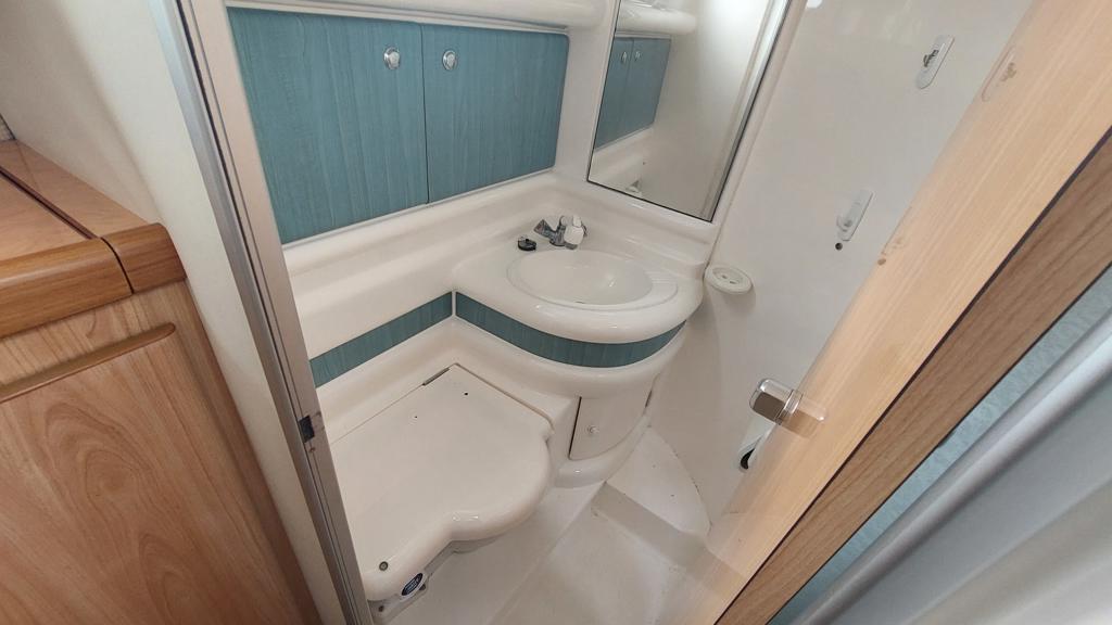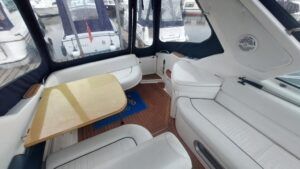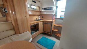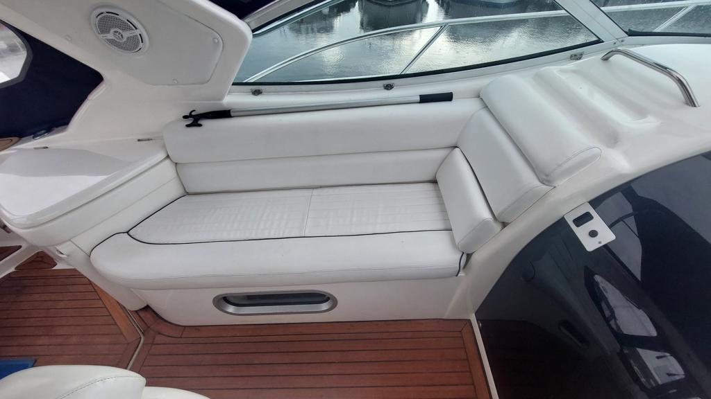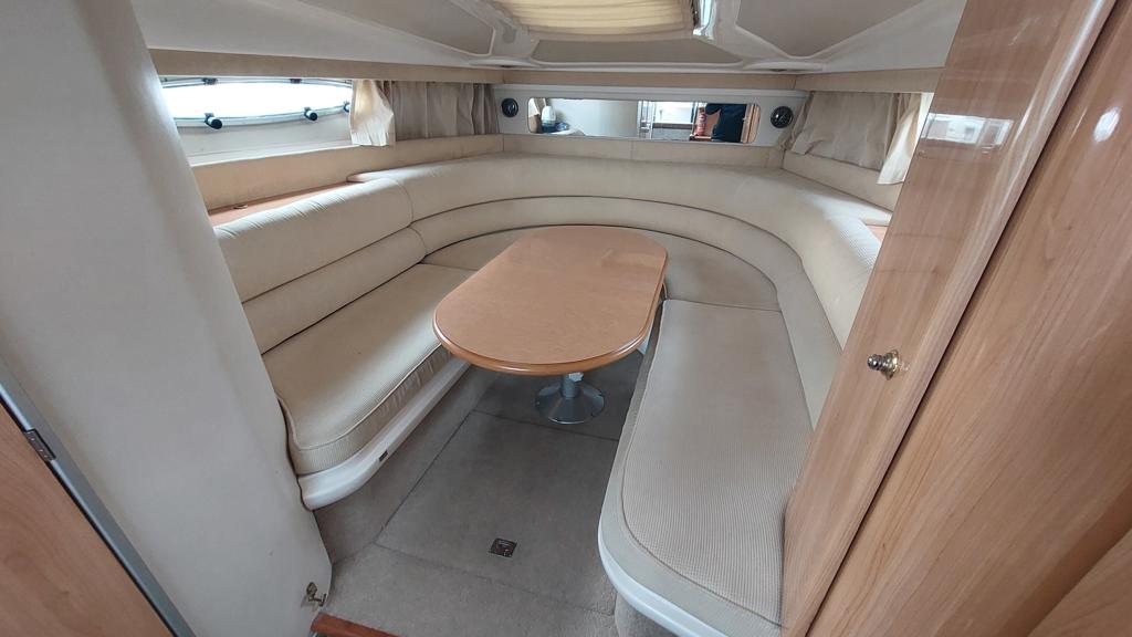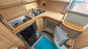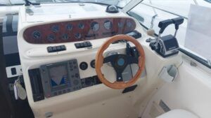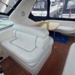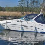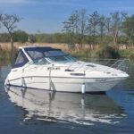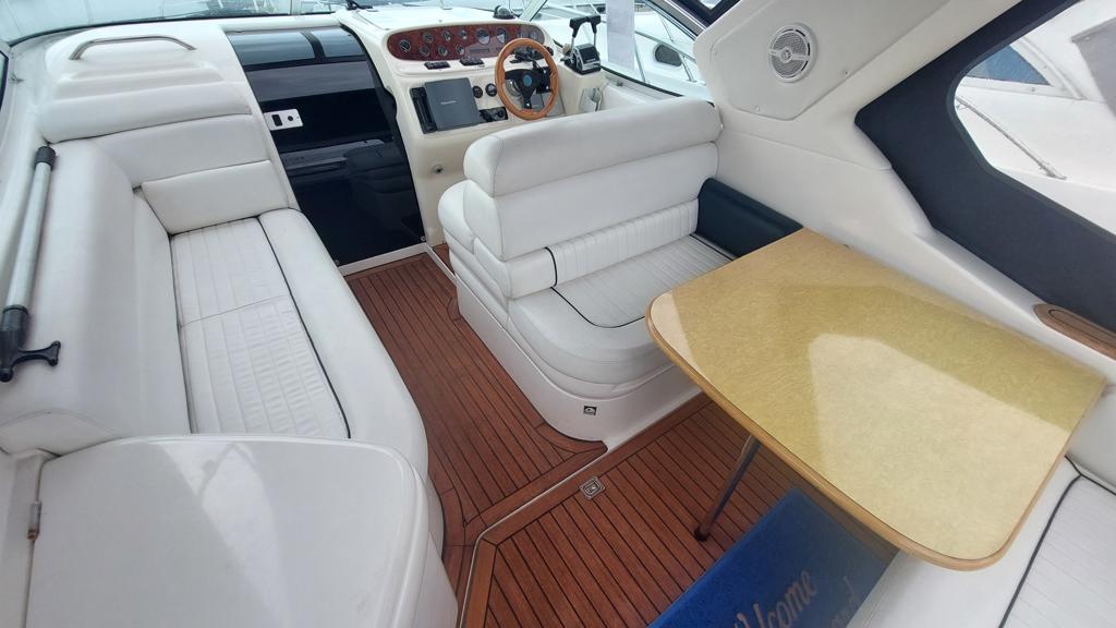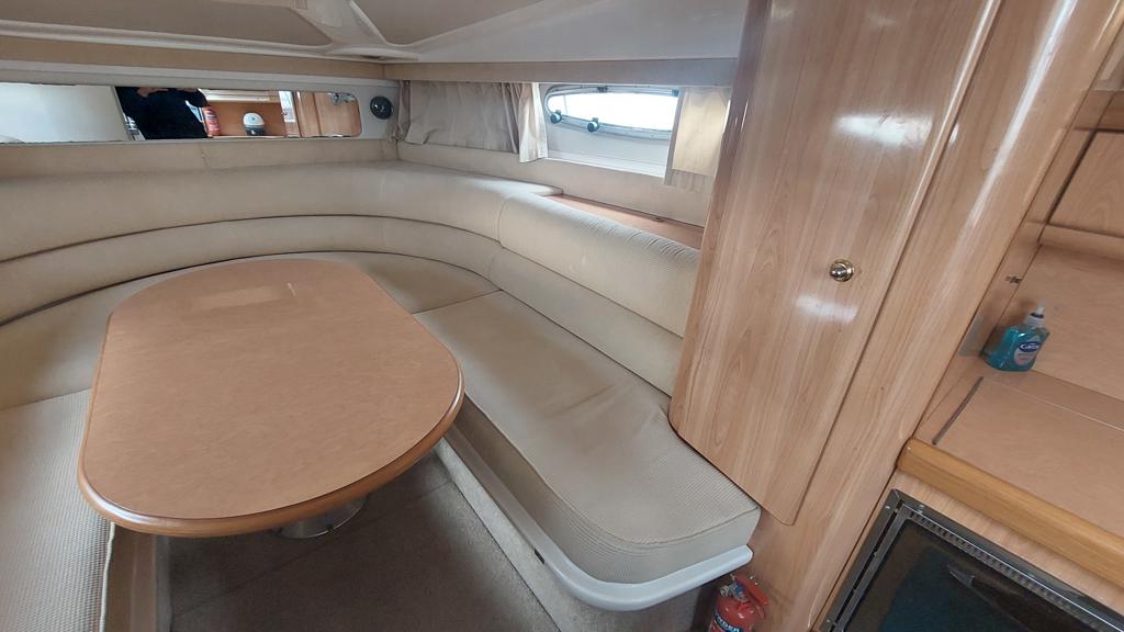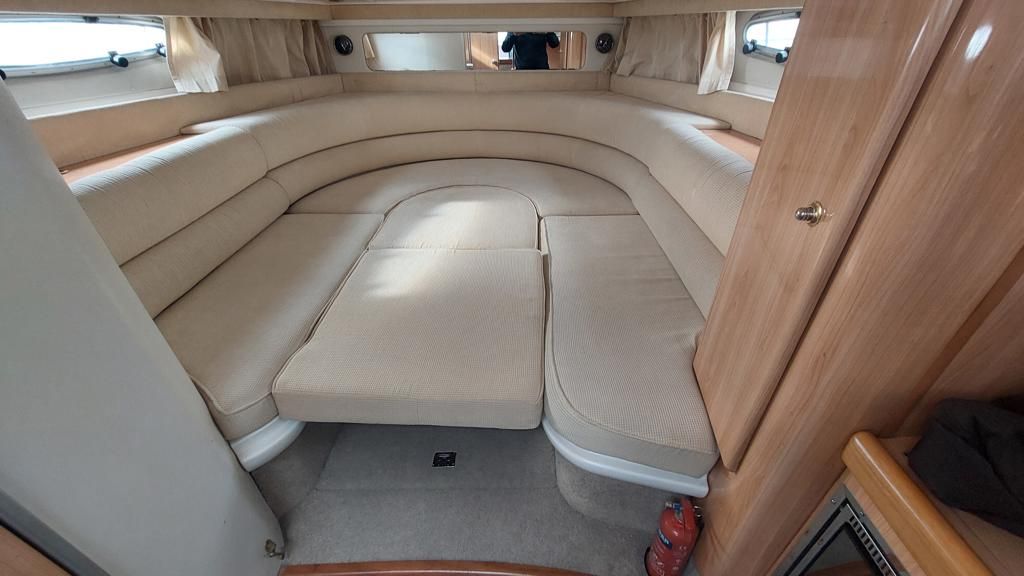 Sealine S28 – 1999 – Twin Mercruiser D2.8l D-Tronic 165hp diesel engines. 4 berth accommodation with large social cockpit. Specification includes; Radar & Plotter, warm air heating, holding tank, battery charger etc. “Spindrift” is a very clean, smart and tidy vessel, the S28 offering a great socialising space together with comfortable accommodation. Engines and drives serviced November 2024, polished and anti-fouled April 2025, BSC 02/03/2027.