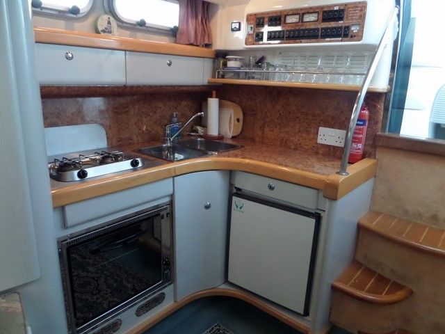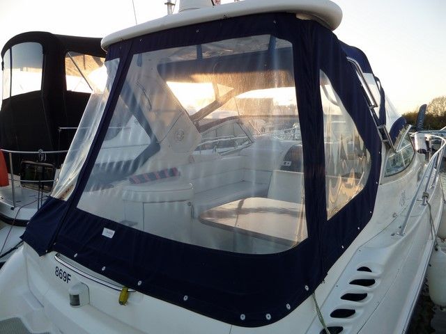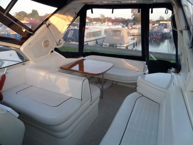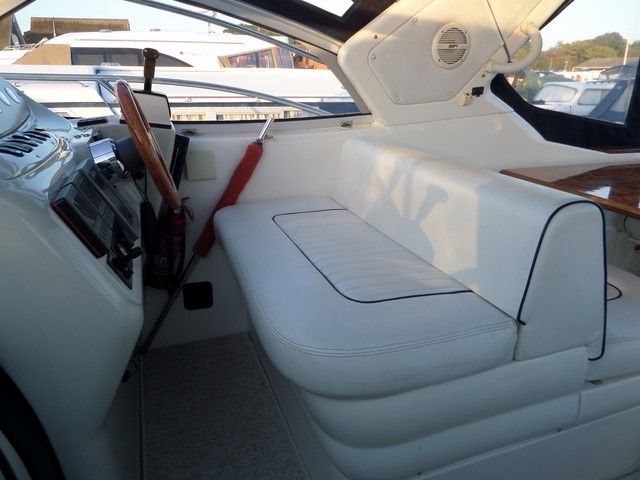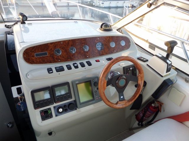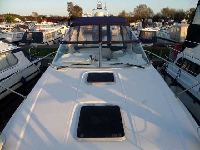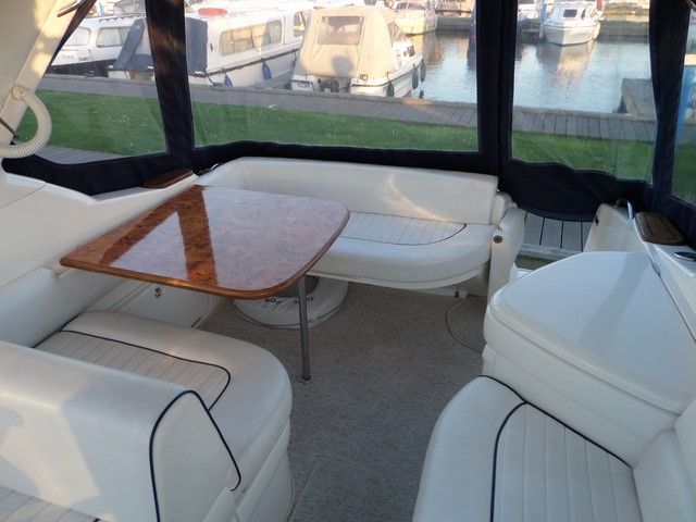 SEALINE S28 – 1996, 1 x Volvo KAD42 230Hp diesel engine, 2 berths in 1 cabin (plus 2 in saloon), 1 x toilet & shower, Boat Safety Certificate. Spec inc: new canopy, shore power, battery charger, bow thruster, holding tank, folding radar arch, hot air heating system, calorifier and much more. Engine & outdrive serviced 2014.