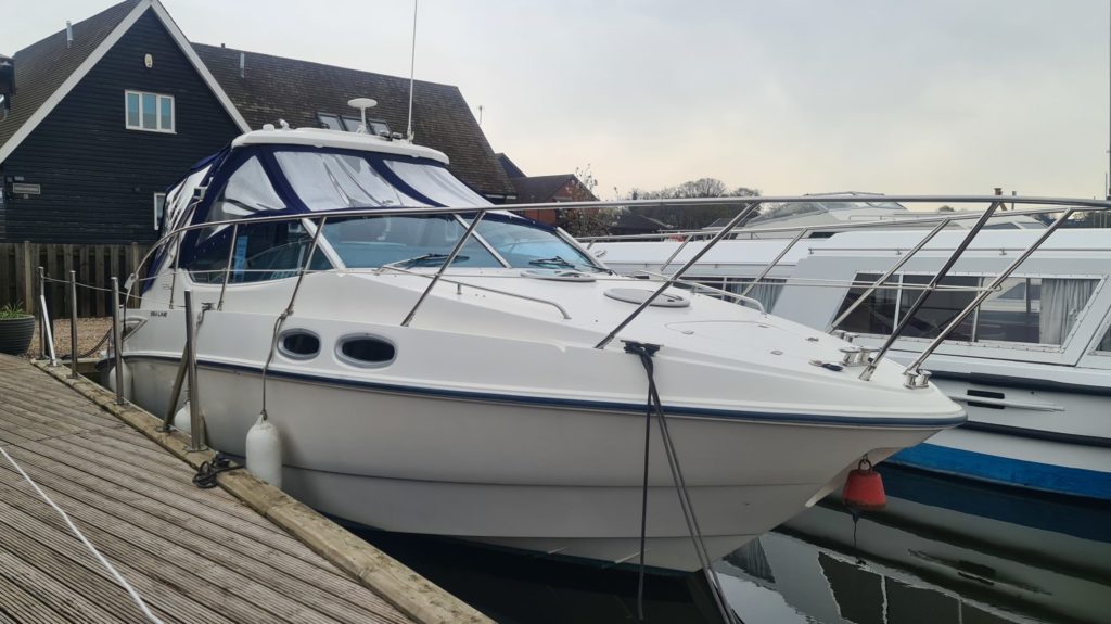 SEALINE S29 – 2008 – 2 x Volvo D3 190Hp diesel engines. 4 berth accommodation with 1 x heads and shower. Spec including bow thruster, teak laid cockpit & bathing platform, icom vhf radio, garmin gpsmap 4008, holding tank, webasto warm air heating system, Boat Safety Certificate until July 2021. A modern twin engine sports cruiser with a beautifully light interior and spacious cockpit.