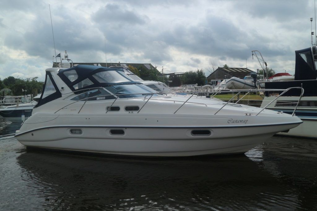 SEALINE S34 – 2002 – Powered by twin Volvo KAD32 170hp diesels. 4 berth accommodation across two cabins with one toilet and one shower. Specification to include; Holding tank, bowthruster, warm air heating, electric windlass, trim tabs and shore power supply. Teak laid cockpit and bathing platform. BSC 07/21. Antifoul and outdrive service April 2018. Presented in great order throughout, clearly very well loved in her current 2 year ownership!