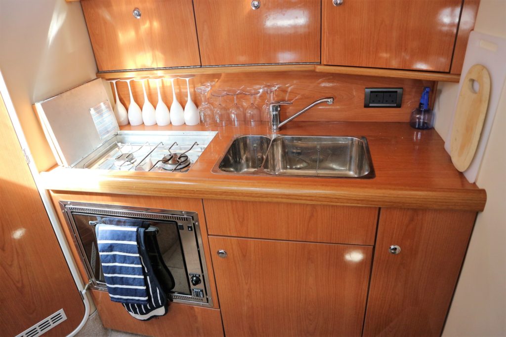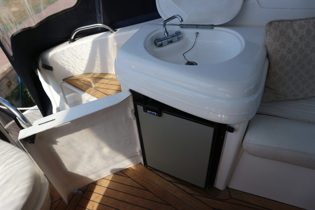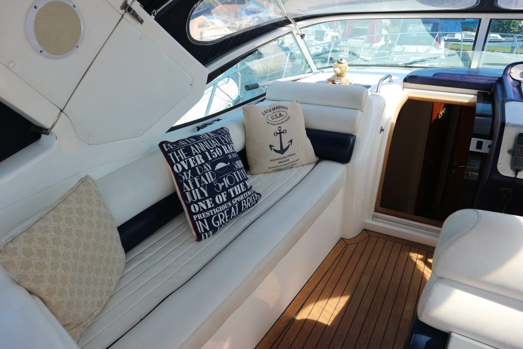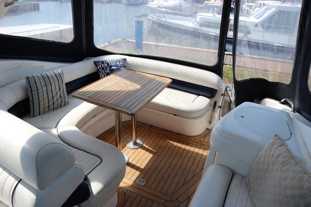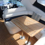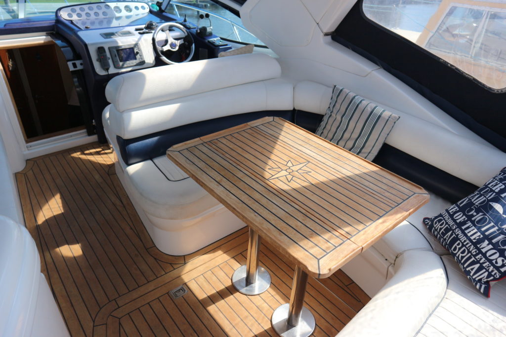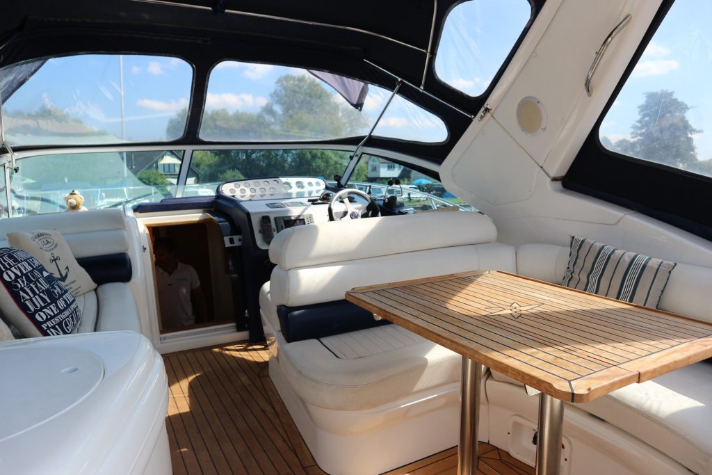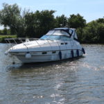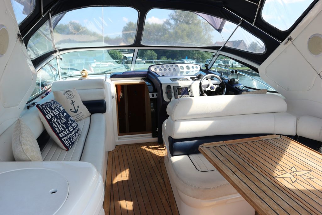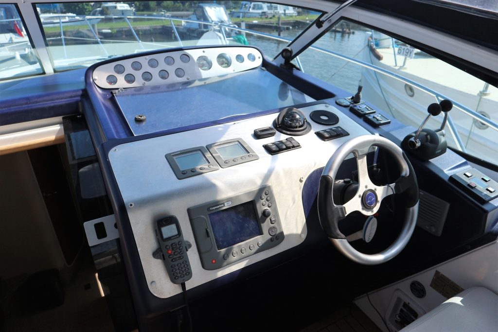 SEALINE S34 – 2005 – 2 x Volvo D4 210hp diesel engines. 6 berth accommodation with 1 x toilet and shower compartment, well equipped galley. Very sociable cockpit area for entertaining fitted with cockpit fridge and sink. Spec including Bow thruster, shore power, warm air heating, immersion, battery charger, Raymarine speed and depth LOG, Raymarine VHF, Raymarine C70 Chart Plotter. Benefitting from a hinged GRP radar arch enabling a better inland cruising range. VIEWING BY APPOINTMENT ONLY.