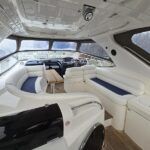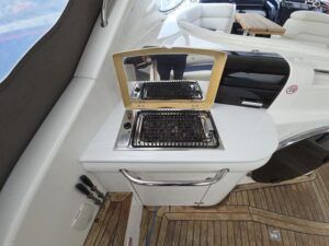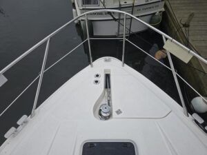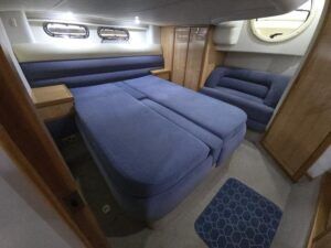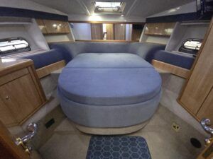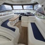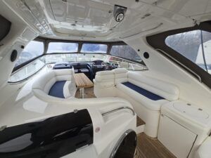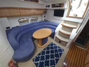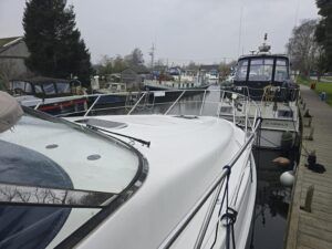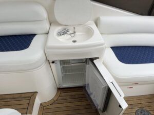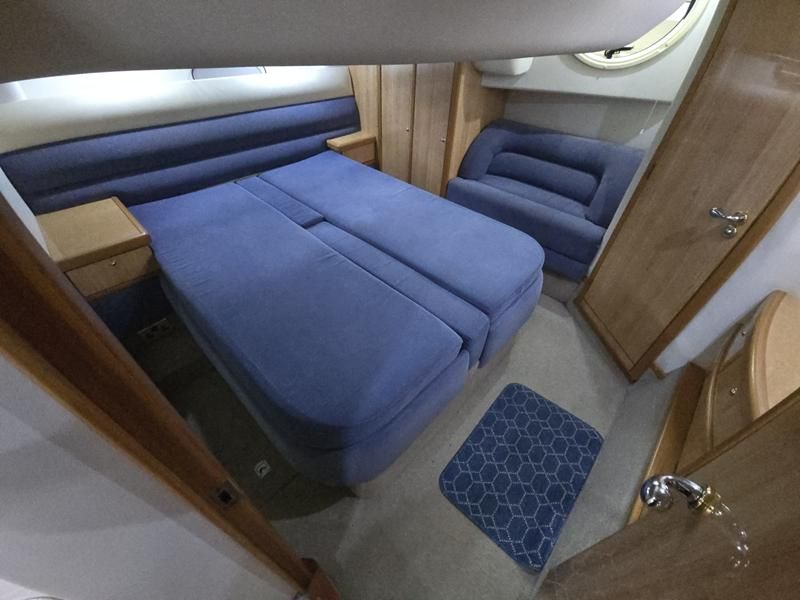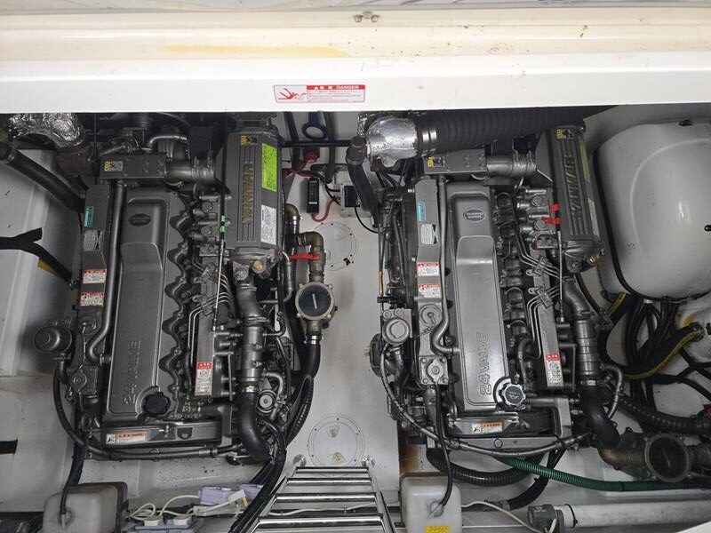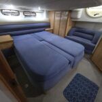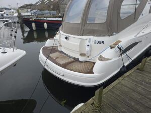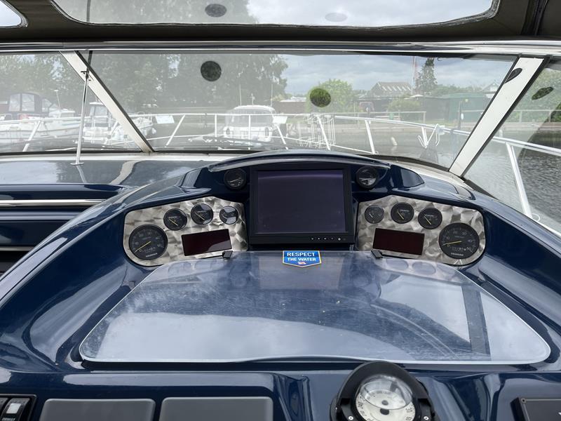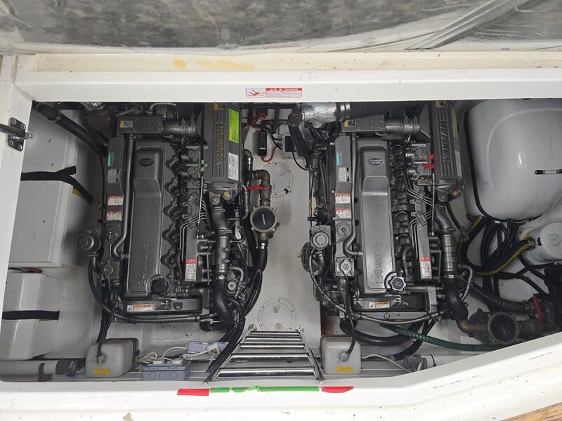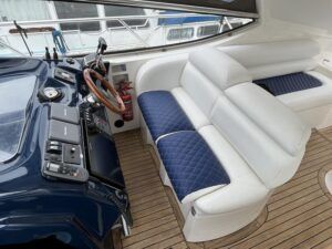 Sealine S41 – 2000 – 2x Yanmar 6LP STZE (315HP) / Mercruiser Bravo 3 Outdrives. Spacious 6-berth accommodation featuring two generous double cabins, each with en-suite facilities. Specification includes; bow and stern thrusters with remote, generator, battery charger, shore power, trim tabs, Raymarine Axiom Pro RVX, Raymarine radar, warm air heating, holding tank, teak-laid flooring to the bathing platform and cockpit, and an electric anchor winch. Serviced and antifouled Nov 2024. A well-maintained and tastefully upgraded Sealine S41, offering excellent accommodation and a sociable cockpit for entertaining.