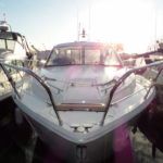 SEALINE SC35 – 2010 (2011 spec model), 2 x Volvo D4 260hp, 5 comfortable berths, quiet flush toilet and shower, hot air heating with screen de-misters, teak laid cockpit, bow thruster, Raymarine navigation including – radar C90 chartplotter, leather saloon upholstery. Striking, sporty and fun with an innovative sliding roof system – perfect in any weather! Fantastic mix of accommodation and cockpit space. One owner from new