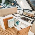 Sealine SC35 – 2010, 2 x Volvo D4 260hp Diesel Engines , 5 berth accommodation including a large island double forward, toilet and shower, sliding roof system – perfect regardless of the weather, bow thruster, Raymarine depth and speed LOG, Raymarine chart plotter and Radar , Raymarine VHF, heating, teak cockpit, cockpit wet bar, fridge and BBQ.