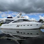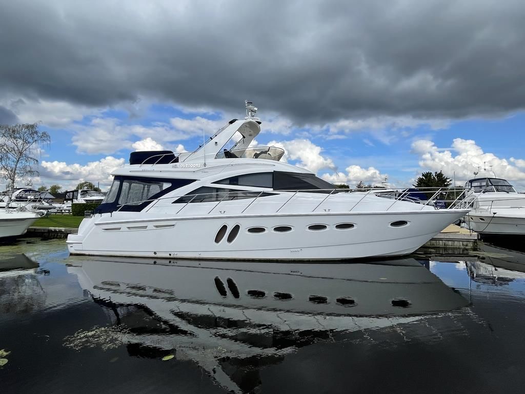 Sealine T50 – 2006 – Powered by 2 x Volvo D9 575hp diesel engines through shaft drive. A spacious 6 berth accommodation over 3 cabins. Highly specified with bow and stern thrusters, 11kw generator, warm air heating, reverse cycle air conditioning, shore power, battery charger, immersion heater, dishwasher, washer/dryer, Hubbax WiFi system, teak decking to cockpit and flybridge, a host of updated Raymarine navigation equipment, BSC 02/24. A striking and sought after Flybridge motor cruiser with impressive performance, offering unrivalled accommodation in its class.