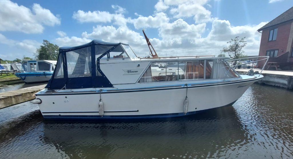 Seamaster 23 – 1975 – Powered by a single Perkins 4108 45hp diesel engine through an Enfield 130 sterndrive. 3/4 berth accommodation. Specification to include; folding windscreens, warm air heating, JVC radio/CD/MP3 player, gas oven grill and hob. A tidy example of these popular cruisers. BSC May 2025