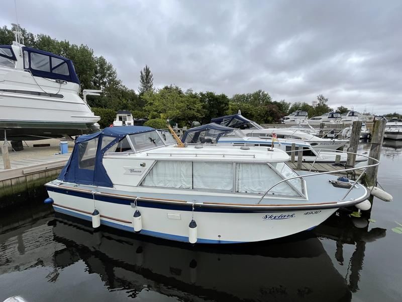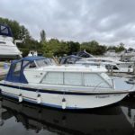 Seamaster 23 – 1974 – Powered by a Perkins 4.108 diesel engine through sterndrive. 4 berth accommodation in open plan layout with 1 x toilet/shower compartment. Large Galley area with 2 burner gas hob, oven, grill, fridge and sink. Specification including shore power, porta loo, BSC July 2023, antifouled April 2022, outdrive serviced April 2022, engine service 2021. A very smart example of these compact but spacious river cruisers offering comfortable extended cruising capabilities.