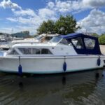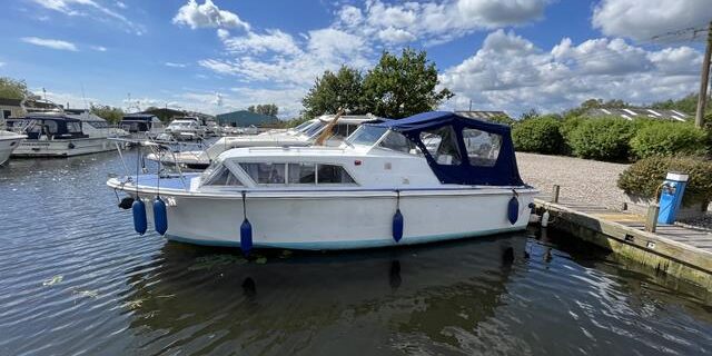 Seamaster 24 Cadet – Circa 1970 – Powered by a Nanni diesel engine on a shaft. 4 berth accommodation with a toilet compartment to holding tank. Specification to include; New Bailey & Stone canopy, folding windscreen, navigation lights, galley facility, shore power, 12v system, bathing platform and more. A well-presented weekend cruiser, ideal starter boat with an economical diesel engine and a low air draft for cruising the Broads.