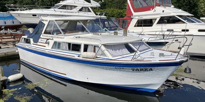 Seamaster 30 – 1979 – 2 x Ford 1.6 48 HP engines through shafts. 6 berth accommodation with 2 toilets and showers. Specification to include; Warm air heating system, VHF, stainless steel davits, solar panels, navigation lights, shore power, washing machine, calorifier and more. Boat Safety Certificate 05/27. New linings and upholstery.  Serviced, antifouled and wintered ashore 2024. A comfortable and spacious boat with several recent improvements and upgrades.
