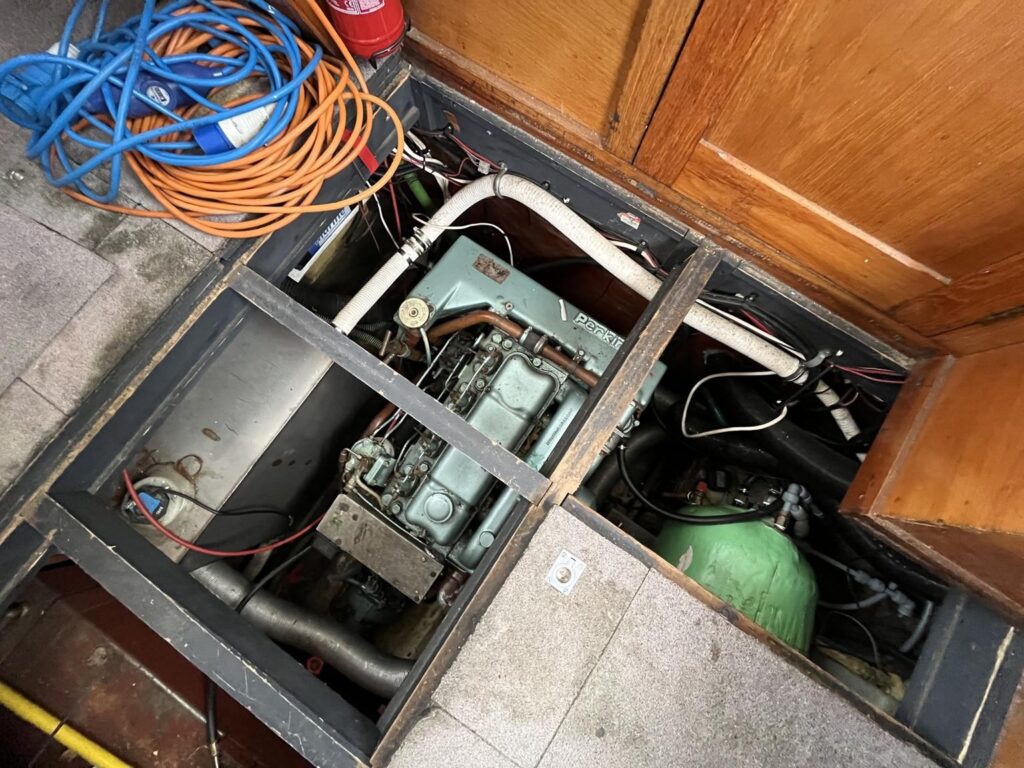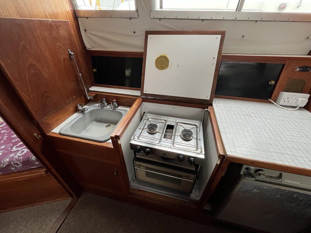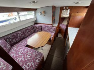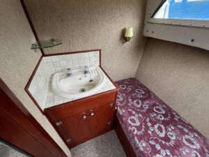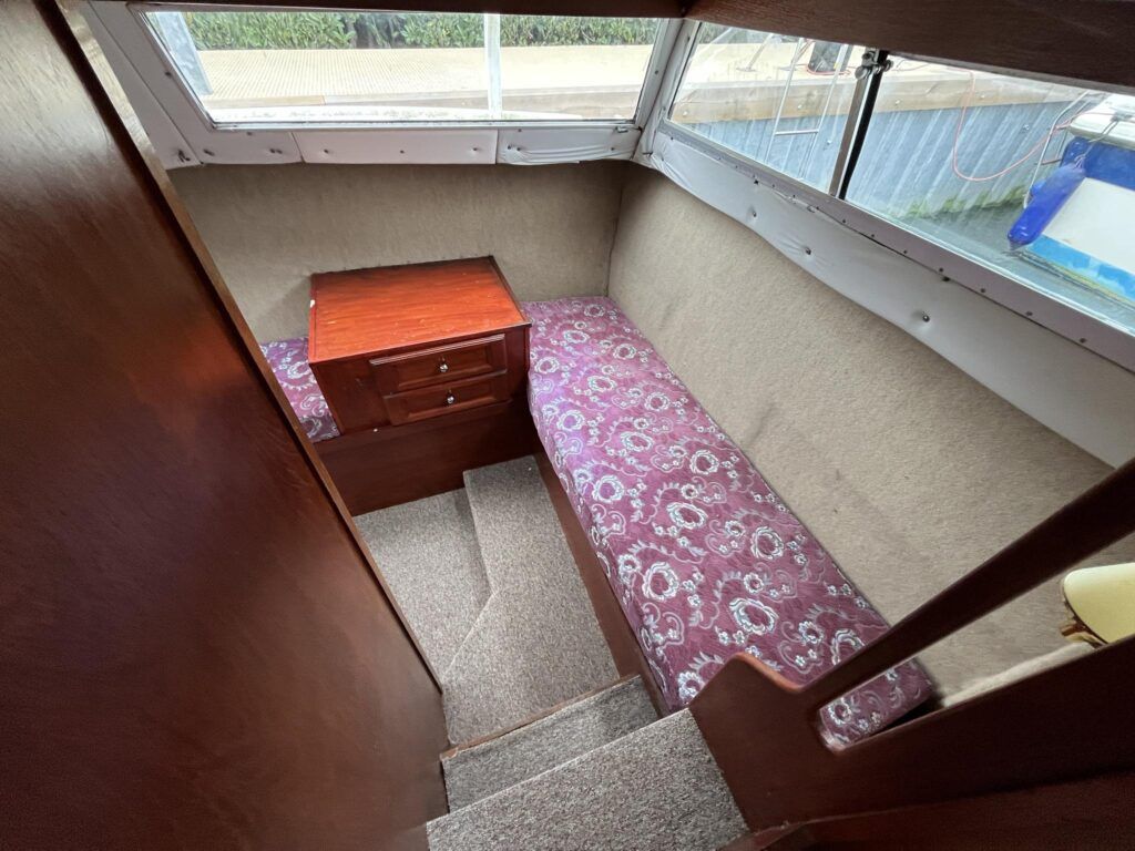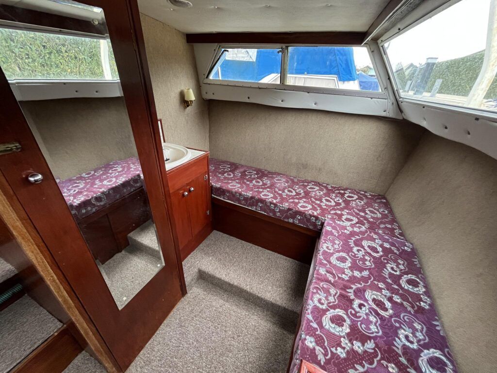 Seamaster 30 – Circa 1980 – Powered by a Perkins diesel engine. 6 berth accommodation, shower, Electrolux fridge, hob oven and grill, hot and cold pressurised water system , anchor winch, davits, Nasa speed and depth, webasto warm air heating, shore power, Sought after diesel and shaft configuration, A spacious family starter boat for exploring the waterways.