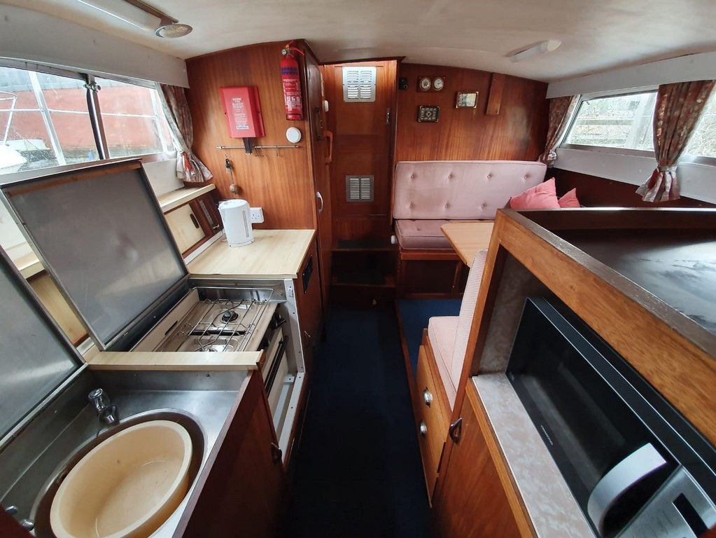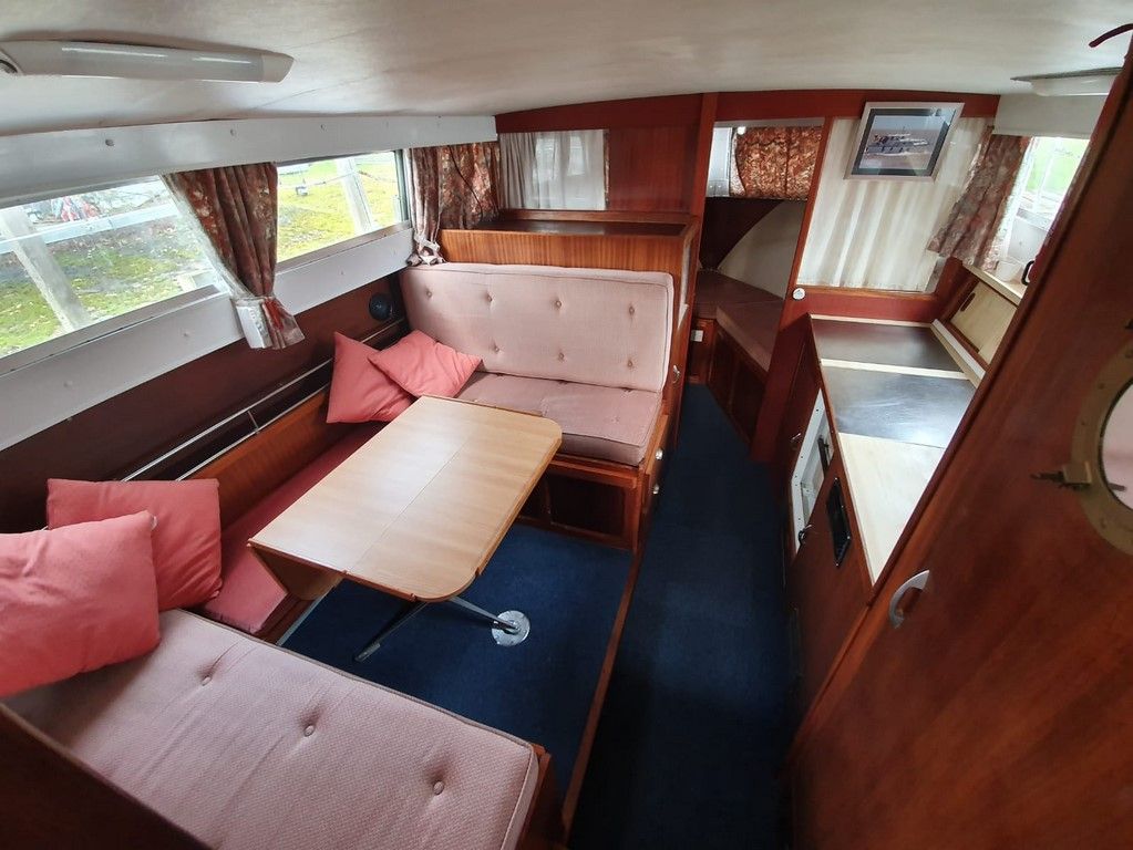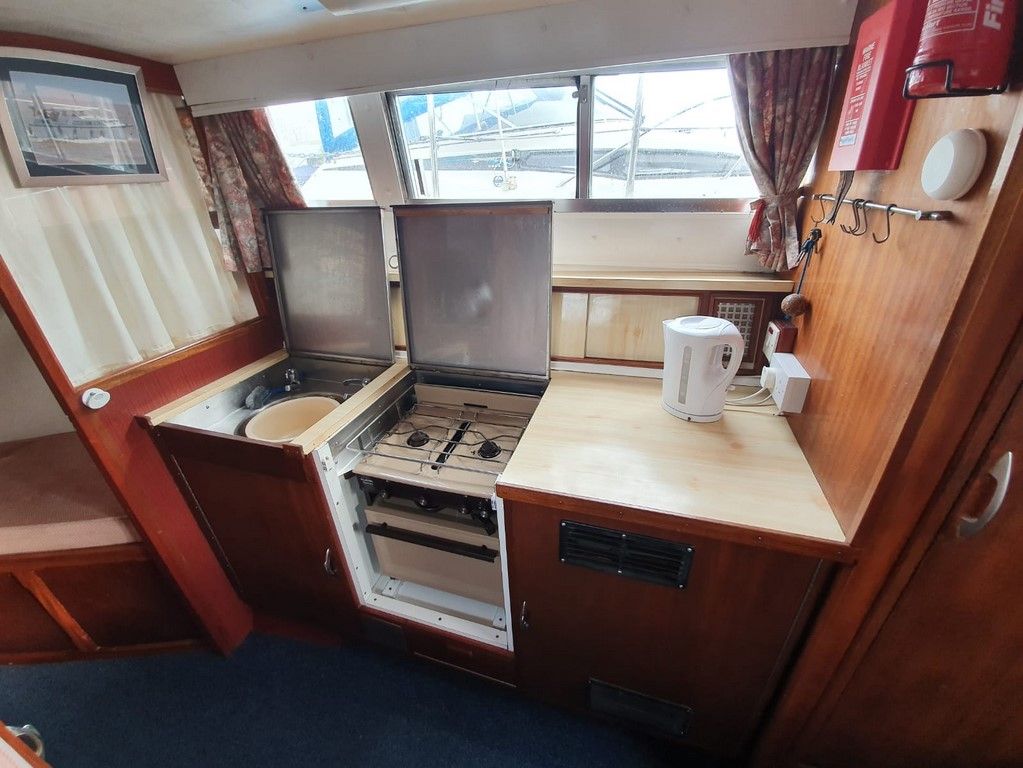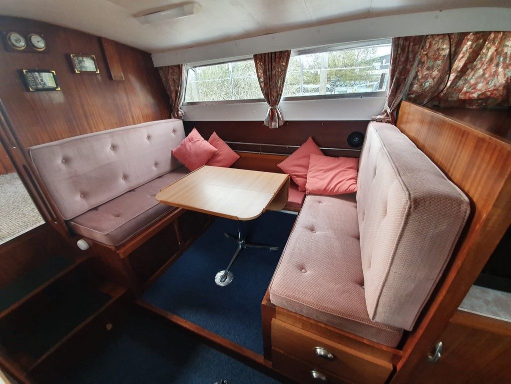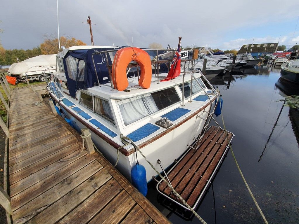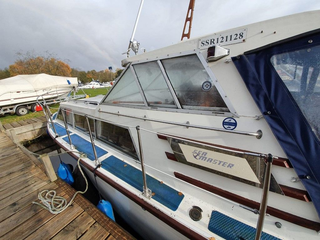 SEAMASTER 30 – Circa. 1979 – Powered by twin Perkins diesels. 6 berth accommodation with toilet and shower. BSC 09/22. Specification to include; warm air heating, NASA VHF, shore power supply with 240v sockets and immersion, full galley facilities to include; 2 burner hob, oven, grill, fridge and microwave. Sought after diesel and shaft configuration! A good family starter boat!
